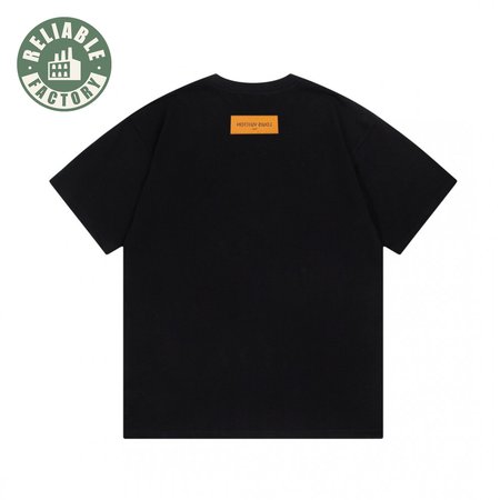 23ss yellow orange warning slogan printing round neck black