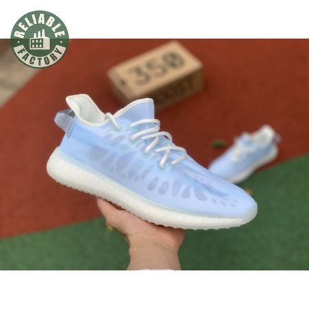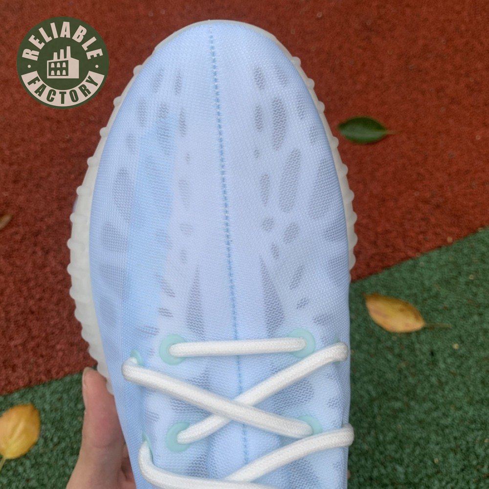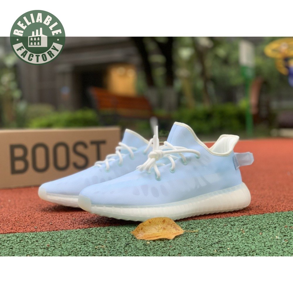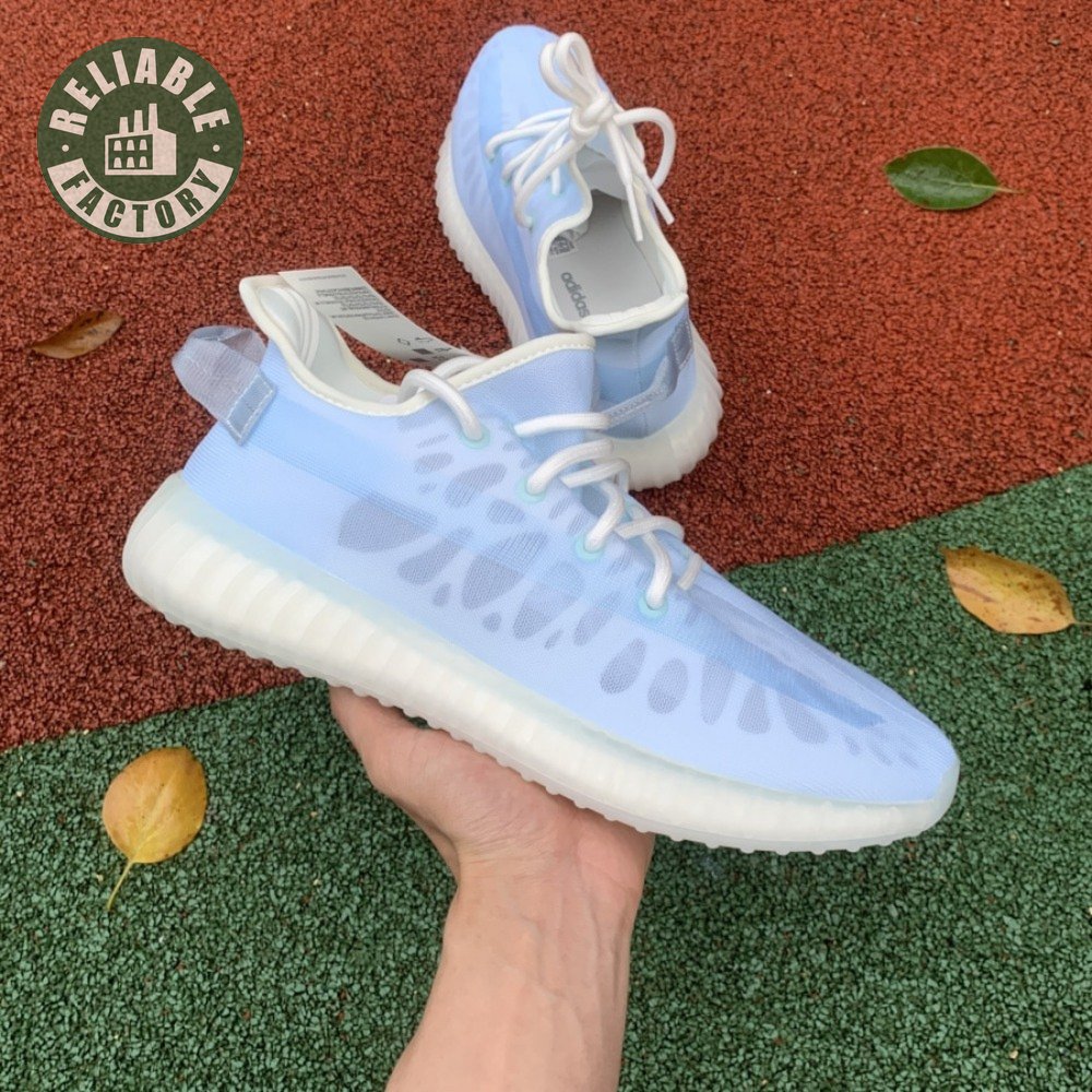 The adidas Yeezy Boost 350 V2 "Mono Ice" represents one of four monochromatic colorways that collectively introduce a refreshed take on the minimalist silhouette. In lieu of traditional Primeknit, the upper is constructed from monofilament mesh, rendered in an icy blue shade and accented with a tonal lateral side stripe. Additional details include an interior cage, webbing heel tab and molded eyelets. A full-length Boost midsole delivers responsive cushioning. This shoe released exclusively in in North America, Latin America and China.
