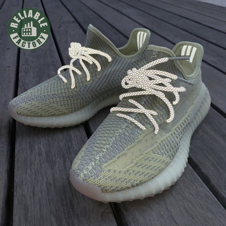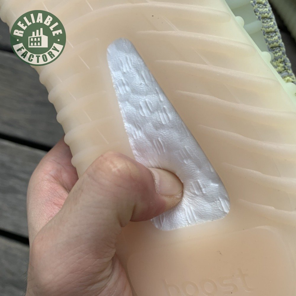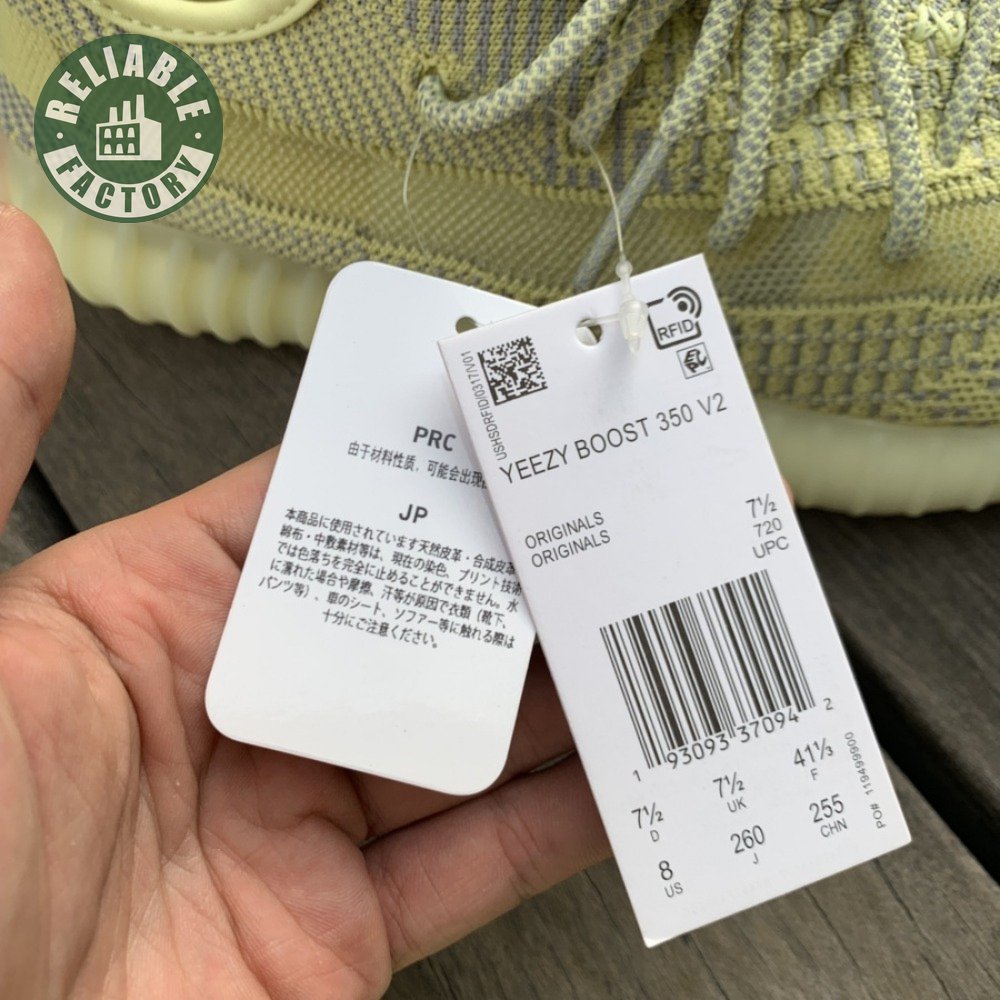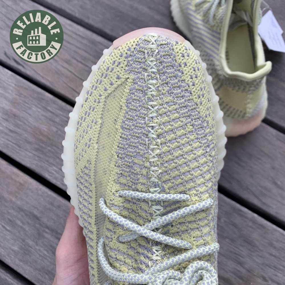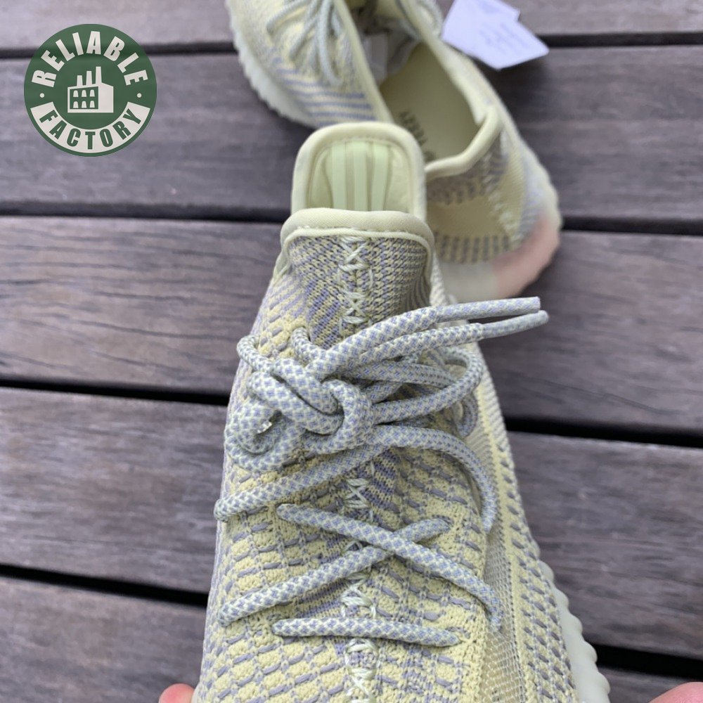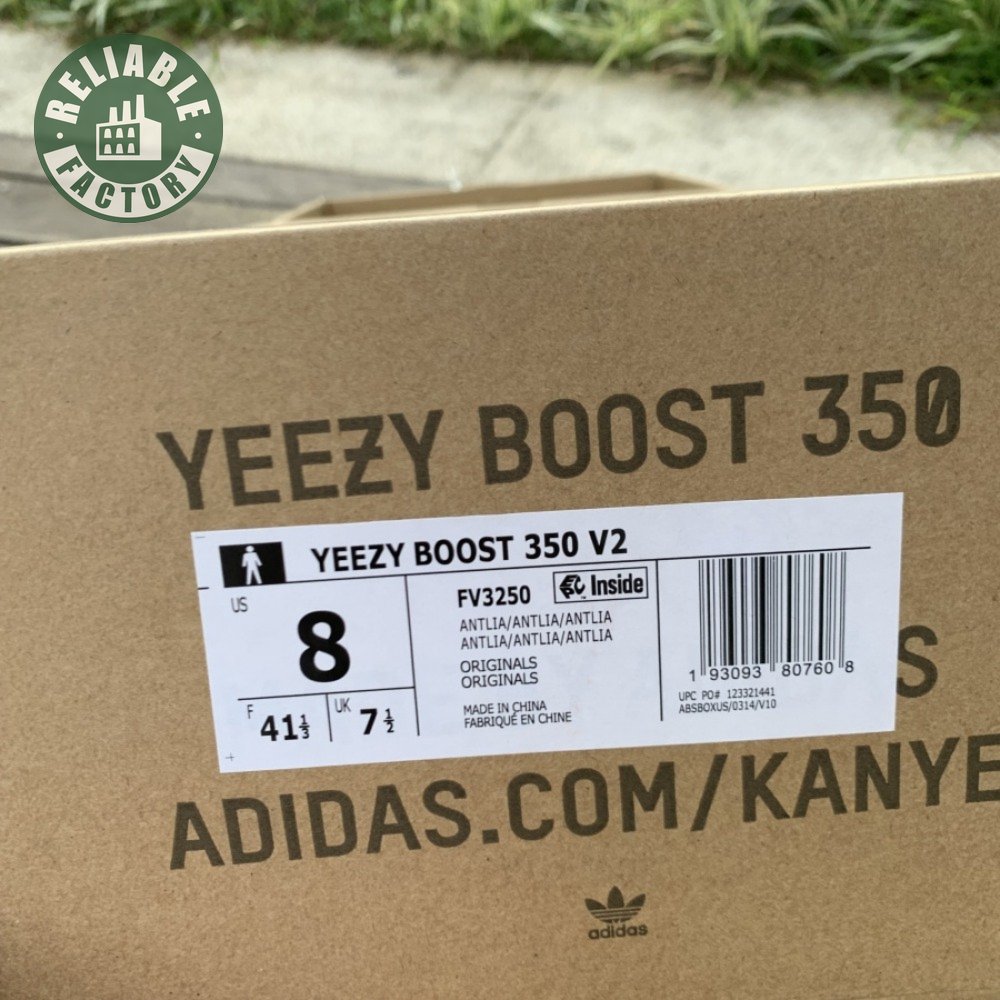 The adidas Yeezy Boost 350 V2 "Sulfur" utilizes a breathable Primeknit upper in a yellowish tan hue, accented with the sneaker"s signature monofilament side stripe in olive green. A pull tab at the heel complements the sock-like collar to deliver easy on and off. Underneath the foot, a full-length Boost unit provides responsive cushioning. The foam compound is visible through cut-out detailing on the gum rubber outsole.