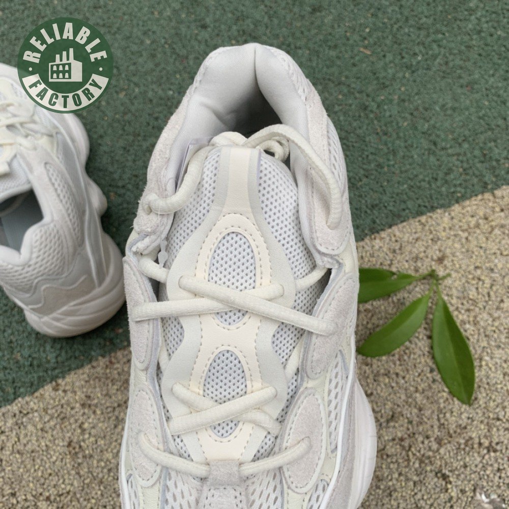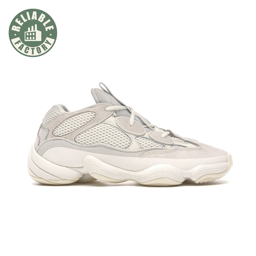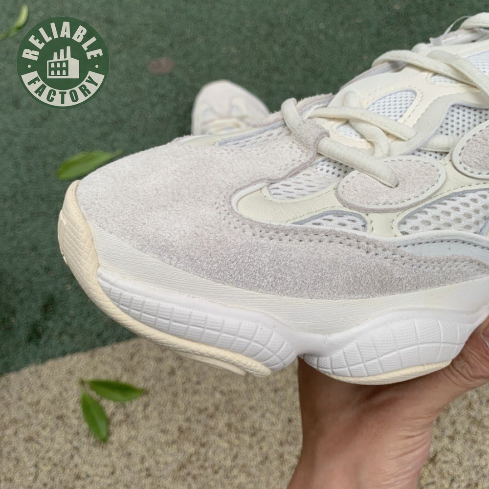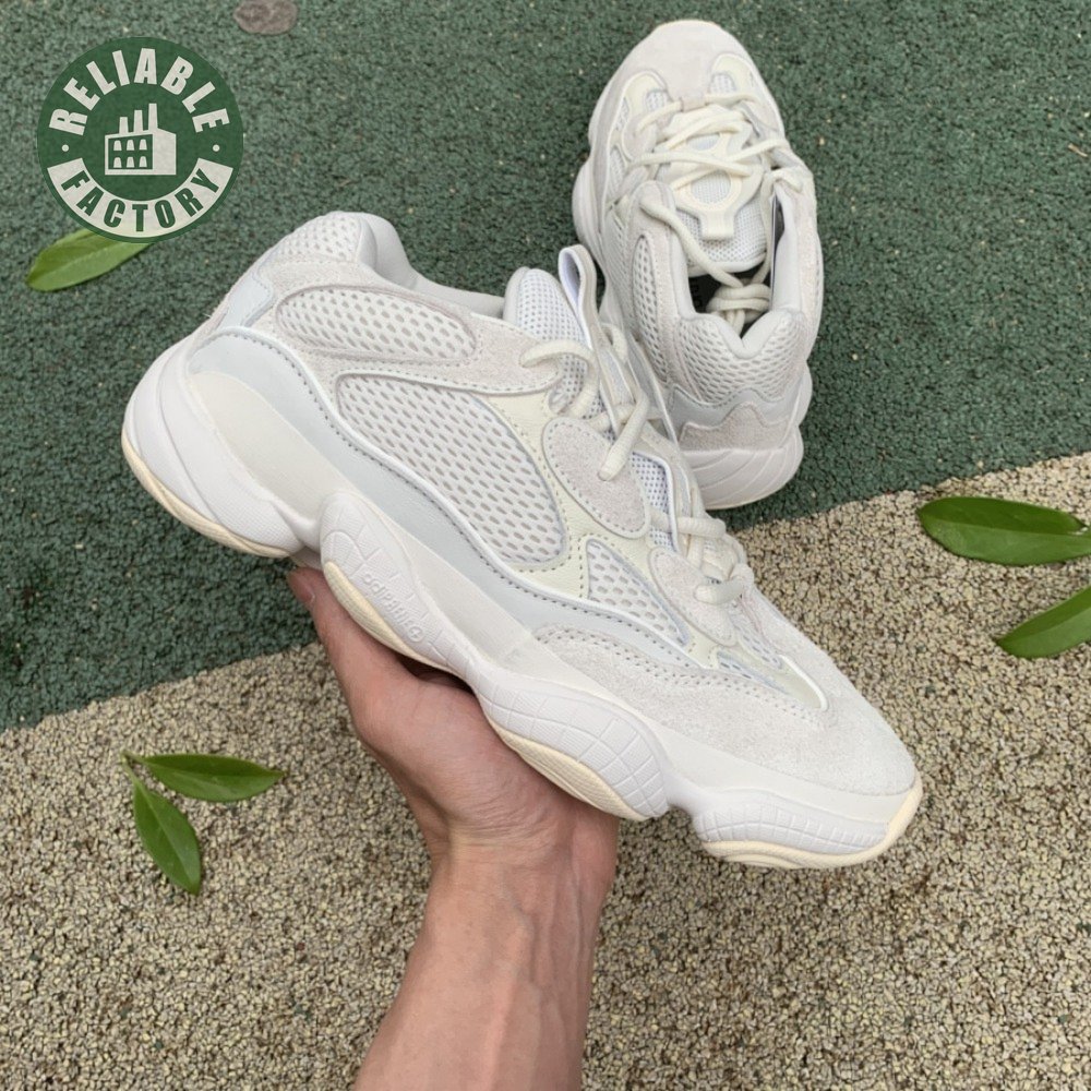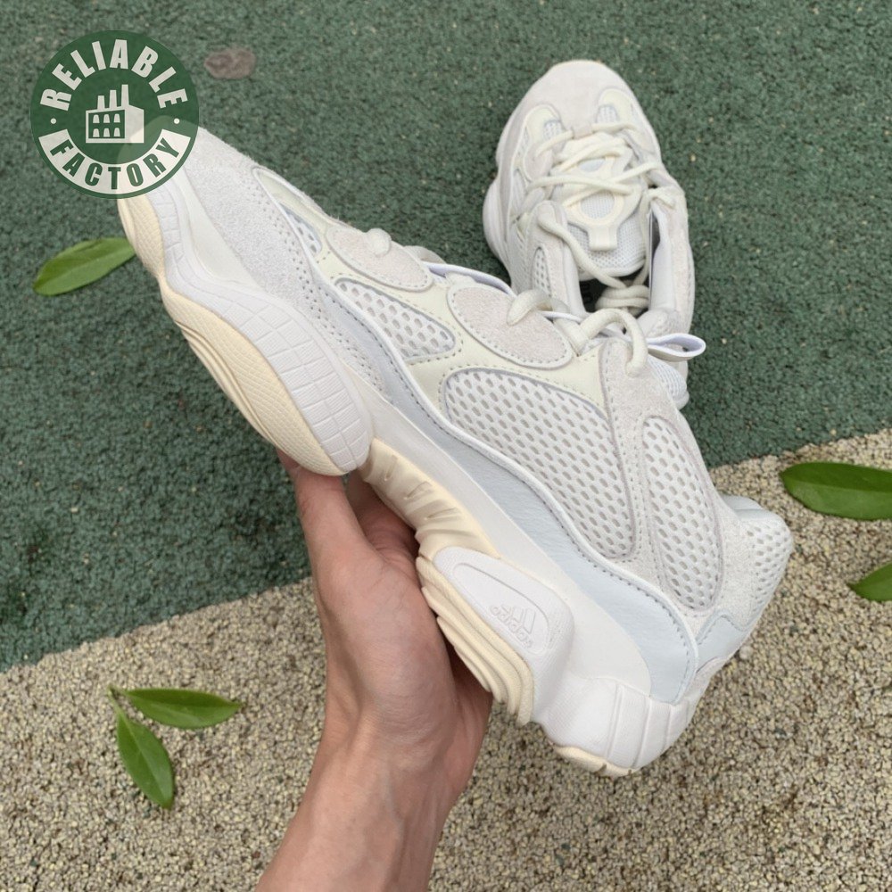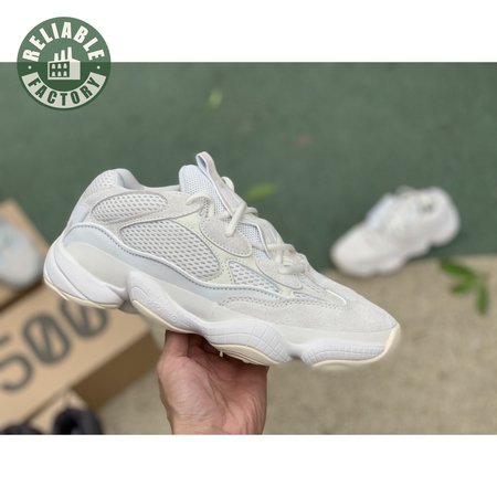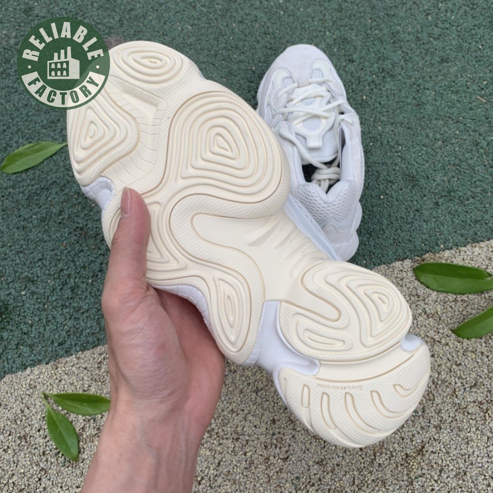 Kanye West and adidas revisit the Yeezy 500, this time in a 'Bone White' colorway. This August 2019 edition follows the silhouette's established, chunky silhouette with a cow suede, premium leather and mesh upper in Off-White tones. As in colorways past, this edition includes reflective piping details and the unmistakable, retro basketball midsole design. adidas adiPRENE+ cushioning pairs underfoot with contoured rubber pods to promote traction.