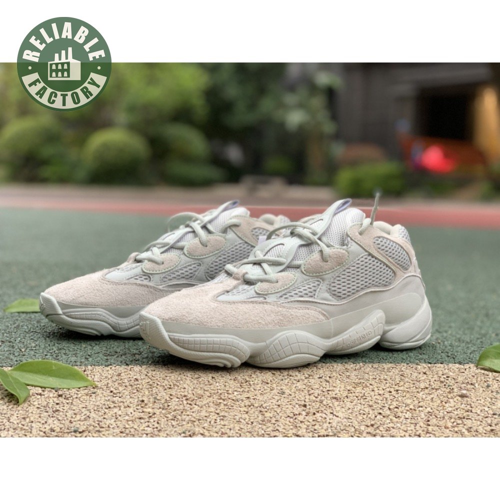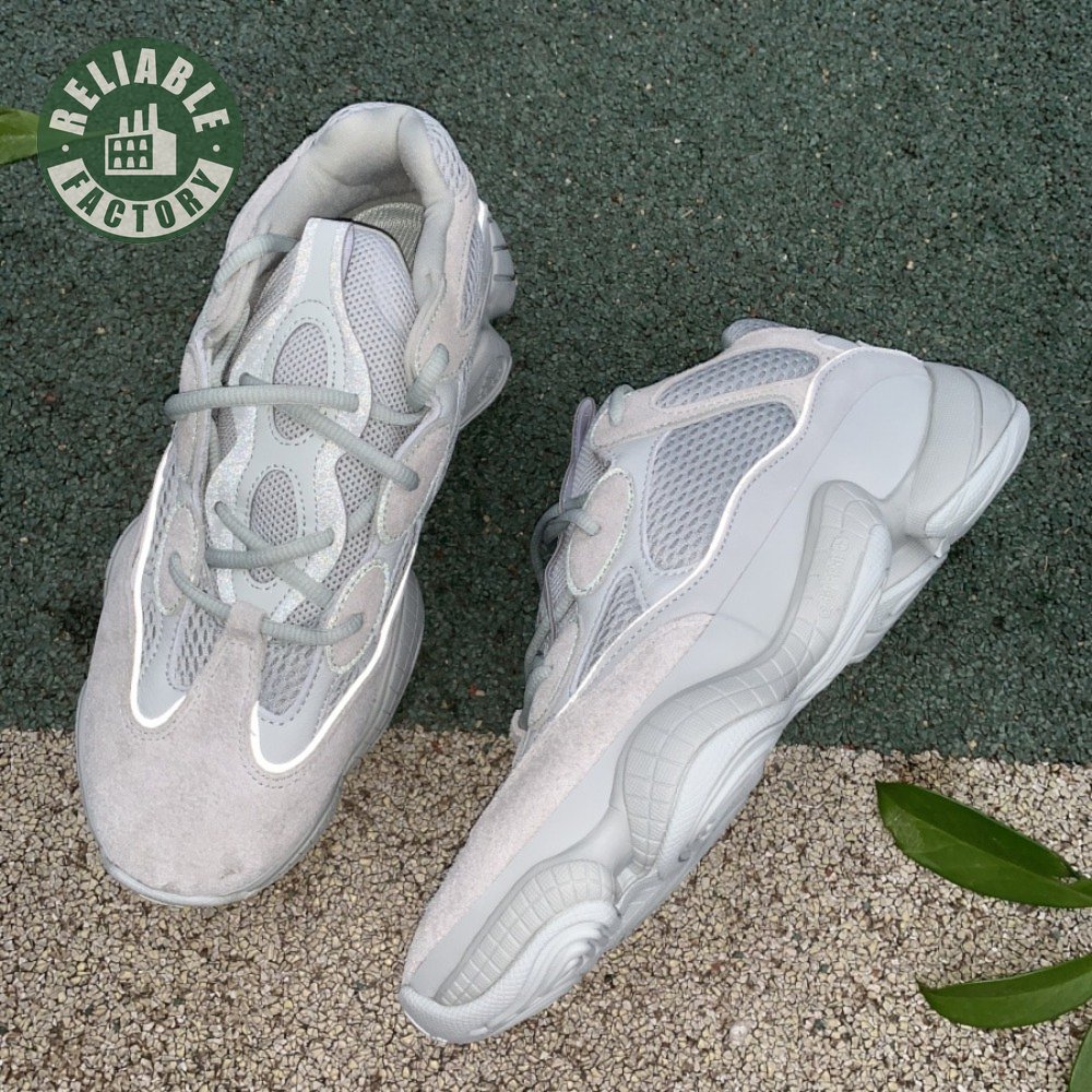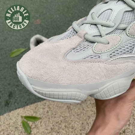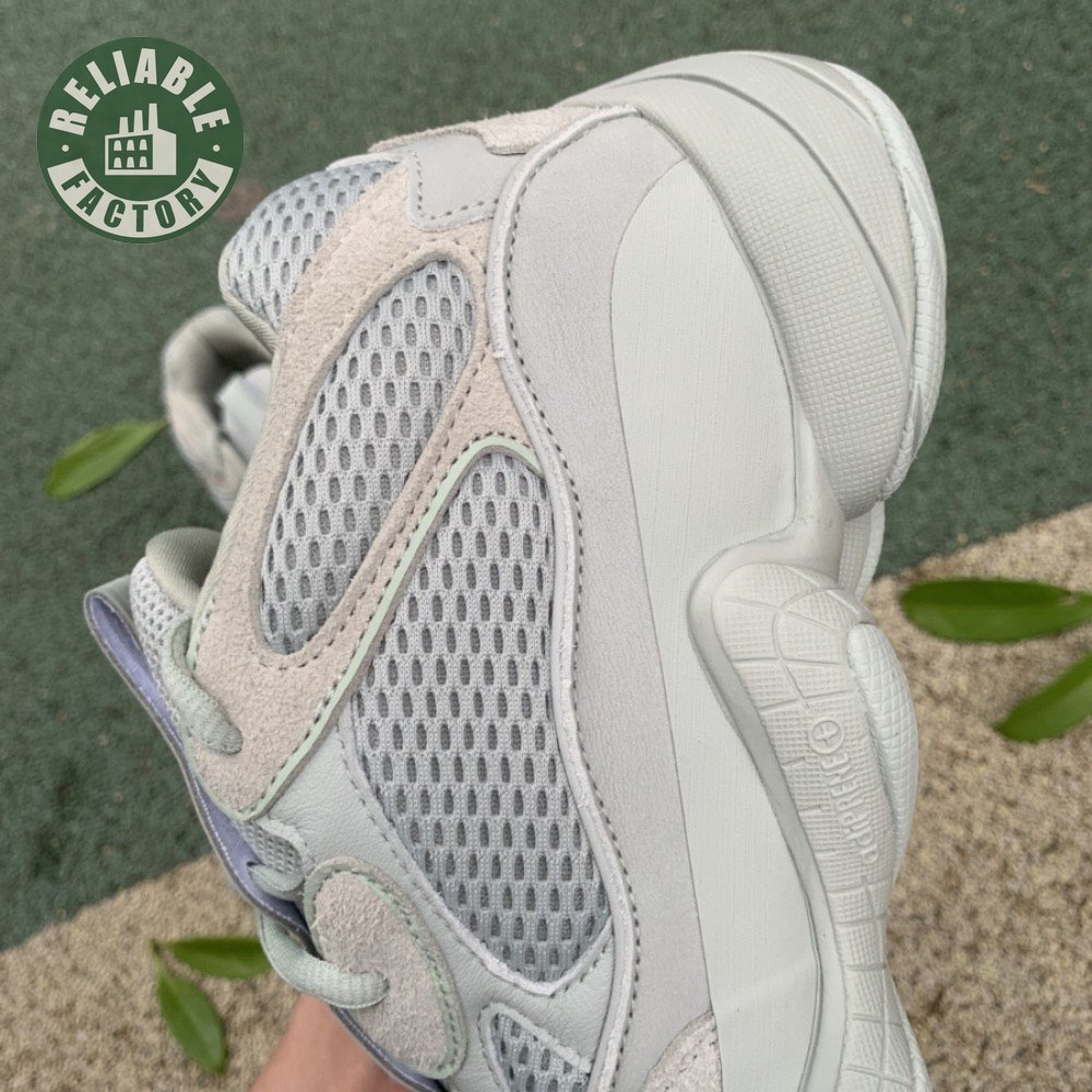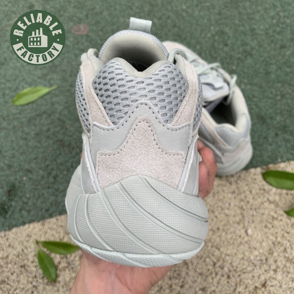The Yeezy 500 "Salt" sticks with the same monochromatic design used on previous colorways of the bulky lifestyle silhouette. Here, a light grey shade is applied to the layered upper, built with a combination of cow suede, premium leather, mesh and nubuck accents. A rubber wrap atop the midsole provides added durability while reflective trim around the eyelets provide visibility in low-light conditions.