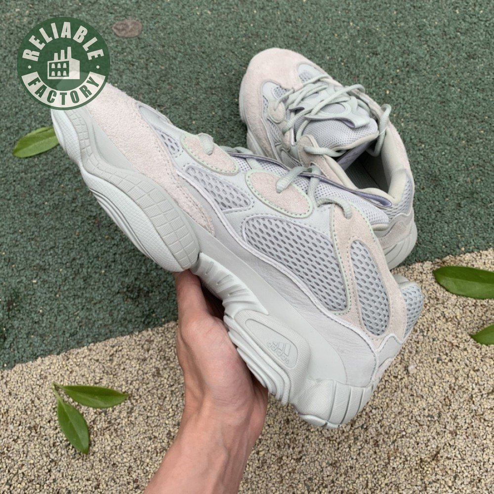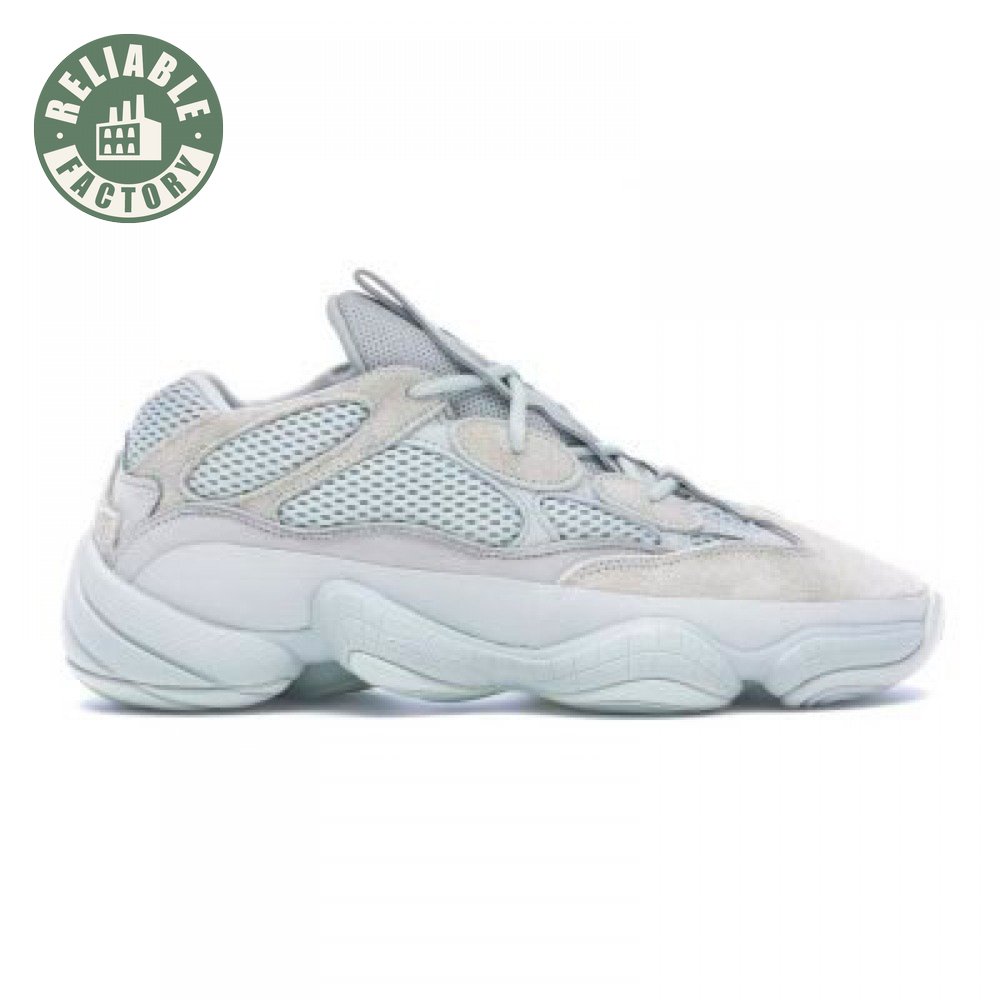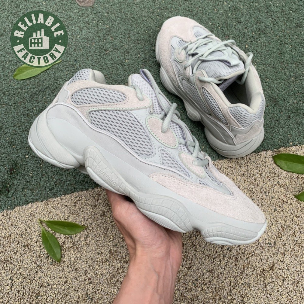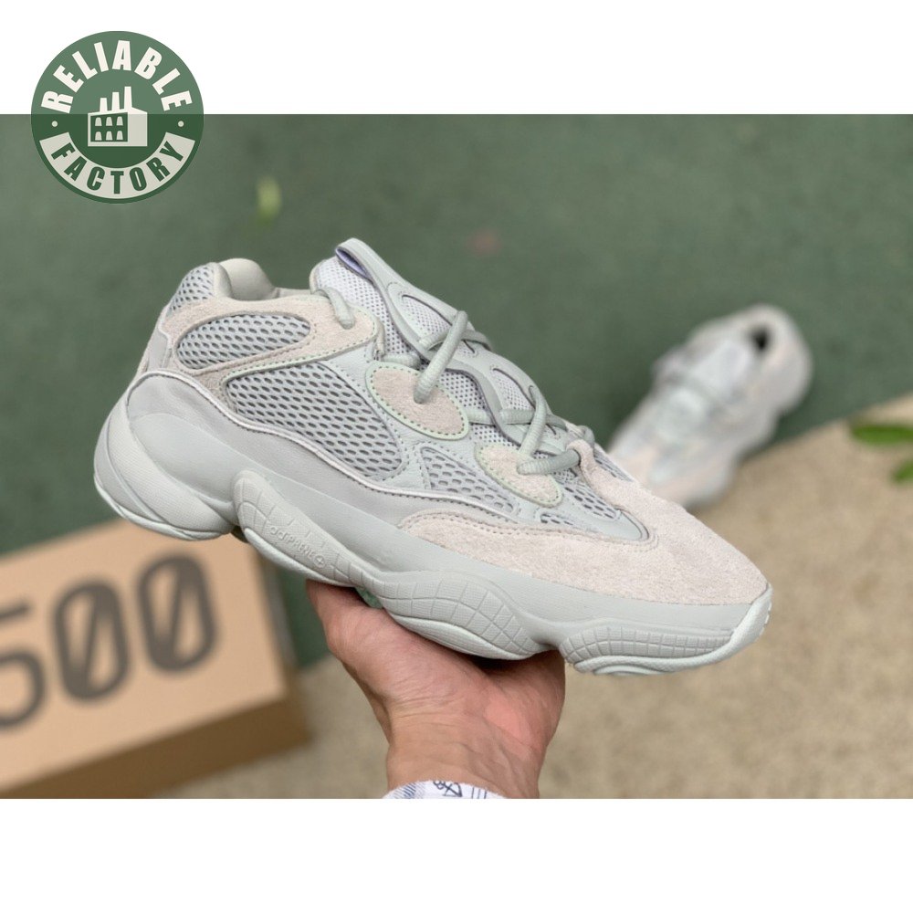 The Yeezy 500 "Salt" sticks with the same monochromatic design used on previous colorways of the bulky lifestyle silhouette. Here, a light grey shade is applied to the layered upper, built with a combination of cow suede, premium leather, mesh and nubuck accents. A rubber wrap atop the midsole provides added durability while reflective trim around the eyelets provide visibility in low-light conditions.