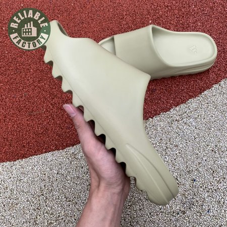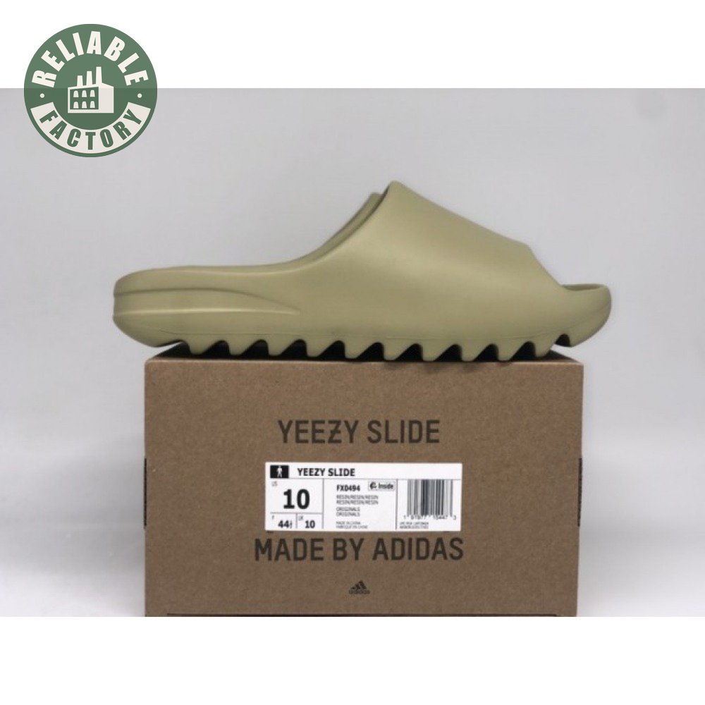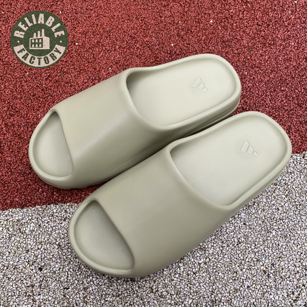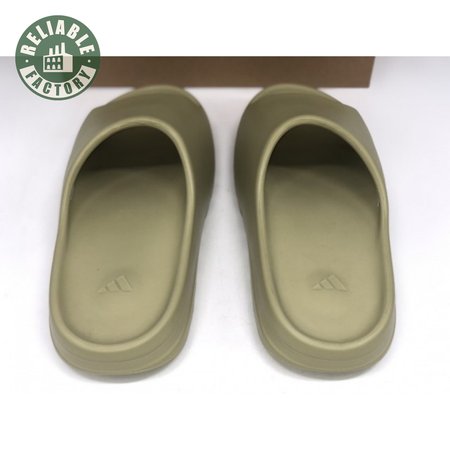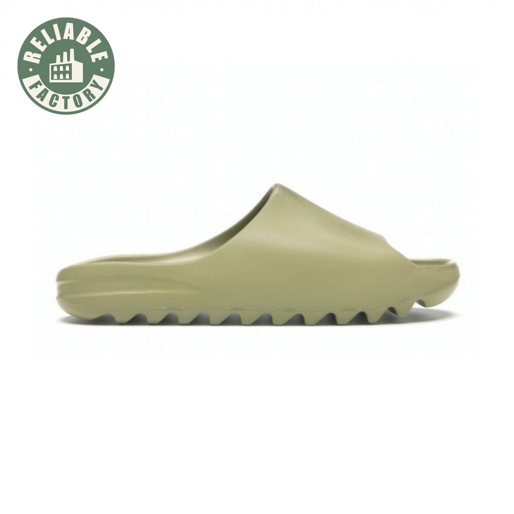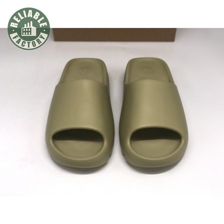 The Yeezy Slide 'Resin' showcases Kanye West"s minimalist interpretation of an athletic sandal. A monochromatic finish in a subtle green hue is applied to the slip-on silhouette, constructed from EVA foam for lightweight durability. The footbed delivers added comfort with a soft top layer, etched with adidas" three-stripe branding at the heel. Underfoot, the outsole is formed with horizontal grooves for enhanced traction.