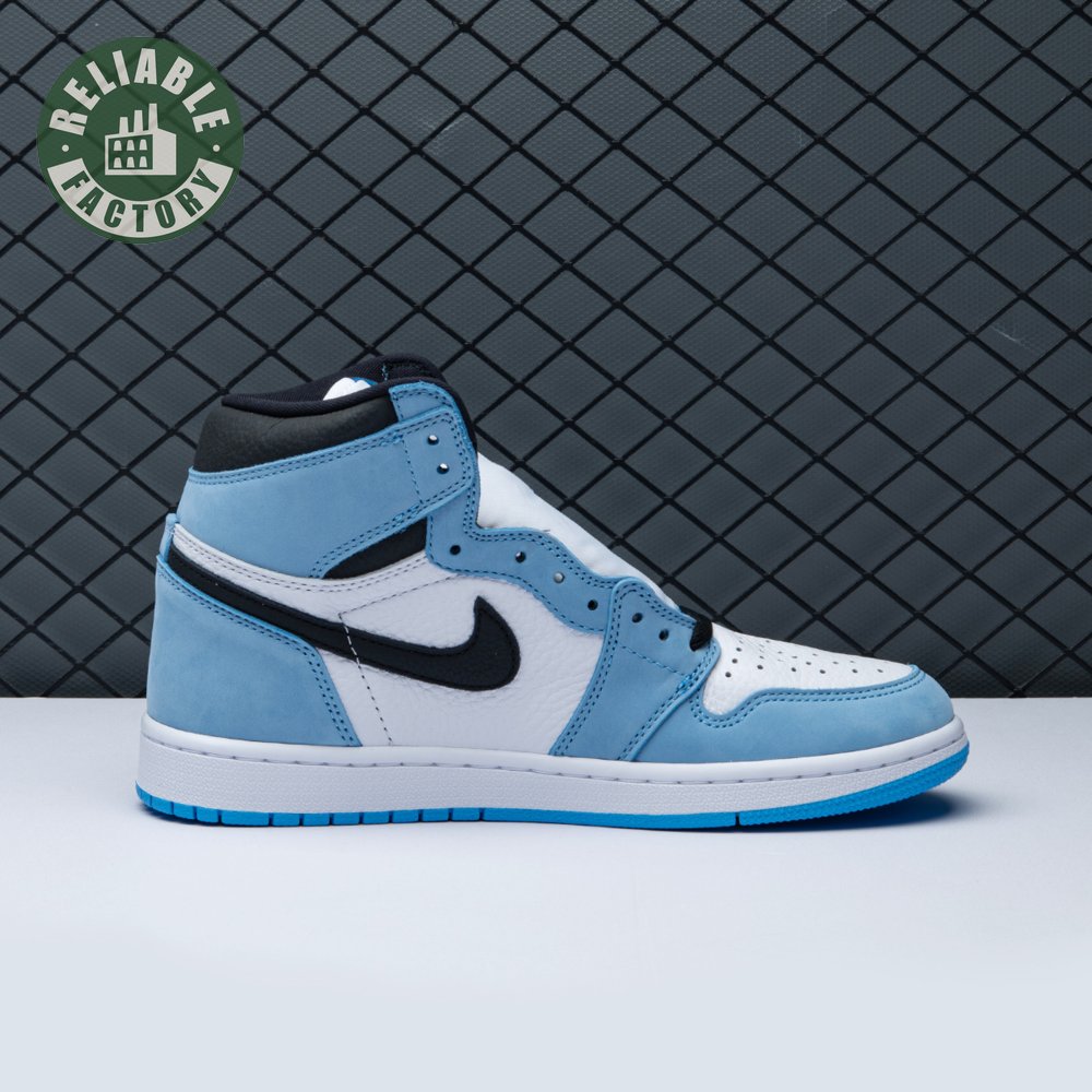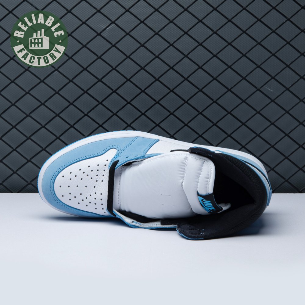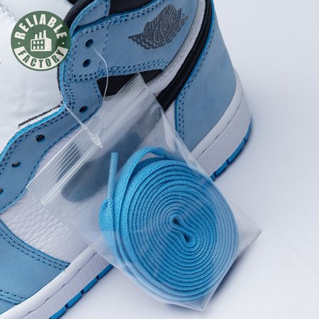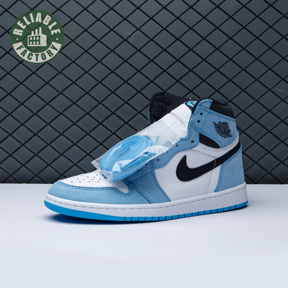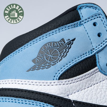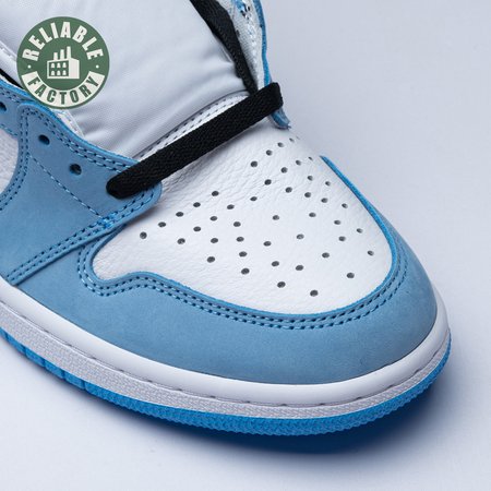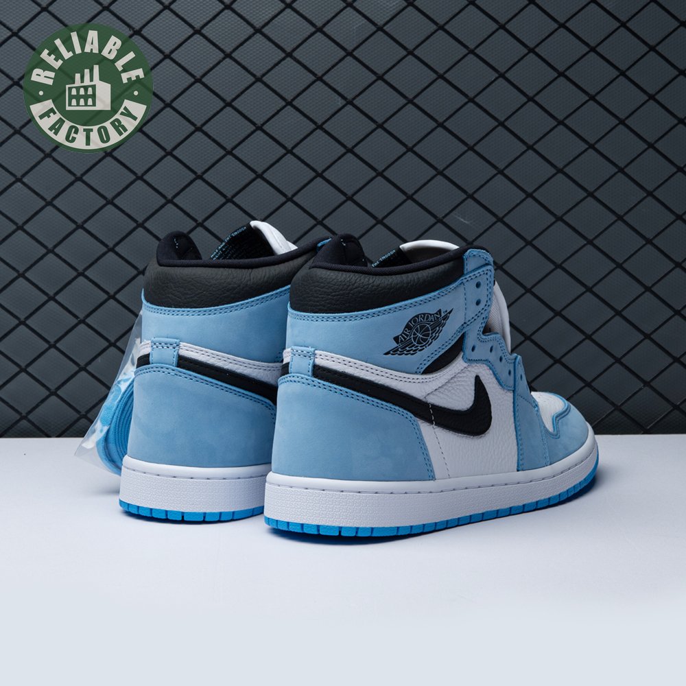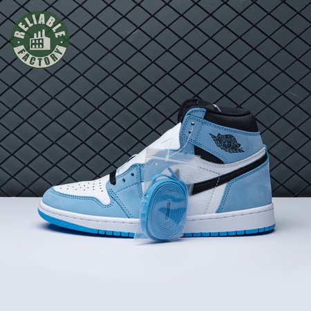 The Air Jordan 1 Retro High OG "University Blue" makes use of a familiar palette that gives the nod to Michael Jordan"s UNC alma mater. The all-leather upper features a white base with powder blue overlays and a black signature Swoosh. Matching black accents make their way to the collar, tongue tag and printed Wings logo on the lateral collar flap. A brighter shade of blue is applied to the standard AJ1 outsole, featuring multi-directional traction and a pivot point under the forefoot.