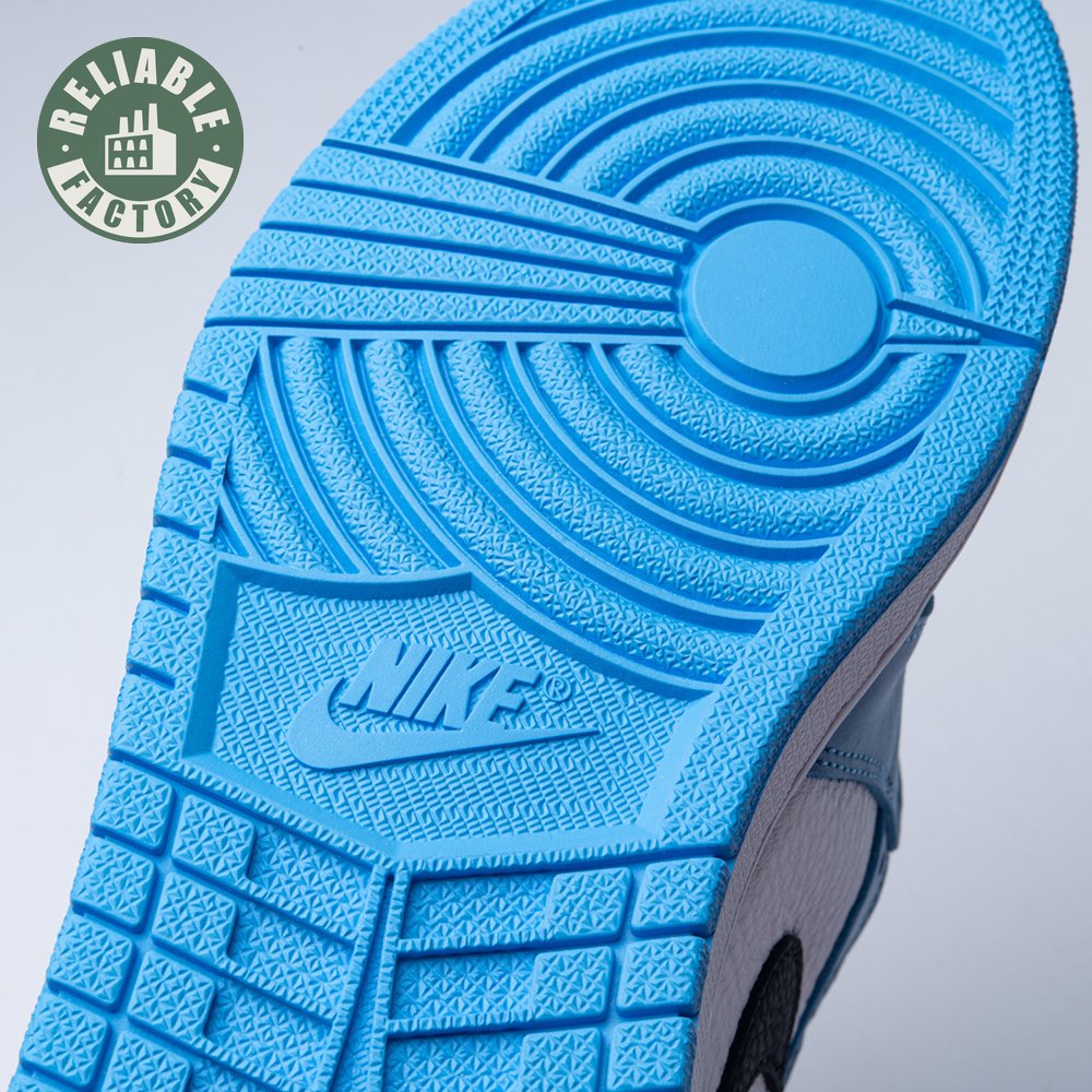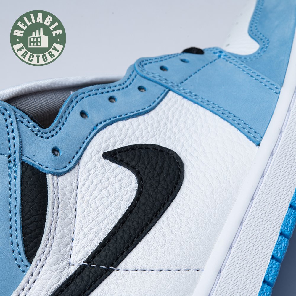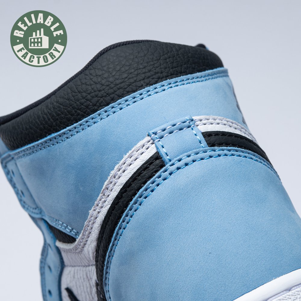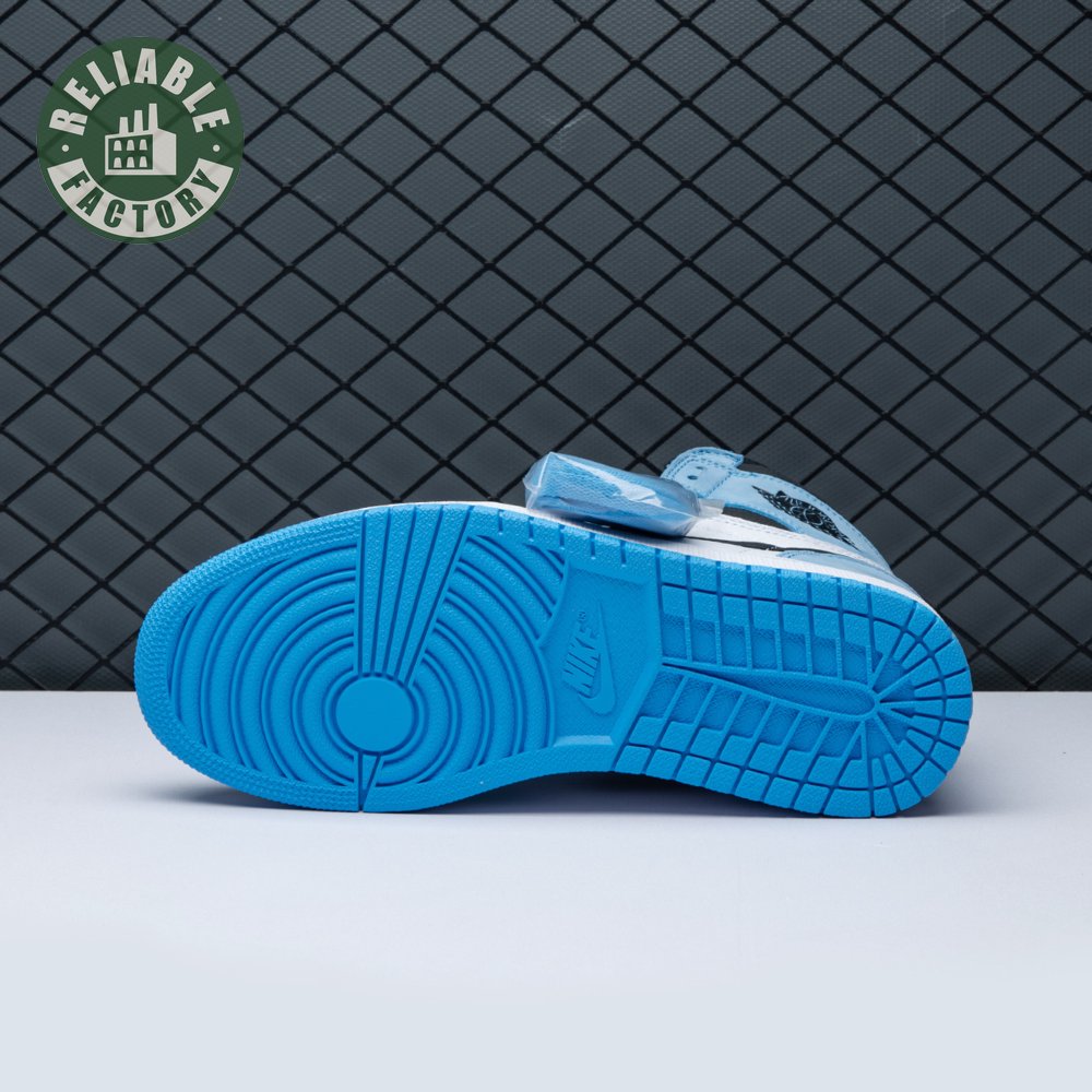 The Air Jordan 1 Retro High OG "University Blue" makes use of a familiar palette that gives the nod to Michael Jordan"s UNC alma mater. The all-leather upper features a white base with powder blue overlays and a black signature Swoosh. Matching black accents make their way to the collar, tongue tag and printed Wings logo on the lateral collar flap. A brighter shade of blue is applied to the standard AJ1 outsole, featuring multi-directional traction and a pivot point under the forefoot.