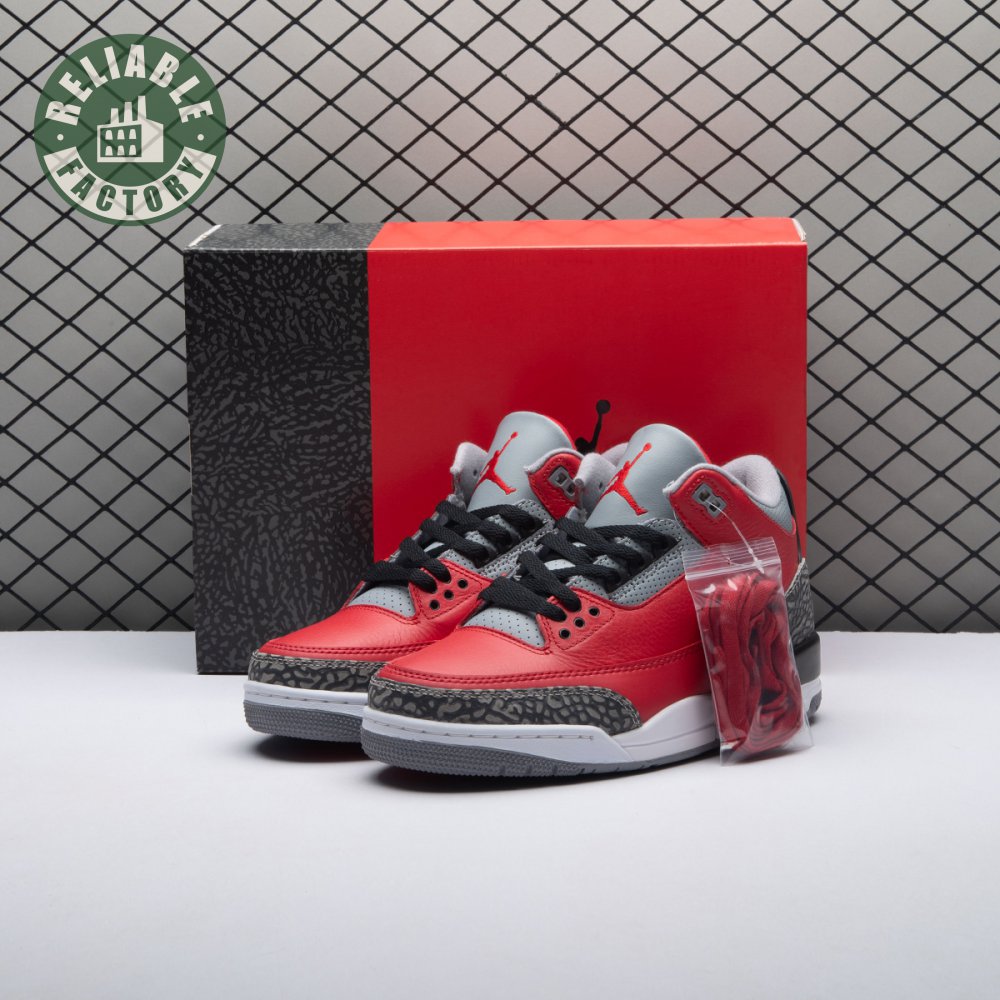 Dropping in conjunction with the 2020 NBA All-Star Weekend in Chicago, the Air Jordan 3 Retro SE 'Unite' showcases classic color blocking that stays true to the sneaker"s Windy City heritage. The tumbled leather upper is finished in a bold Fire Red hue, complete with Nike Air branding and grey cement-print overlays at the toe and heel. The mid-top is anchored by a contrasting white midsole with visible Air sole cushioning.