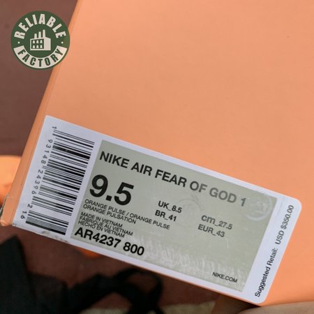 Nike Air Fear Of God 1 Orange Pulse 41-47.5