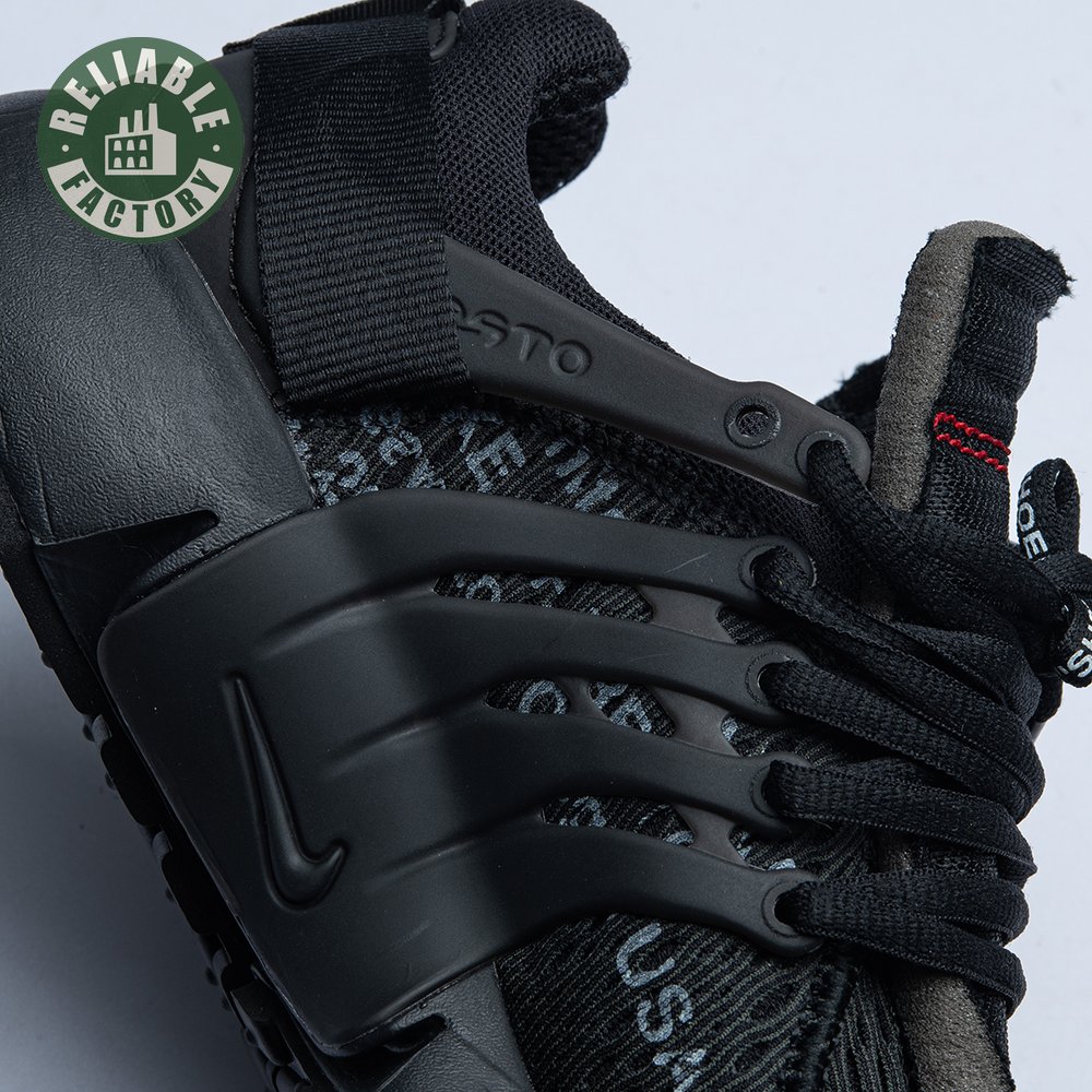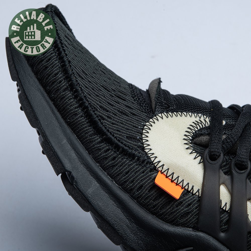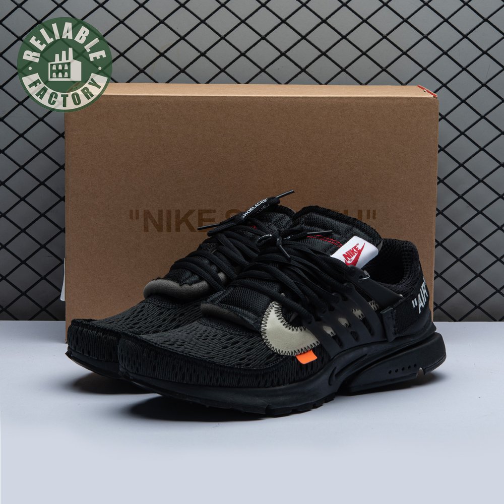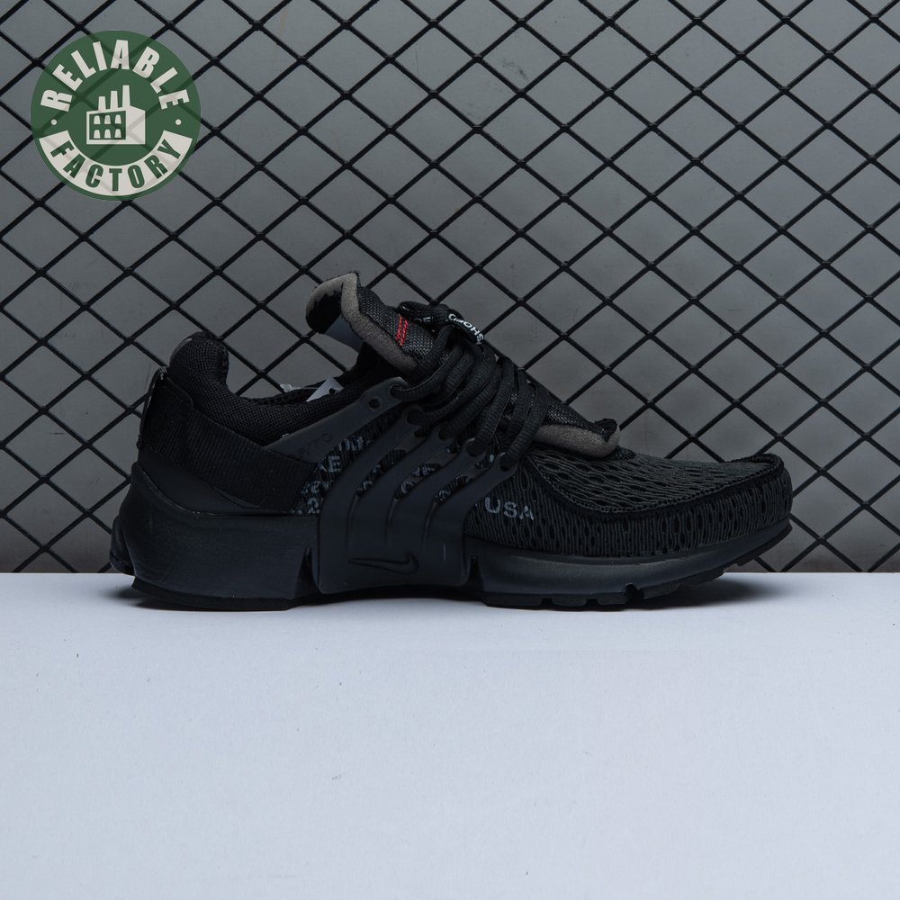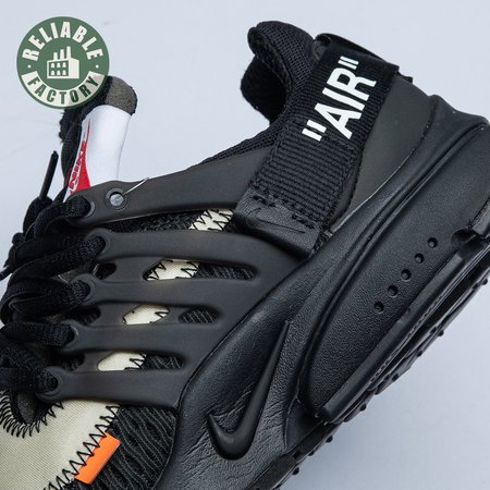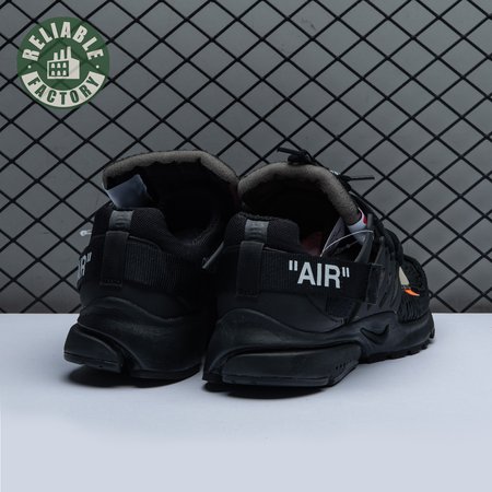 This monochromatic take on the Air Presto is the second time Virgil Abloh and Nike collaborated on this iconic silhouette. The July 2018 iteration came a few mere months after it"s two-tone predecessor made it"s debut as part of Abloh and Nike"s "The Ten" Collection. This pair showcases an all-black finish, accented with unique touches including a plastic zip tie, white Swoosh with conspicuous zig-zag stitching, and lines of text on the medial quarter panel that allude to the shoe"s Beaverton origins.