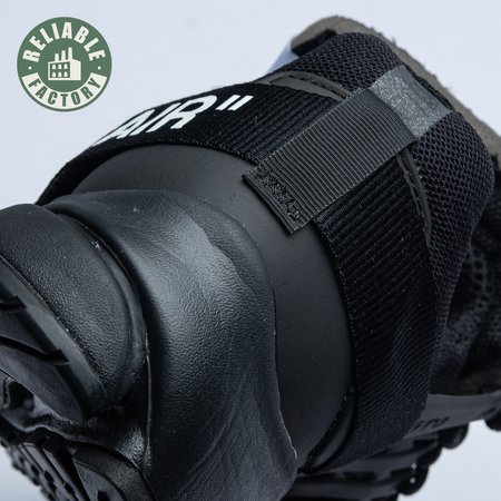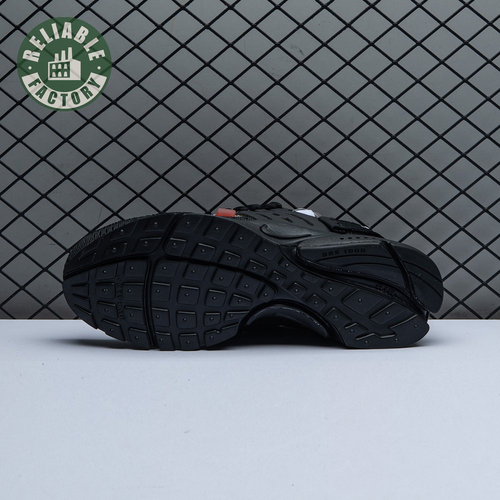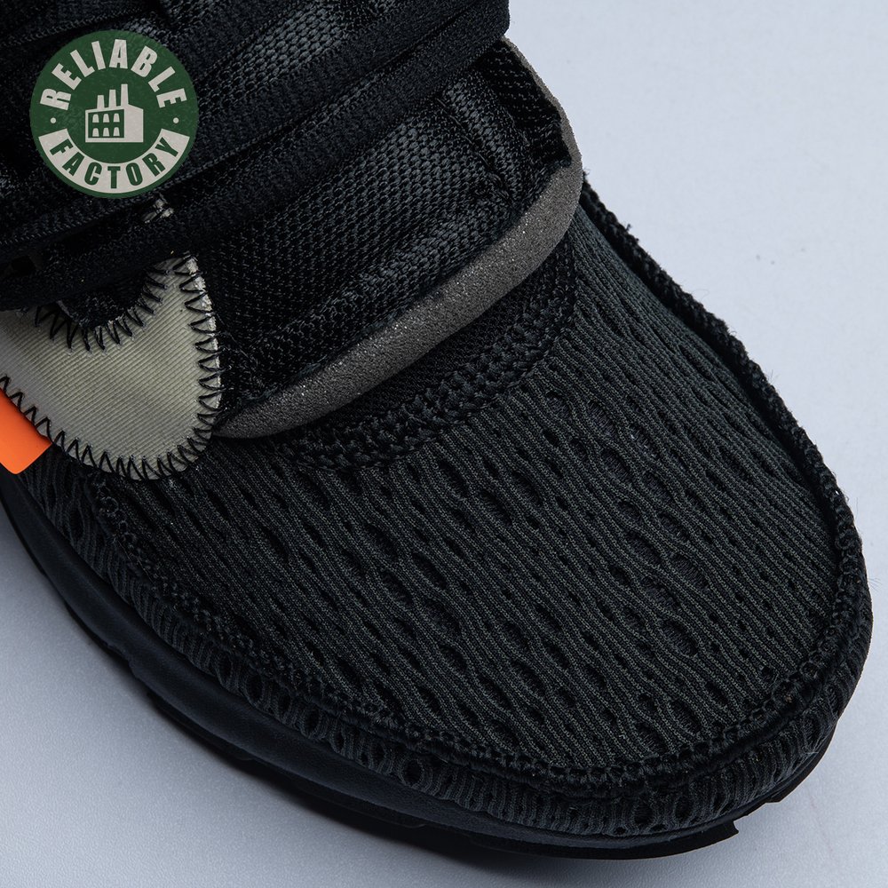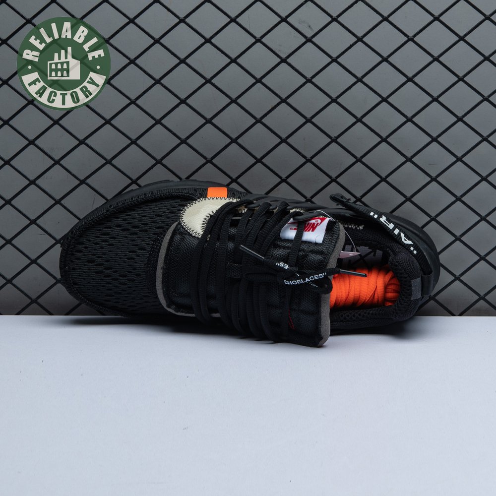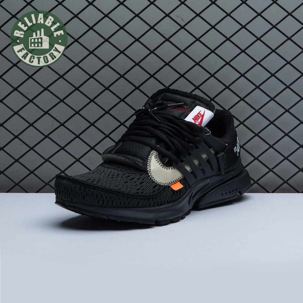 This monochromatic take on the Air Presto is the second time Virgil Abloh and Nike collaborated on this iconic silhouette. The July 2018 iteration came a few mere months after it"s two-tone predecessor made it"s debut as part of Abloh and Nike"s "The Ten" Collection. This pair showcases an all-black finish, accented with unique touches including a plastic zip tie, white Swoosh with conspicuous zig-zag stitching, and lines of text on the medial quarter panel that allude to the shoe"s Beaverton origins.