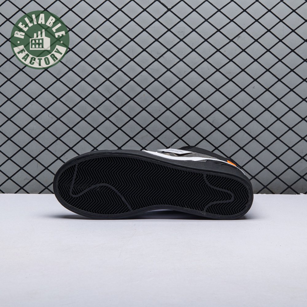 Releasing alongside an accompanying "All Hallow"s Eve" colorway in orange, the Off-White x Blazer Mid "Grim Reapers" completes Virgil Abloh"s Halloween-themed sneaker pack. The black and grey upper sports contrast orange stitching in celebration of the October holiday, along with an oversized white Swoosh, blue zip tie and Off-White lettering on the quarter panel of the shoe"s medial side.