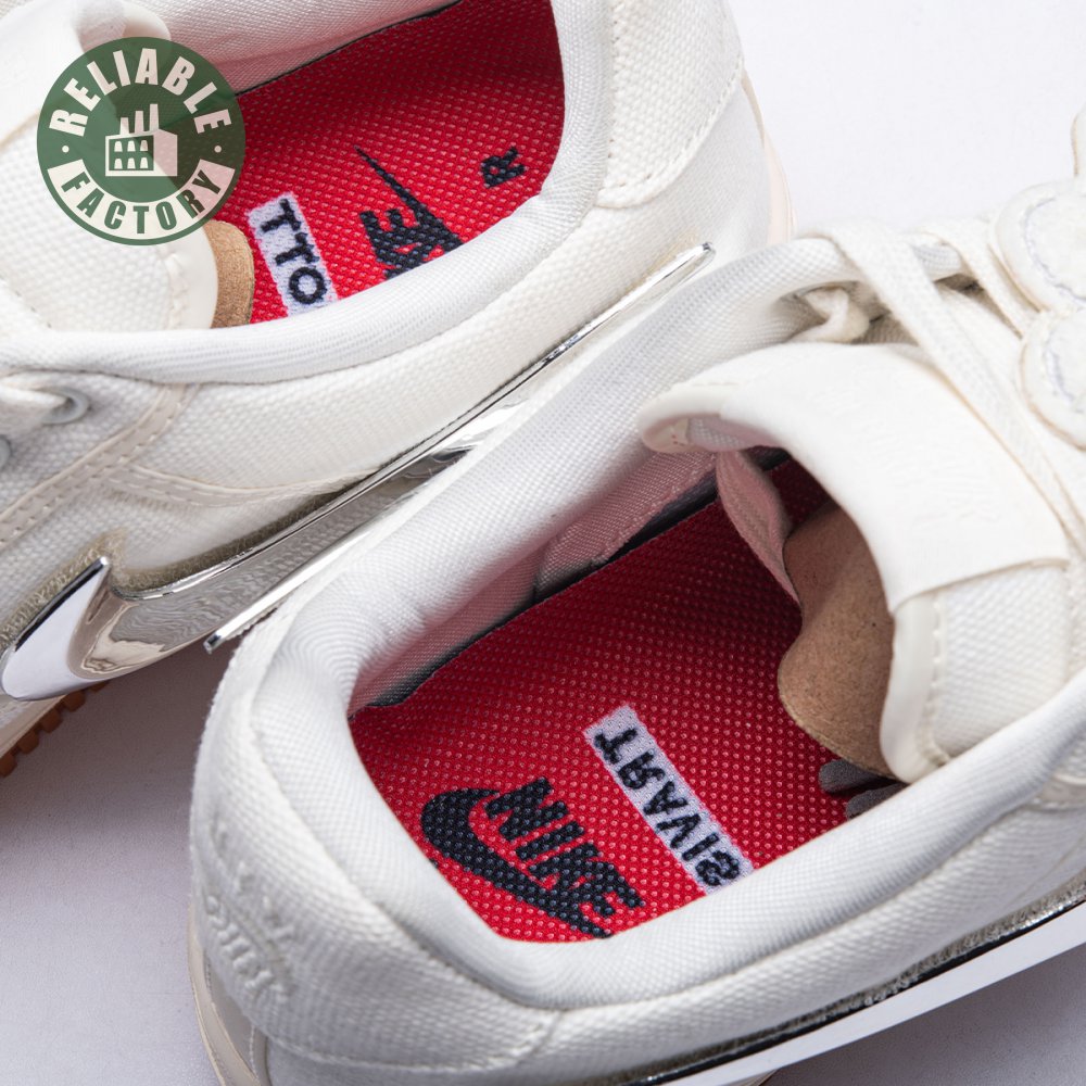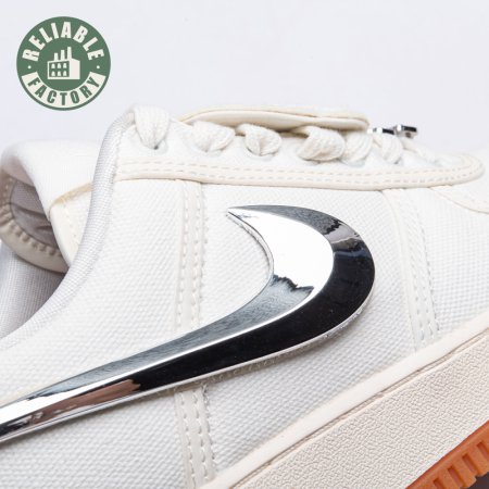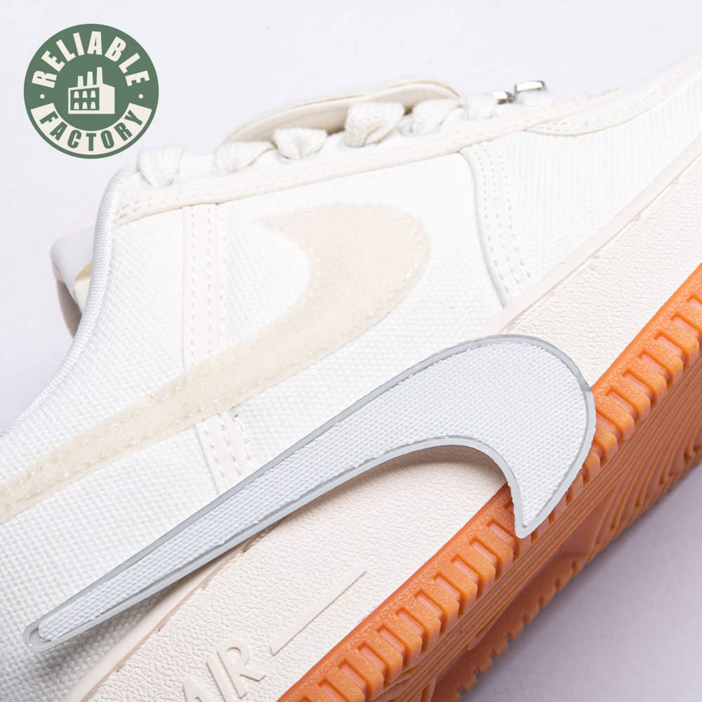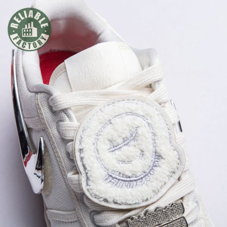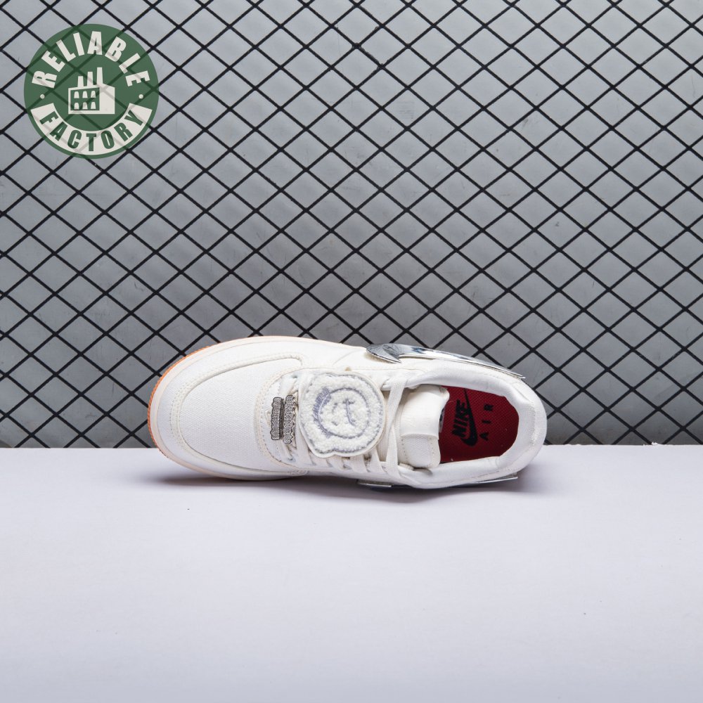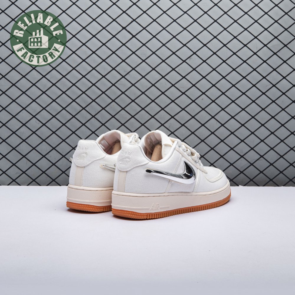 The "Sail" colorway of Travis Scott"s Air Force 1 represents the Houston rapper"s second collaboration with Nike on the classic silhouette. Aside from swapping out the all-white finish of its predecessor with slightly darker Sail, the new model is mostly unchanged. Tonal canvas construction is accented with removable Swooshes and tongue patches, while the shiny lace jewels give a nod to Scott"s signature grill.