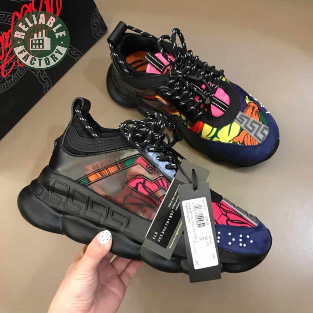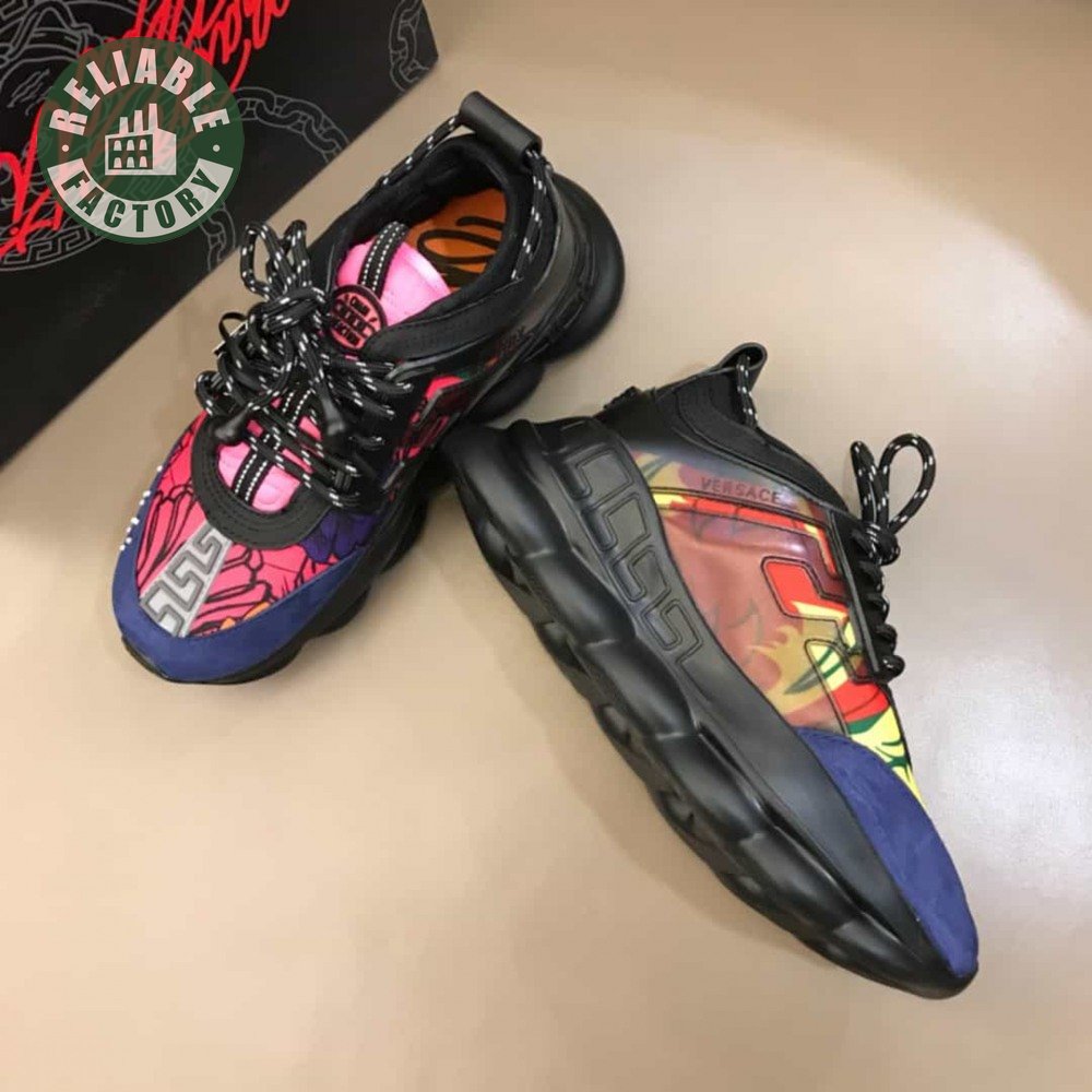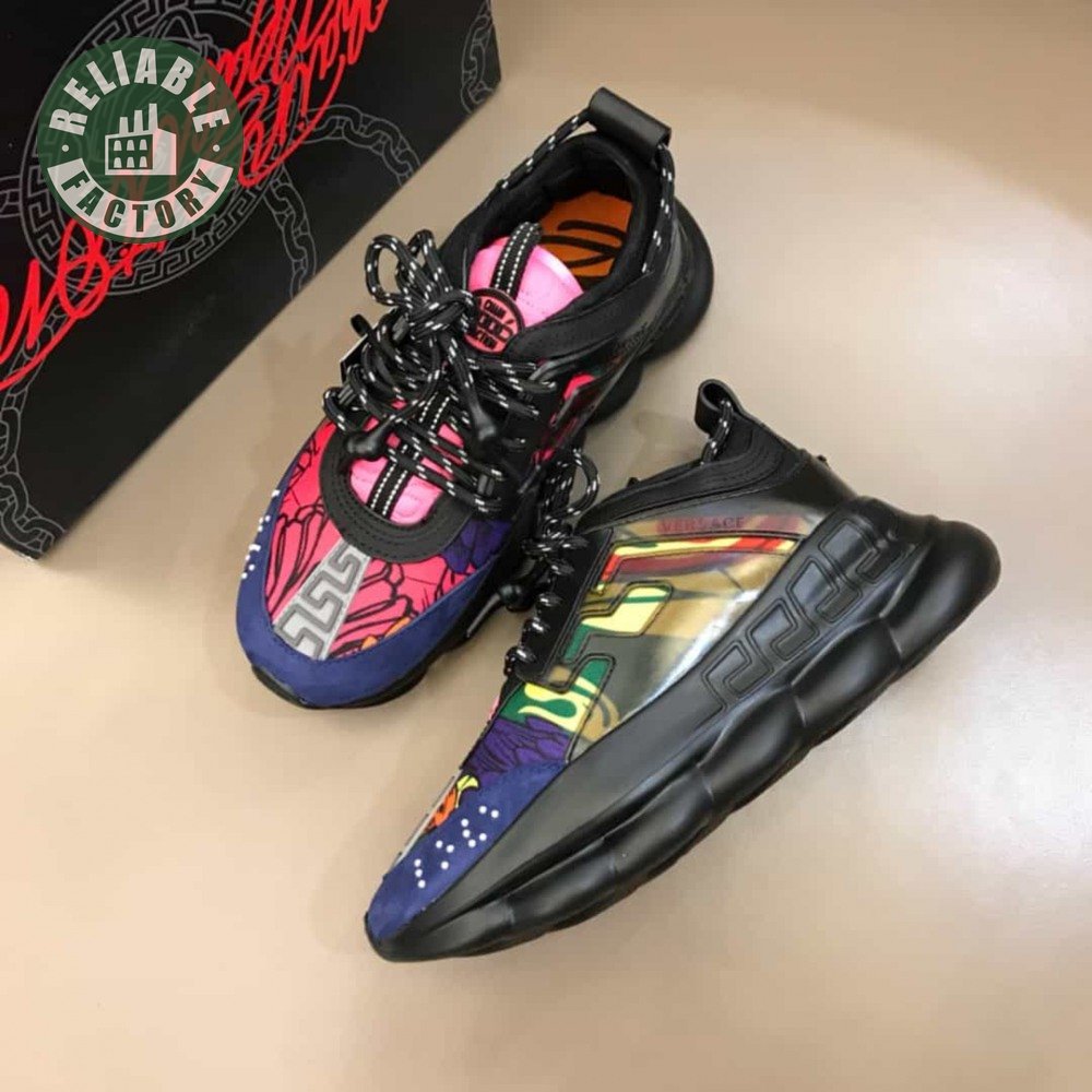 VERSACE BLACK AND MULTICOLOURED CHAIN REACTION SNEAKERS - VS8