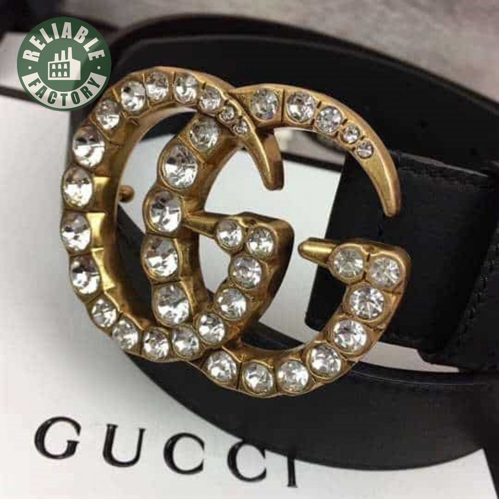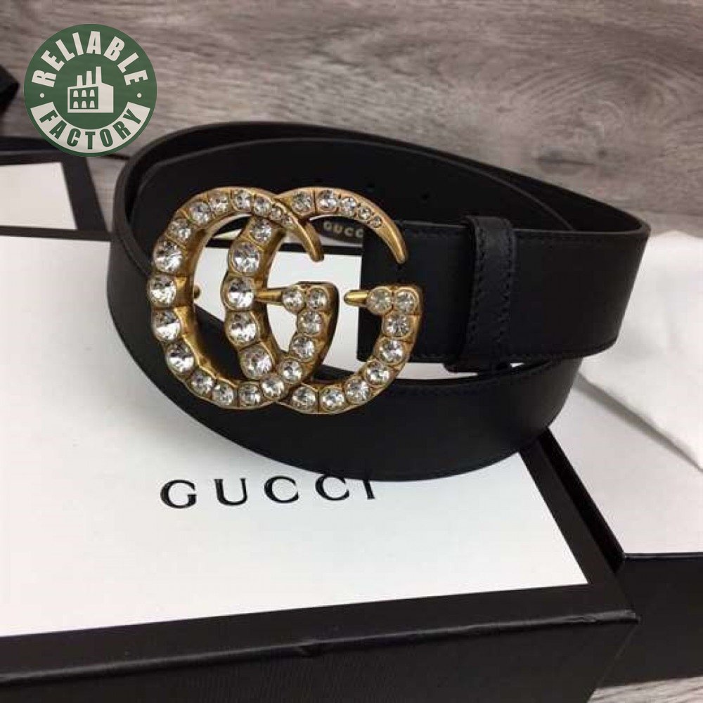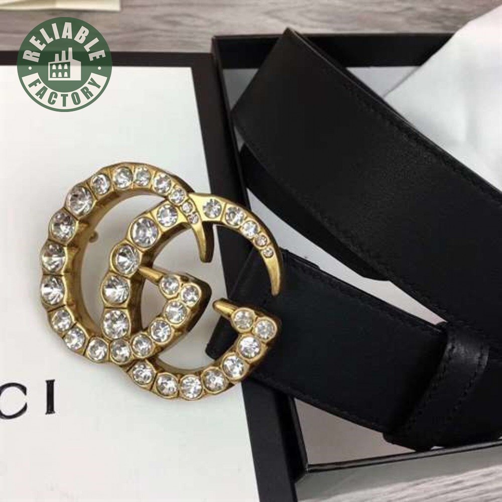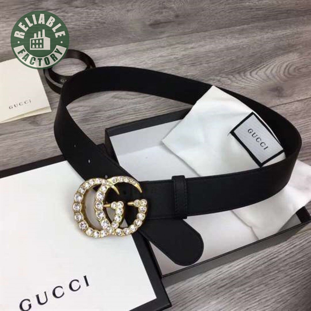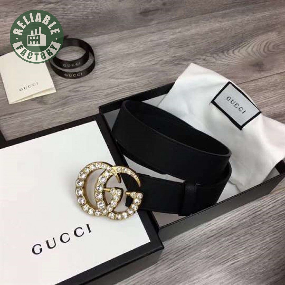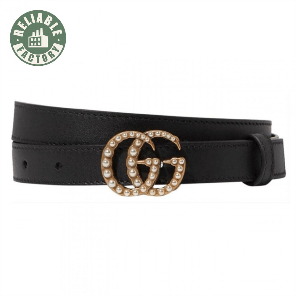GUCCI BLACK FAUX PEARL-EMBELLISHED LEATHER BELT - B44