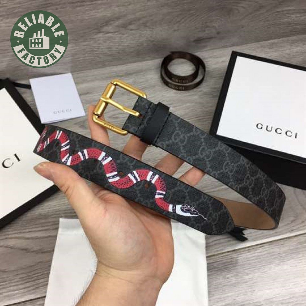 GUCCI LEATHER BELT WITH KINGSNAKE - B41