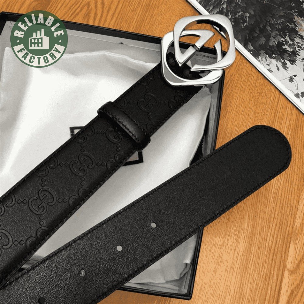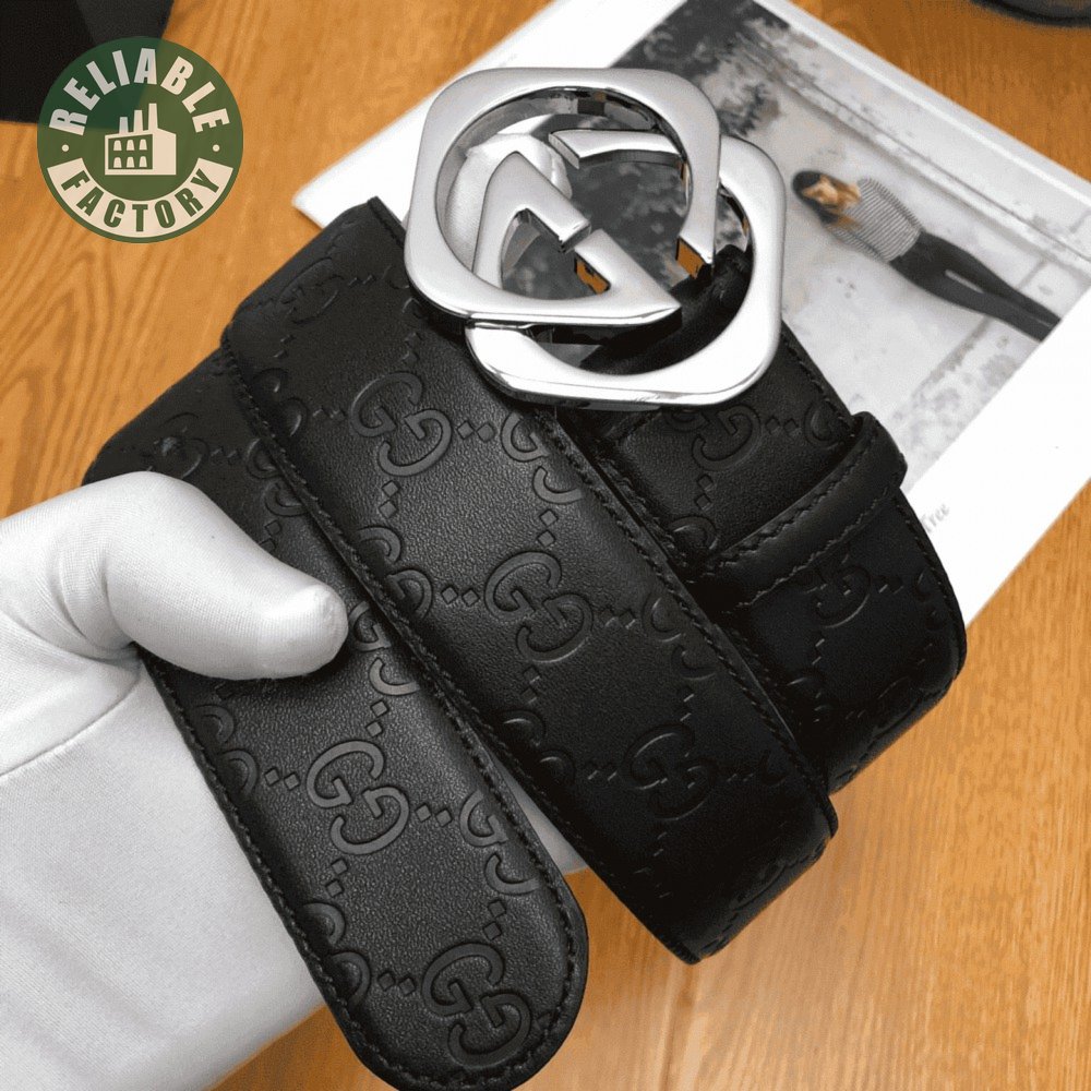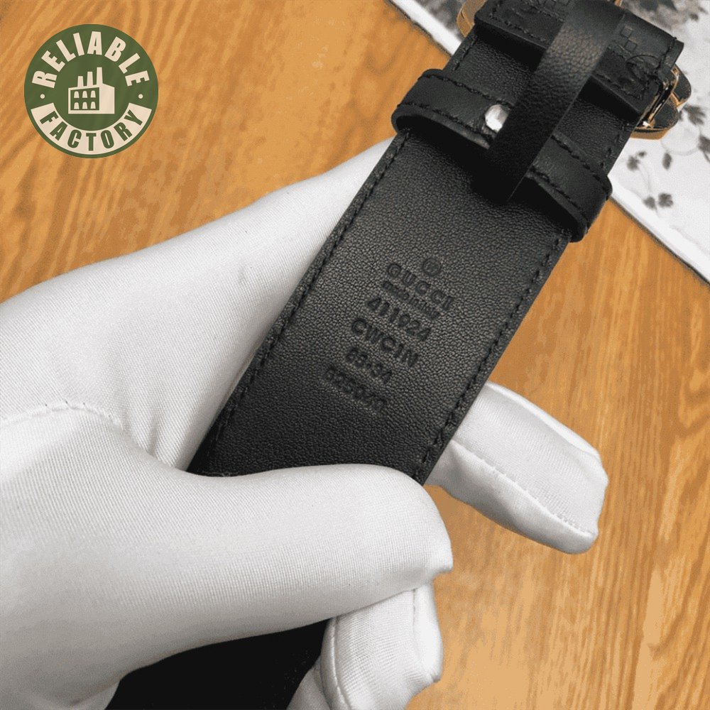GUCCI BLACK S.SI.MA LEATHER BELT WITH SQUARE G BUCKLE - B4