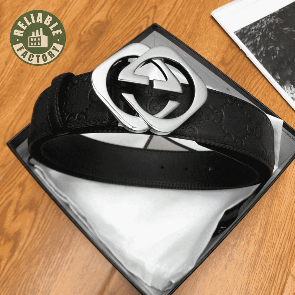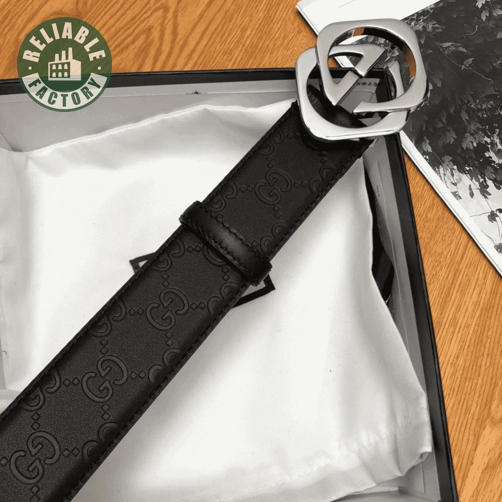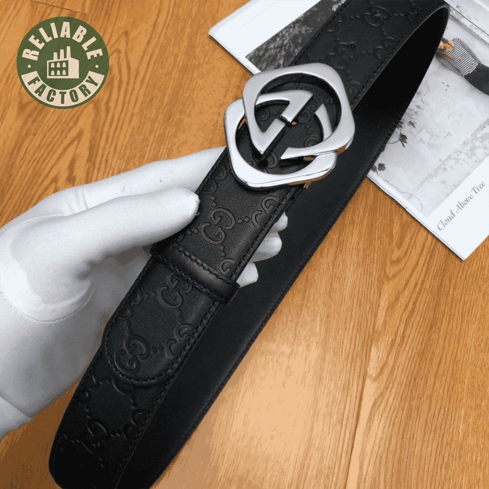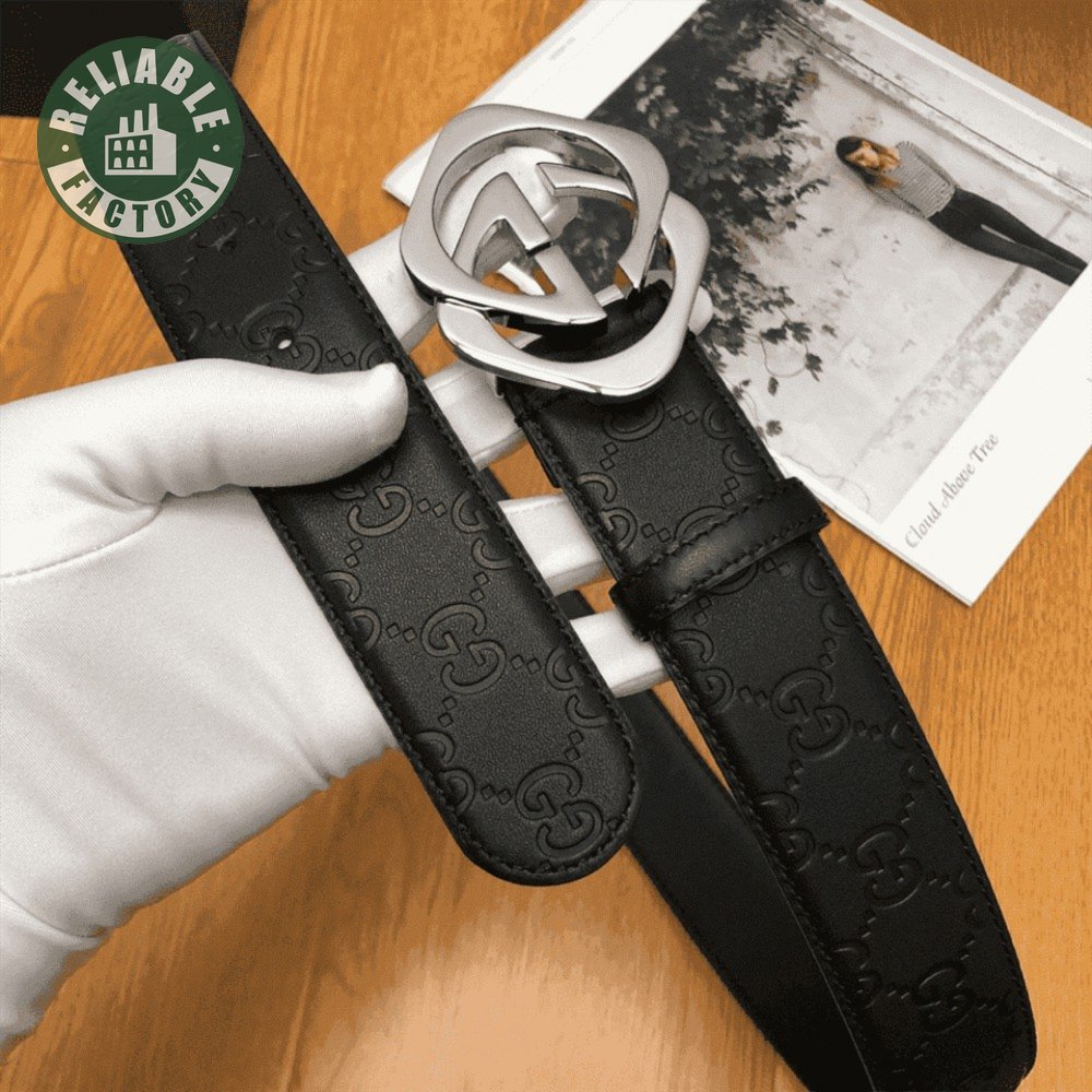 GUCCI BLACK S.SI.MA LEATHER BELT WITH SQUARE G BUCKLE - B4