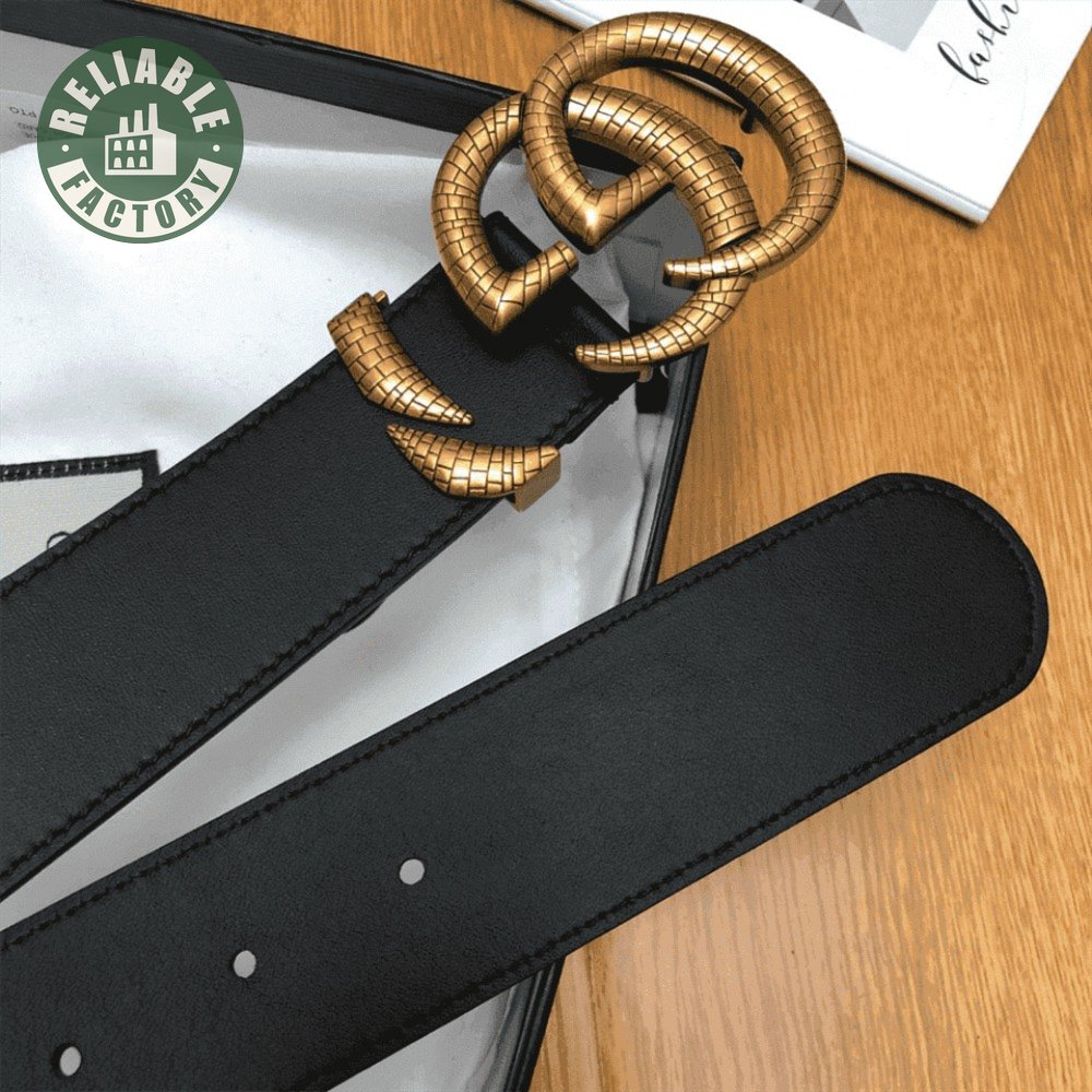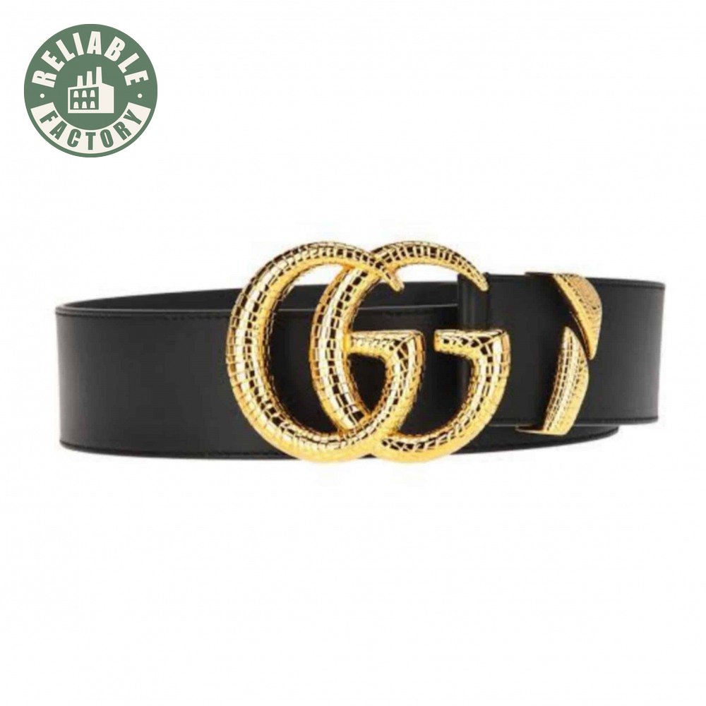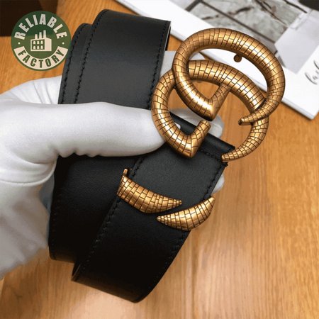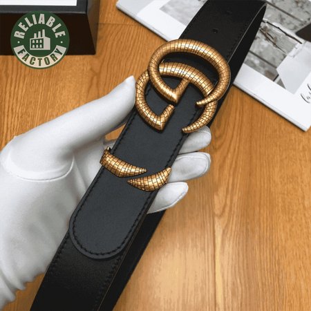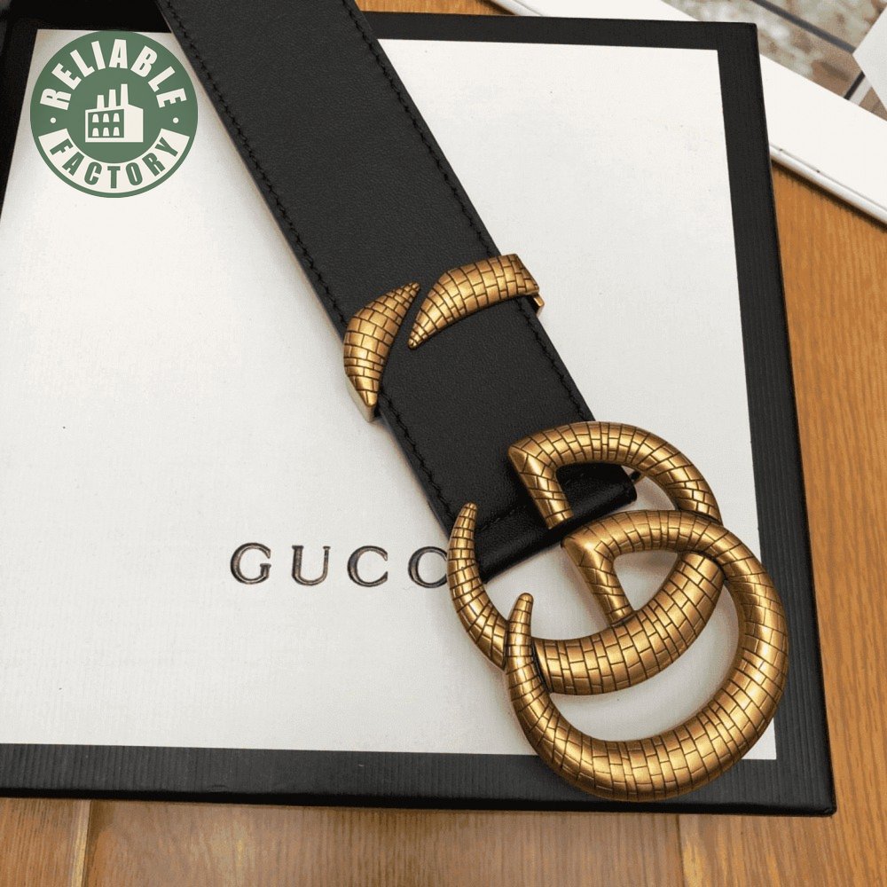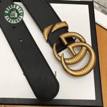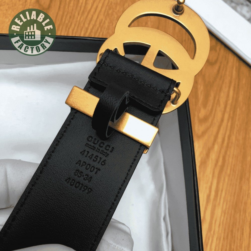 GUCCI LEATHER BELT WITH DOUBLE G BUCKLE - B11