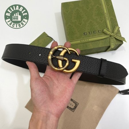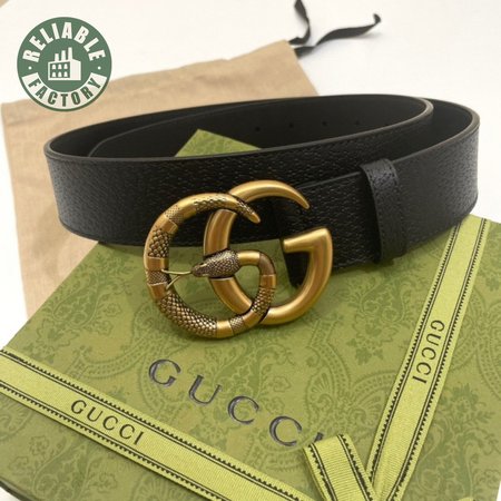 GUCCI LEATHER BELT WITH DOUBLE G BUCKLE WITH SNAKE