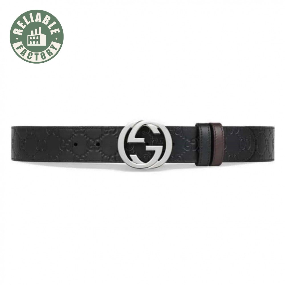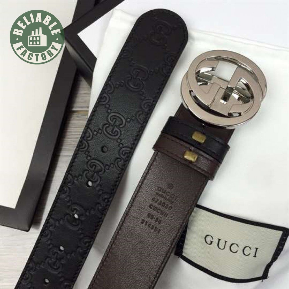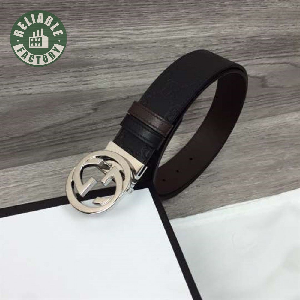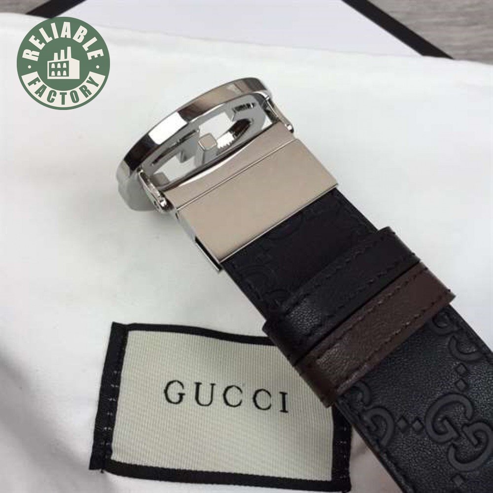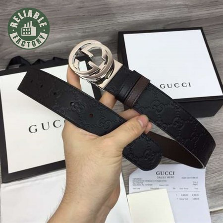 GUCCI SIGNATURE BELT WITH SILVER G BUCKLE - B49