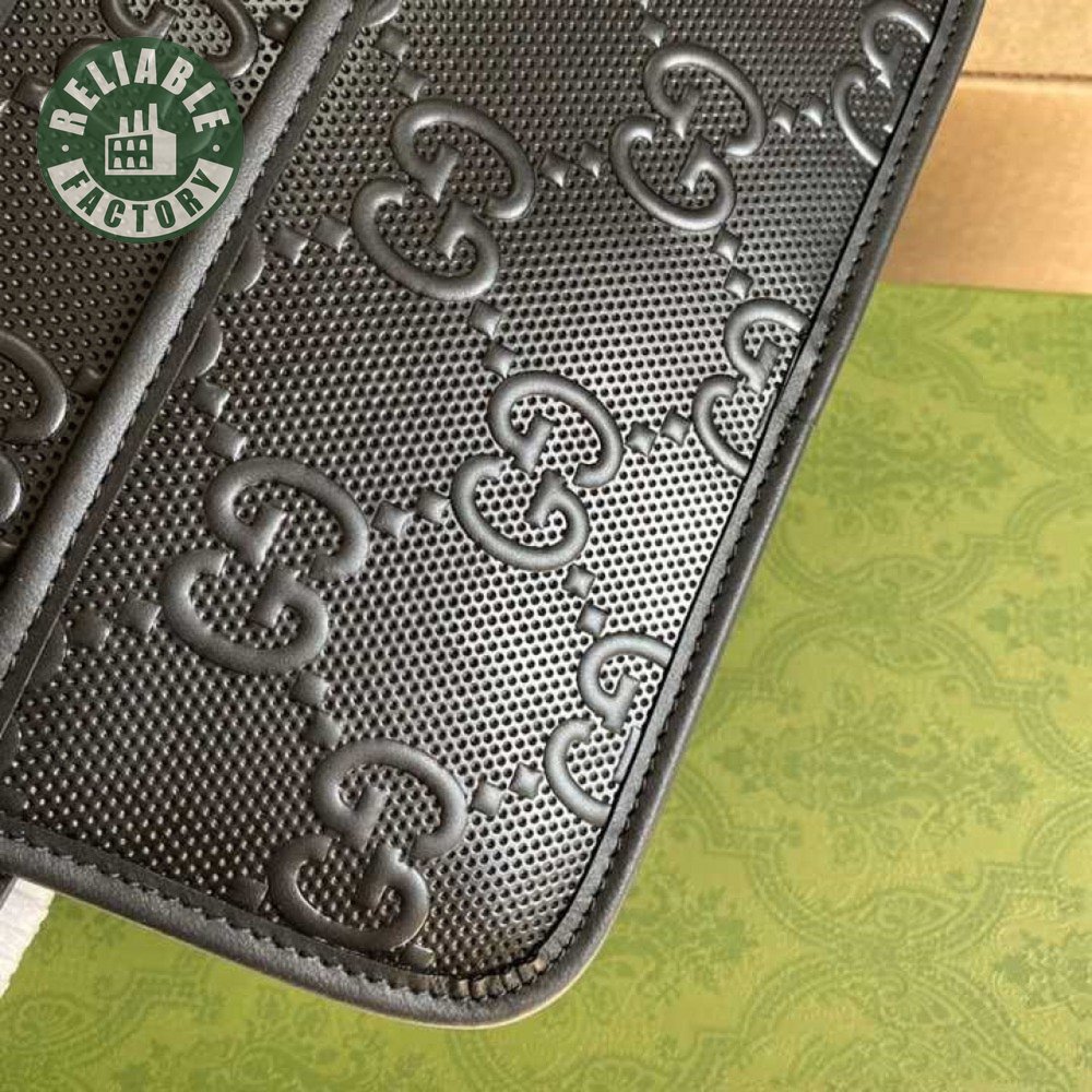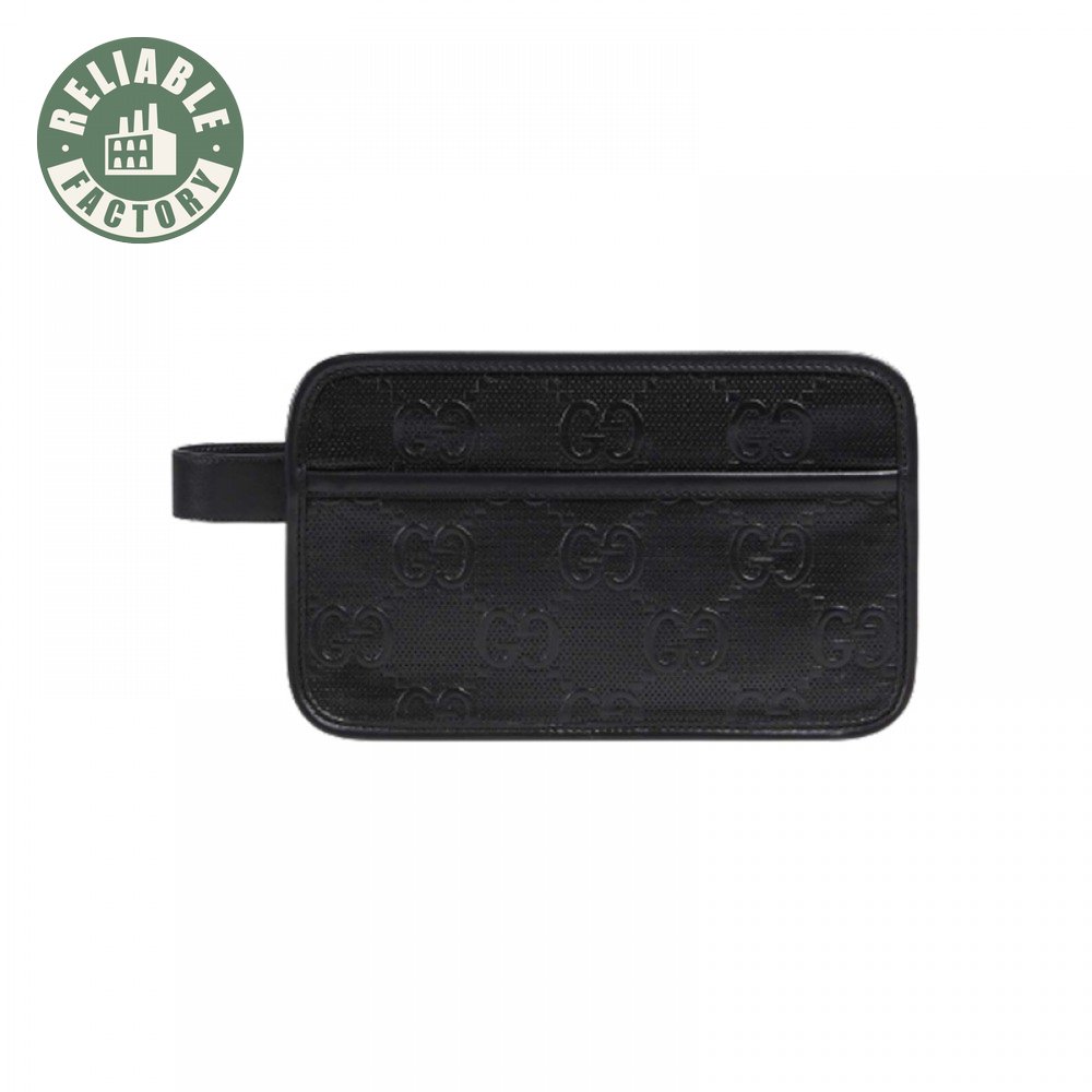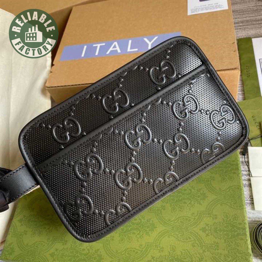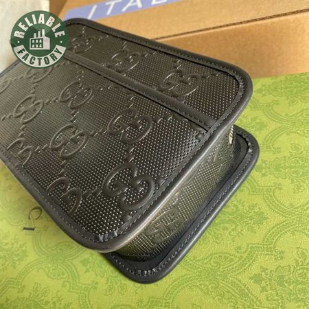 Gg Embossed Cosmetic Case Black Gg Embossed Leather Cotton Linen Lining GBB020