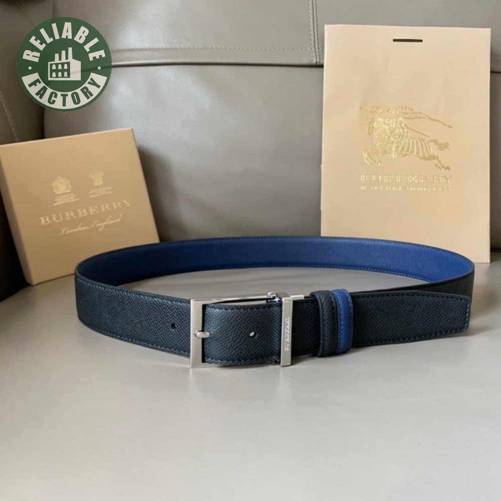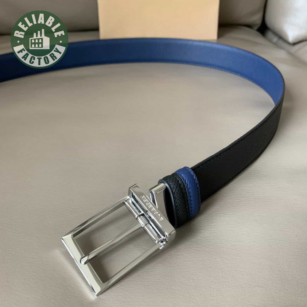 BURBERRY REVERSIBLE LONDON CHECK AND LEATHER BELT DARK CHARCOALBLACK - B29
