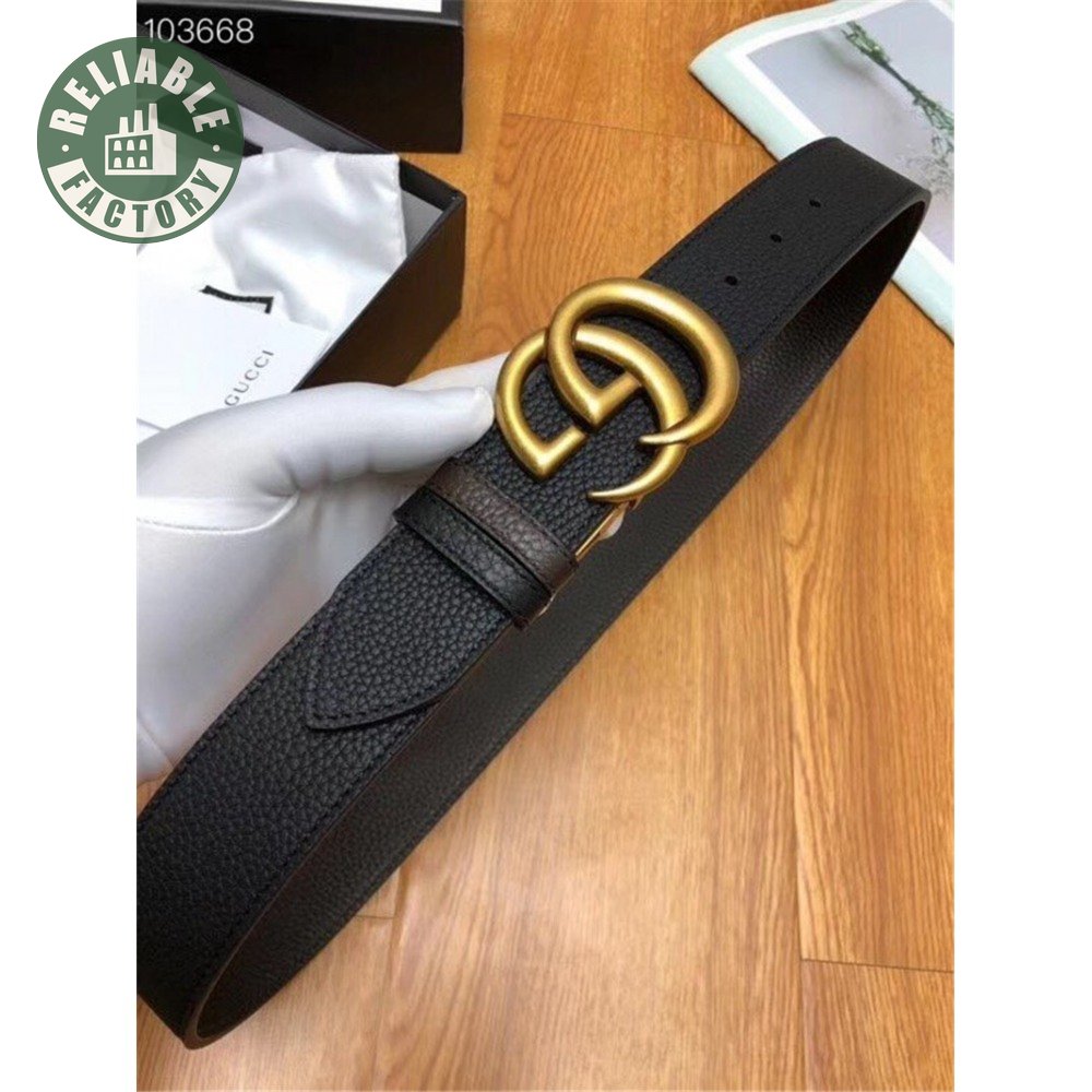 GUCCI LEATHER BELT WITH DOUBLE G BUCKLE - B11