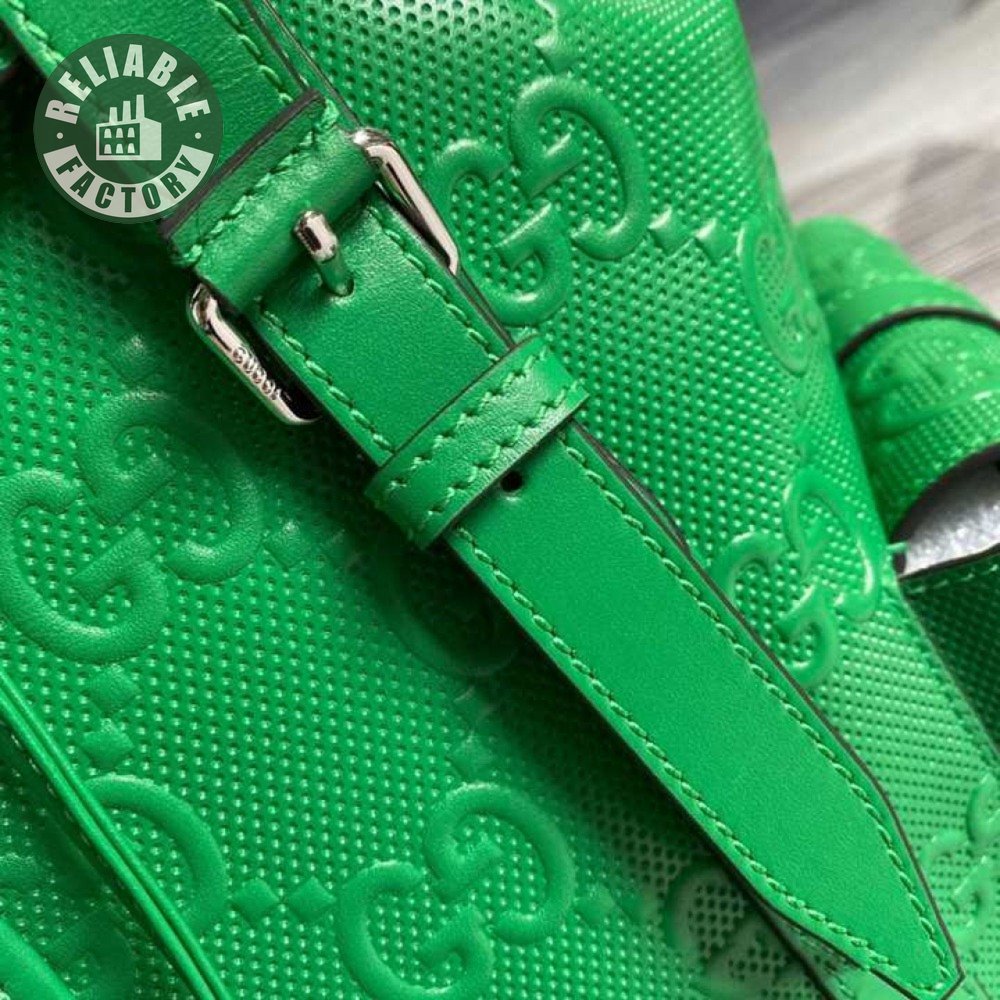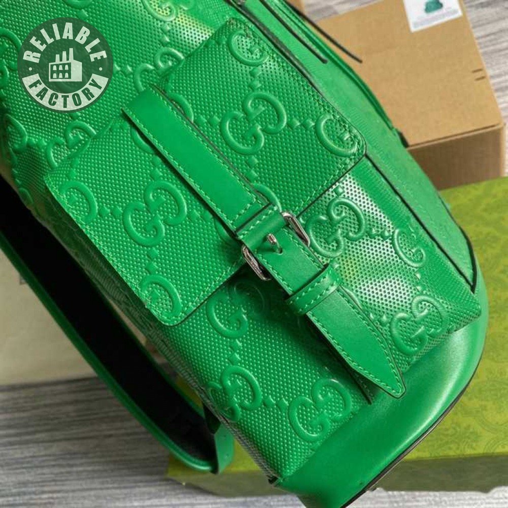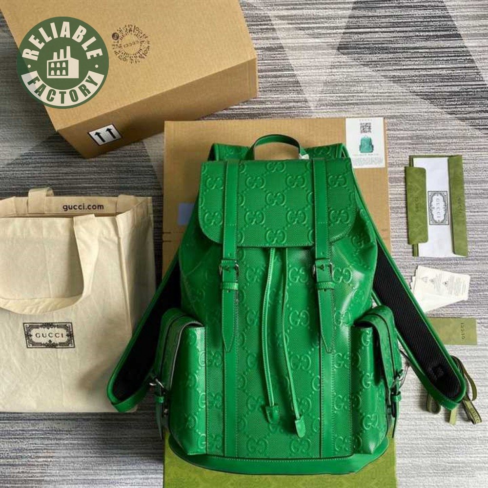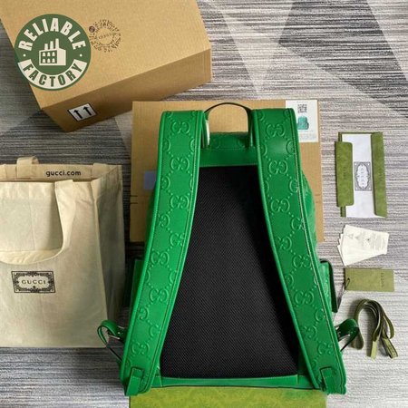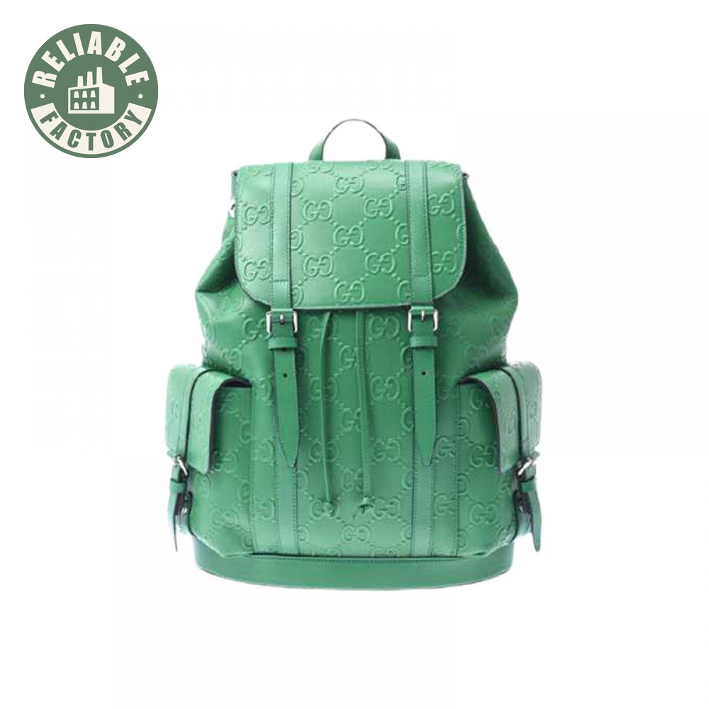 Gg Embossed Backpack In Green Leather GBP015
