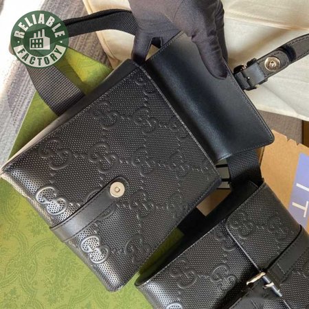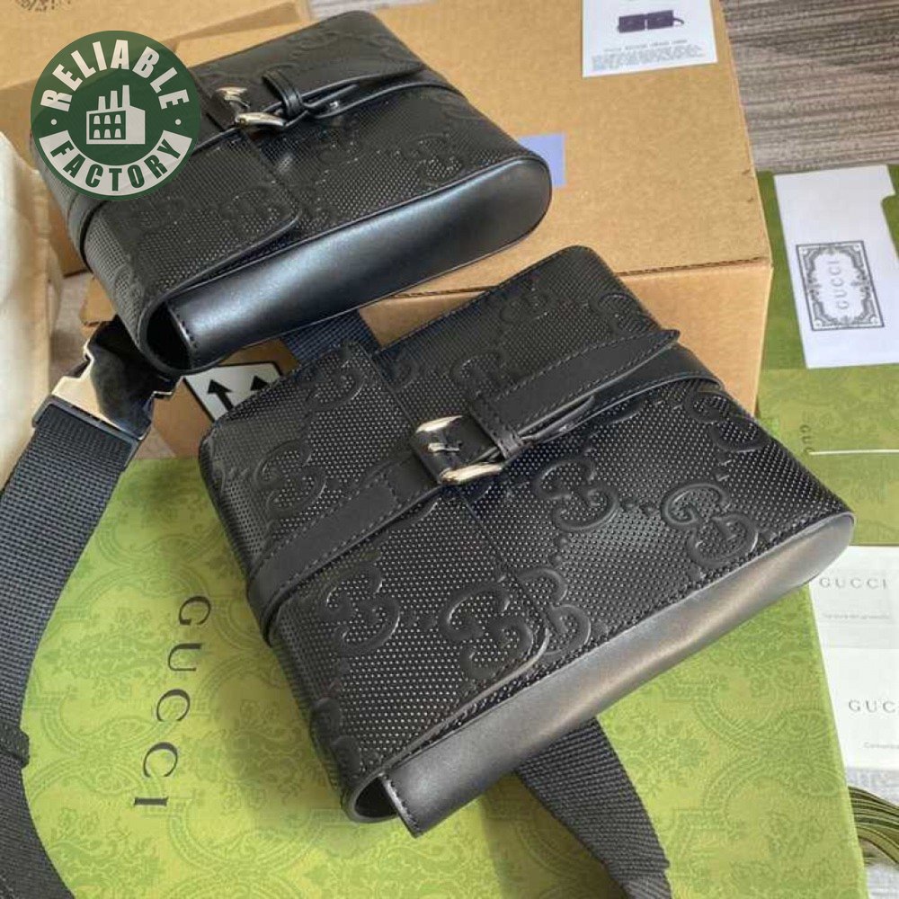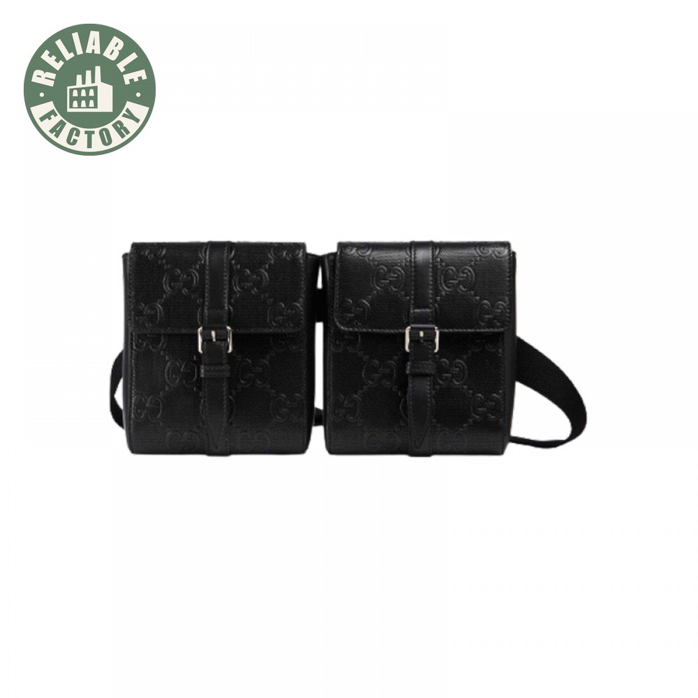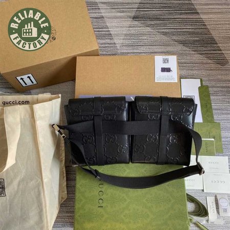 Gg Embossed Belt Bag Black Gg Embossed Leather Cotton Linen Lining GBB021