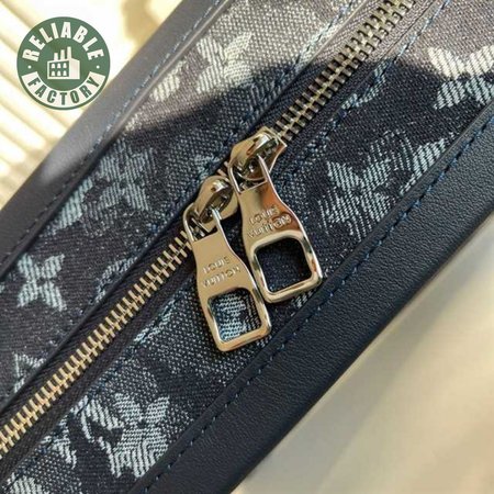 duo messenger bag navy blue monogram shadow cowhide leather - mb01