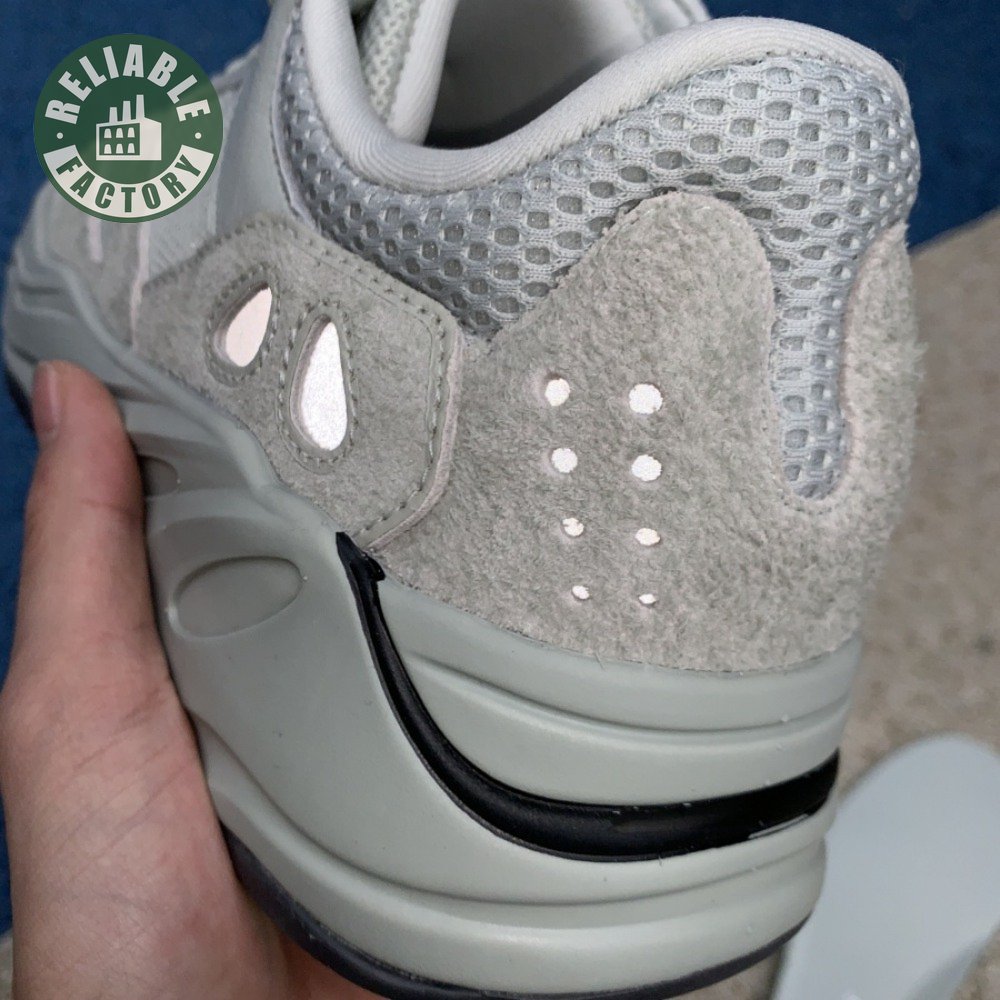 The Yeezy Boost 700 "Salt" follows a design trail originally blazed by the Yeezy 500 in November 2018. Like its predecessor, the lifestyle silhouette features a monochromatic light grey finish on a mesh base with tonal overlays in suede and leather. A sculpted midsole in matching grey, concealing full-length Boost cushioning within, features a subtle black accent, matched by the rubber outsole underfoot.