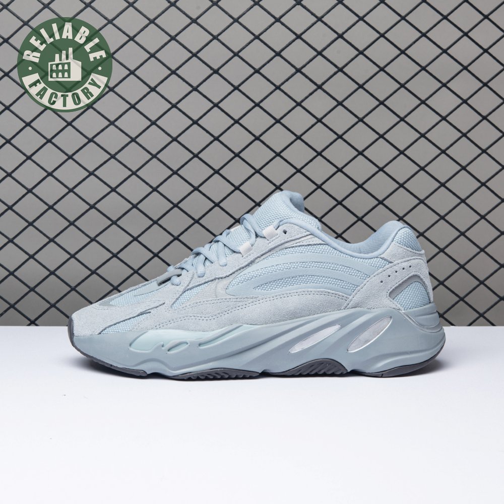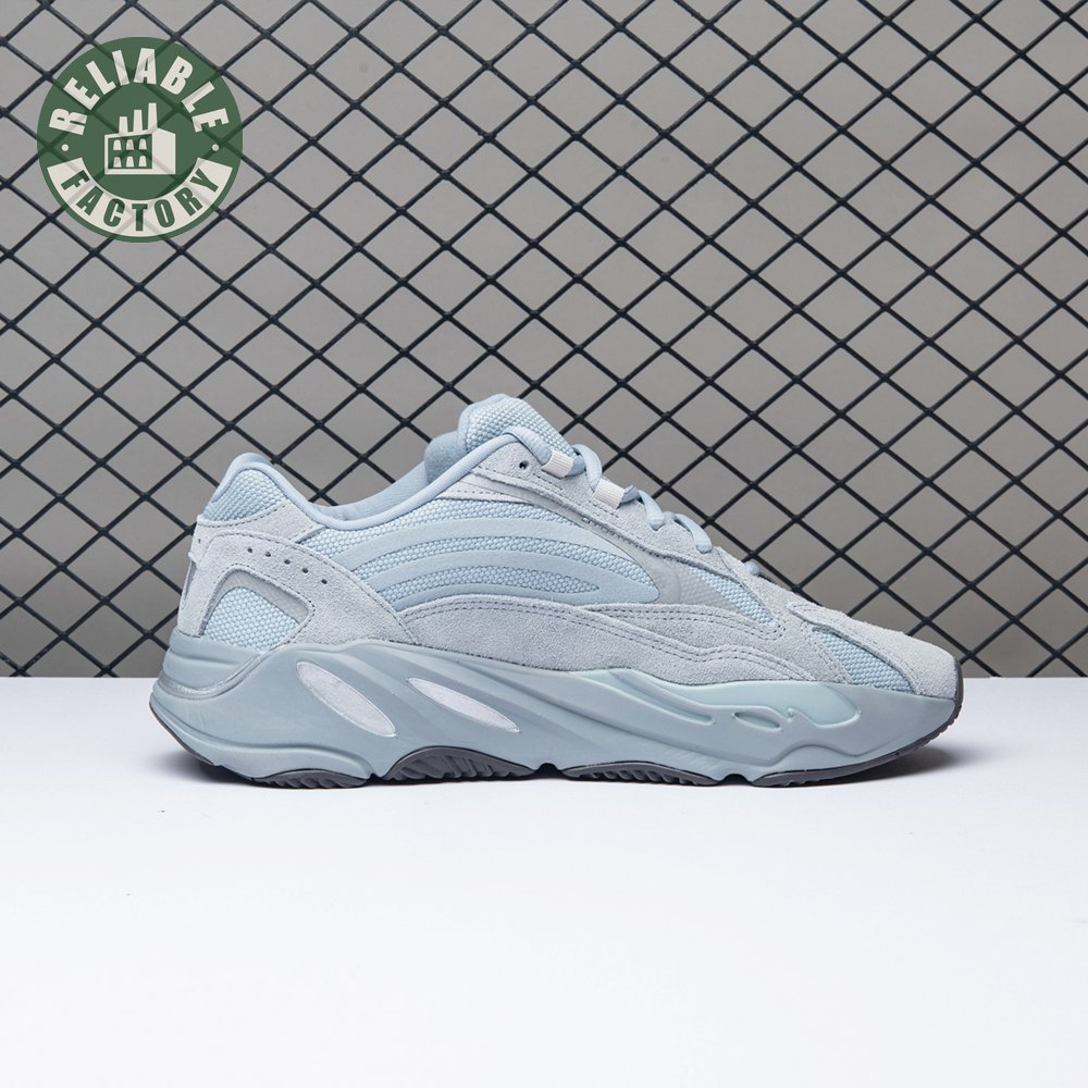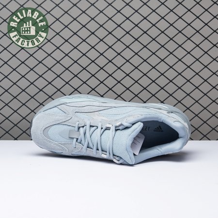 The adidas Yeezy Boost 700 V2 is an ode to Kanye West's affinity for 90s running style with updated elements to place it in the modern world. Issued in September 2019, this 'Hospital Blue' version works a roller knit upper with leather overlays, mesh on the heel and reflective Three-Stripes across the sides. A sculpted midsole containing responsive Boost technology and a herringbone rubber outsole grant support and durability.