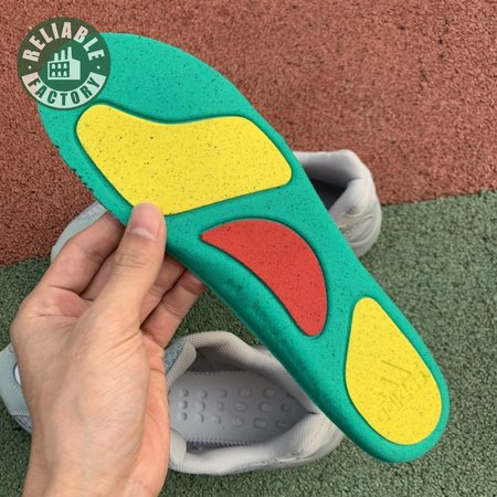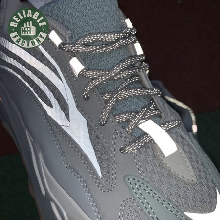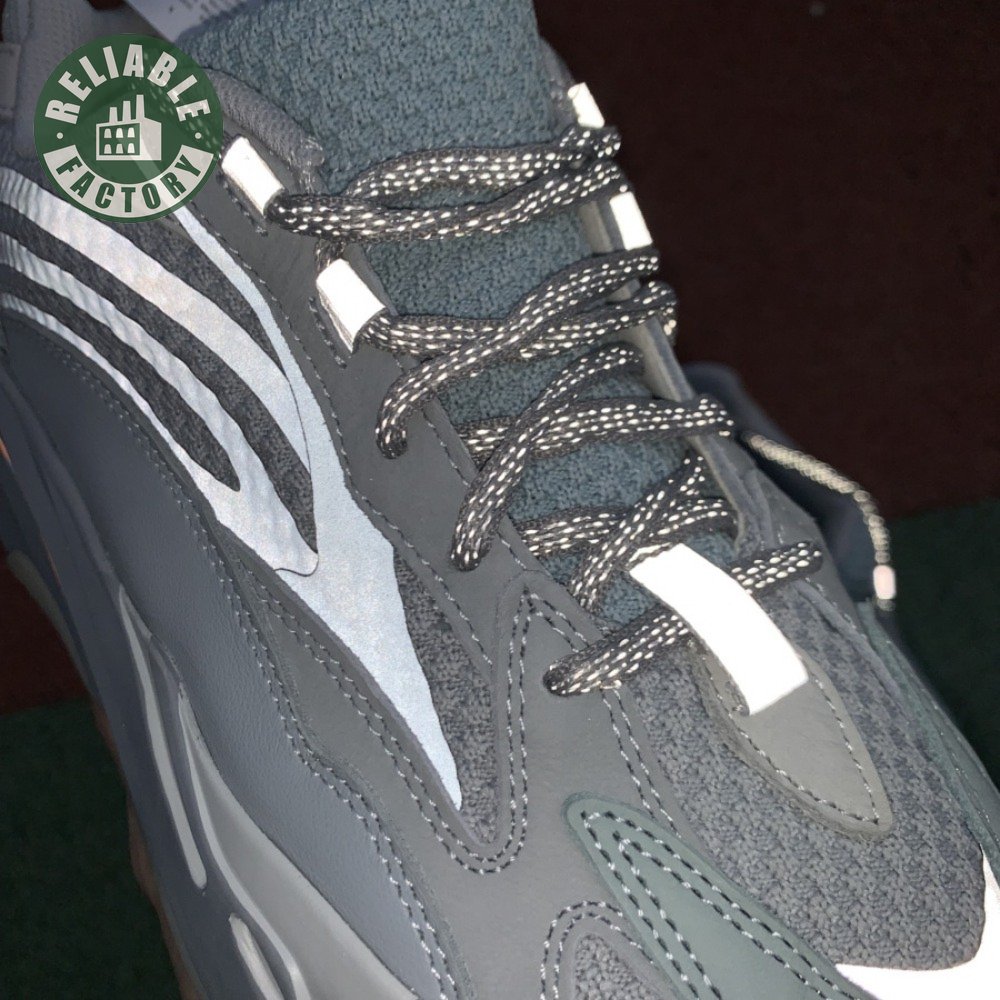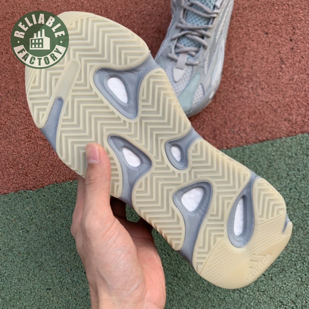 The adidas Yeezy Boost 700 V2 symbolizes a redux of the layered V1 aesthetic with its exaggerated proportions and intricate construction. Unveiled in September 2019 and mirroring a V1 colorway, this Inertia edition softens the icon with a monochromatic mesh, suede and synthetic film upper. Silver reflective accents settle on the heel. With color-pop detailing, the sculpted Boost midsole rides on top of a herringbone-patterned gum rubber outsole.