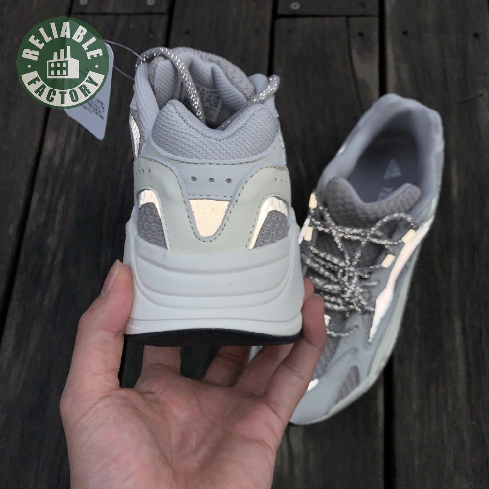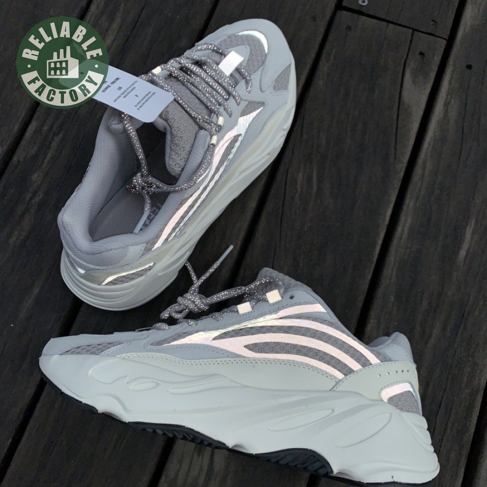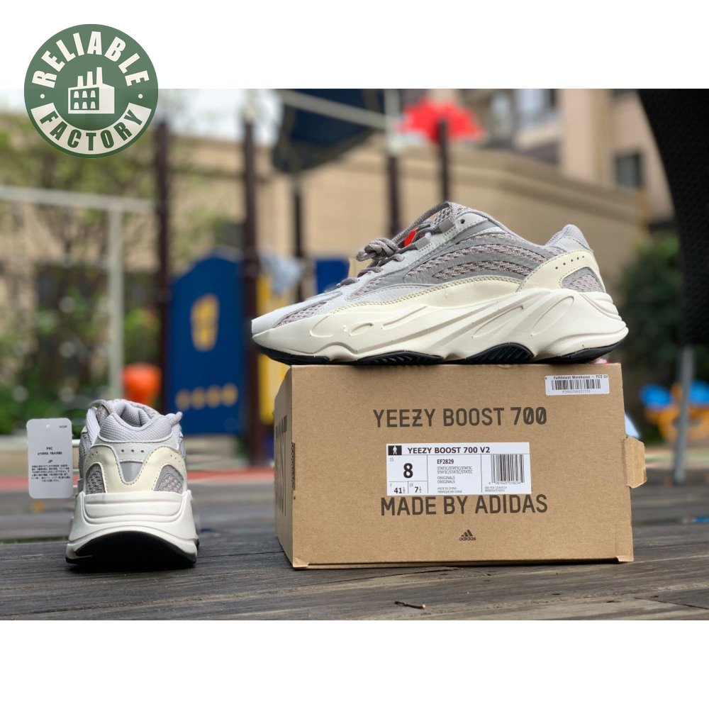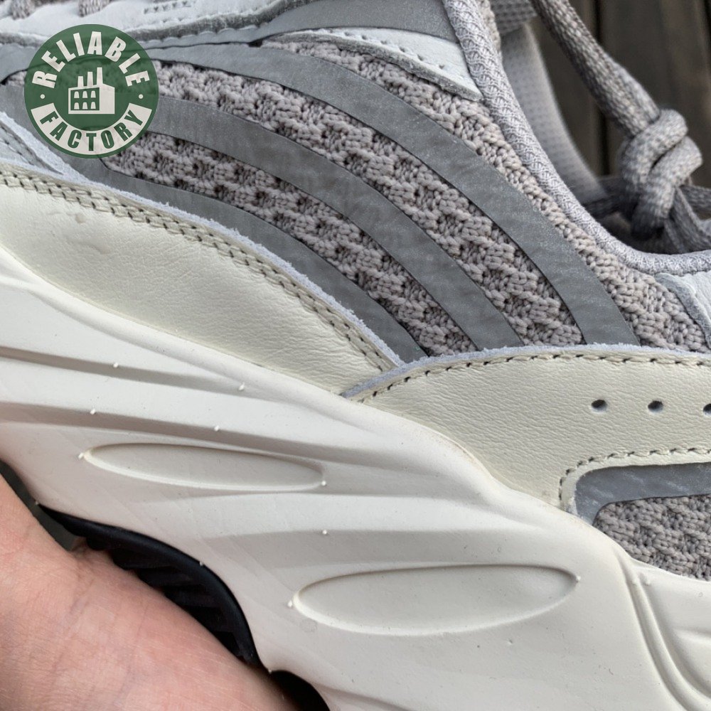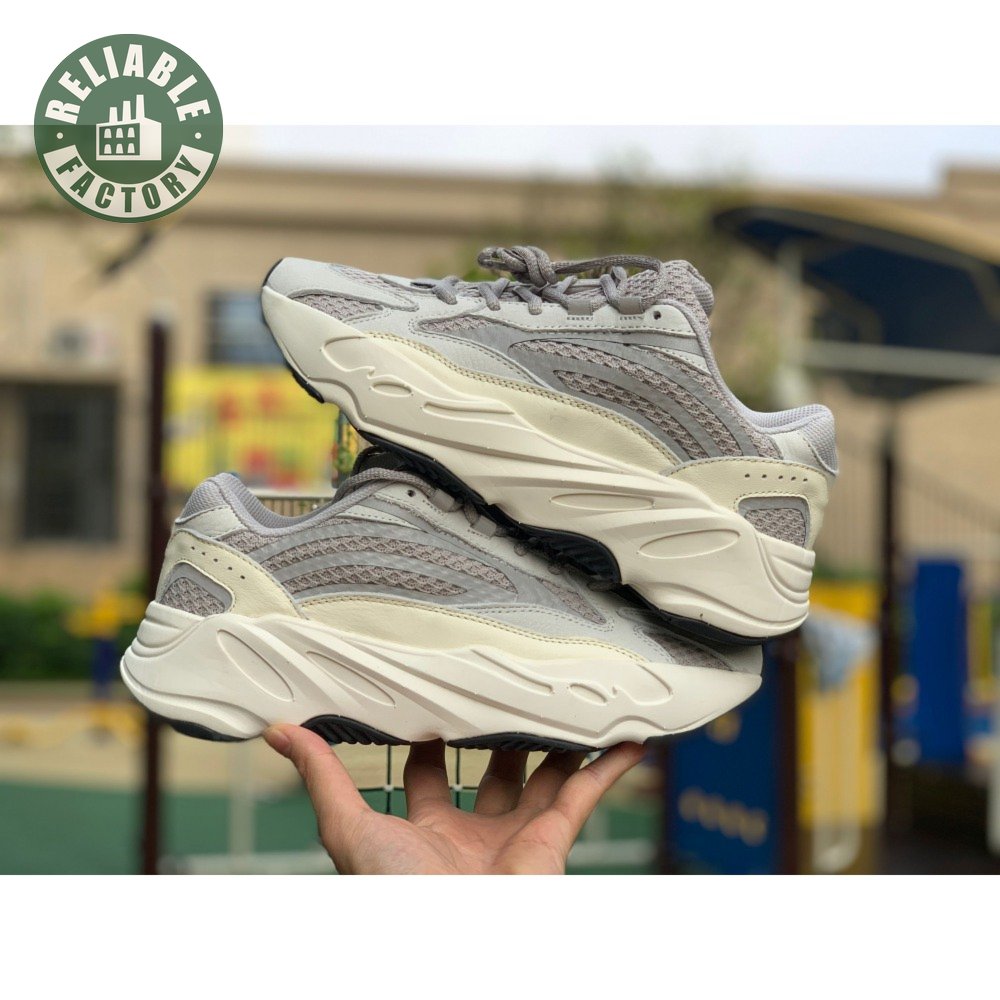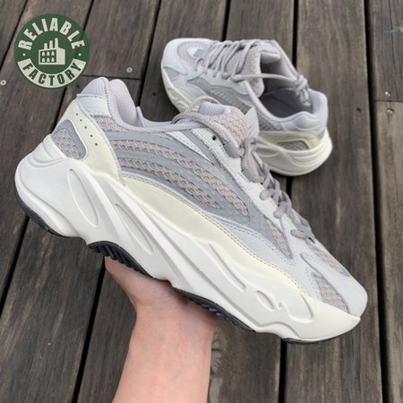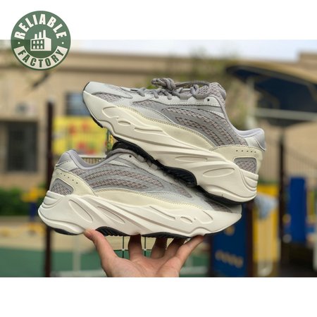 The Yeezy Boost 700 V2 "Static" is an update to the original Wave Runner. The upper features a slightly reworked design, while the midsole stays the same. This new edition showcases an understated colorway made up of soft, neutral shades. The layered composition of the upper, featuring a mesh base with welded reflective overlays and leather paneling, is finished in varying shades of grey and white. The silhouette"s signature bulky midsole, finished in matching white, is supported underfoot by a black rubber outsole.