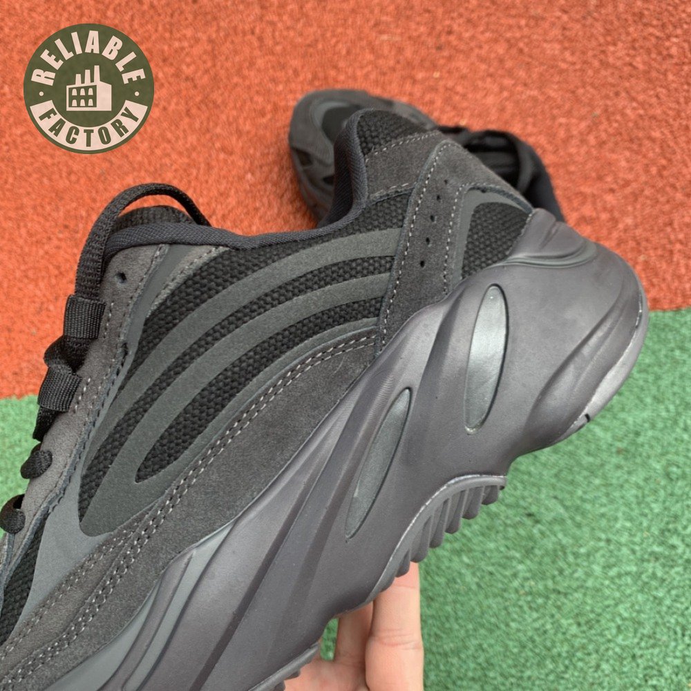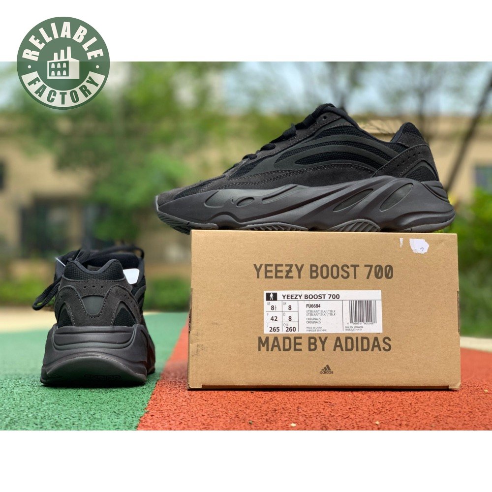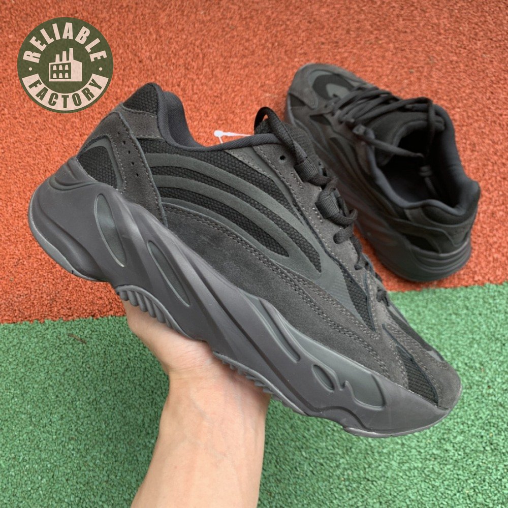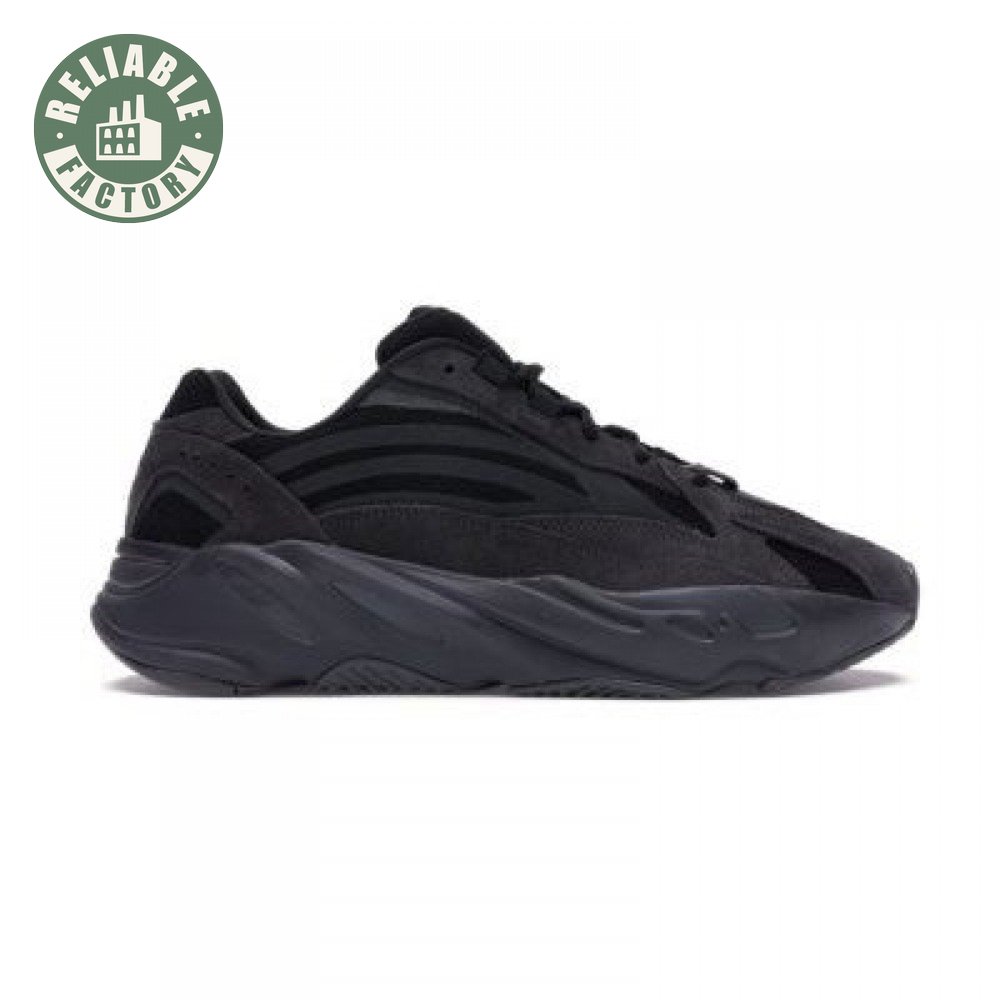 Seen as the successor to the first Yeezy 700 that debuted at Kanye West"s 2017 Yeezy Season 5 show, the Yeezy Boost 700 V2 sneaker maintains elements of the original while updating it with a sleeker profile. Released in June 2019, the 'Vanta' edition brings an all-over black hue to its multi-layered mesh upper with suede overlays. Below, full-length adidas Boost technology cushions the foot, encapsulated within the 700's distinct chunky sole.