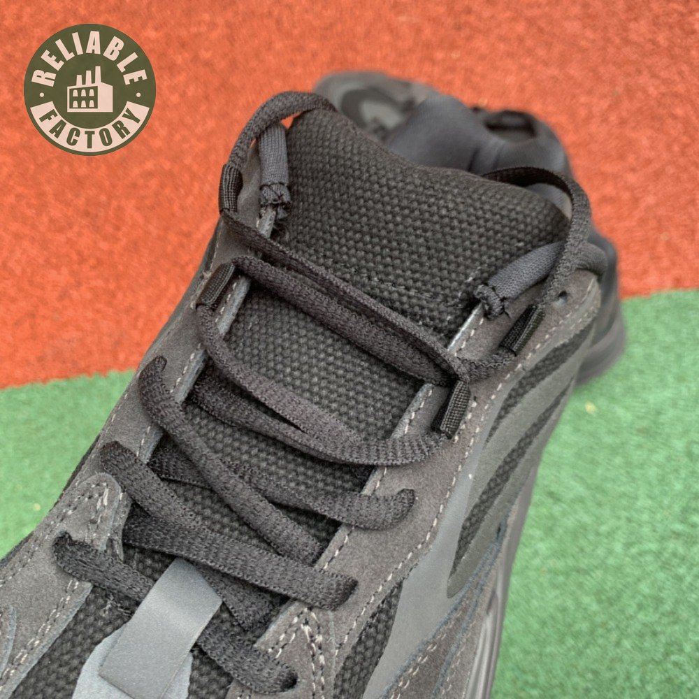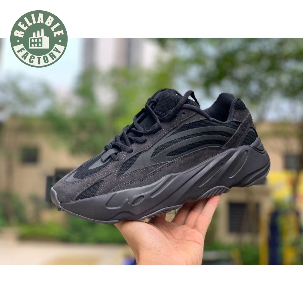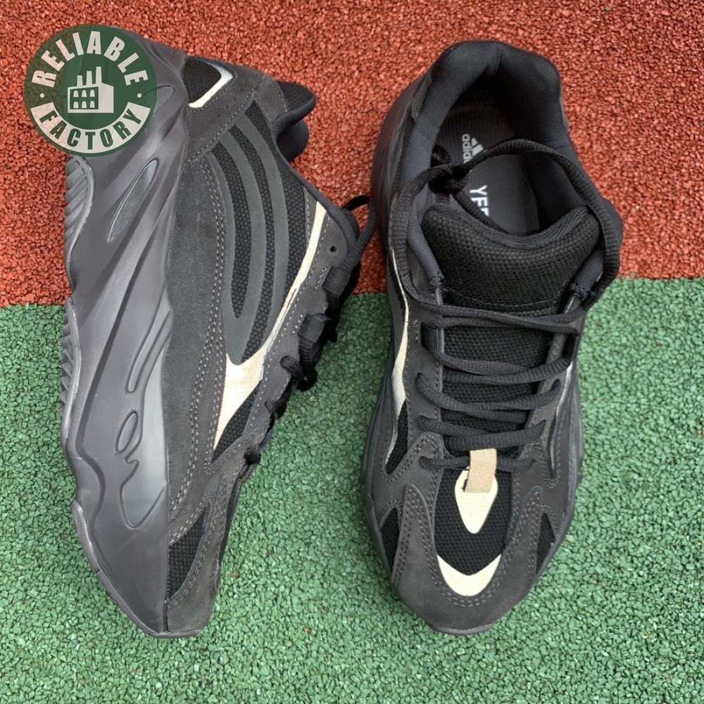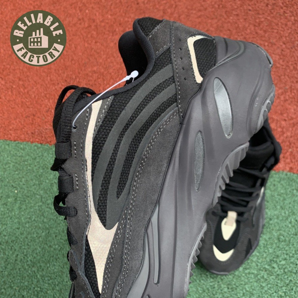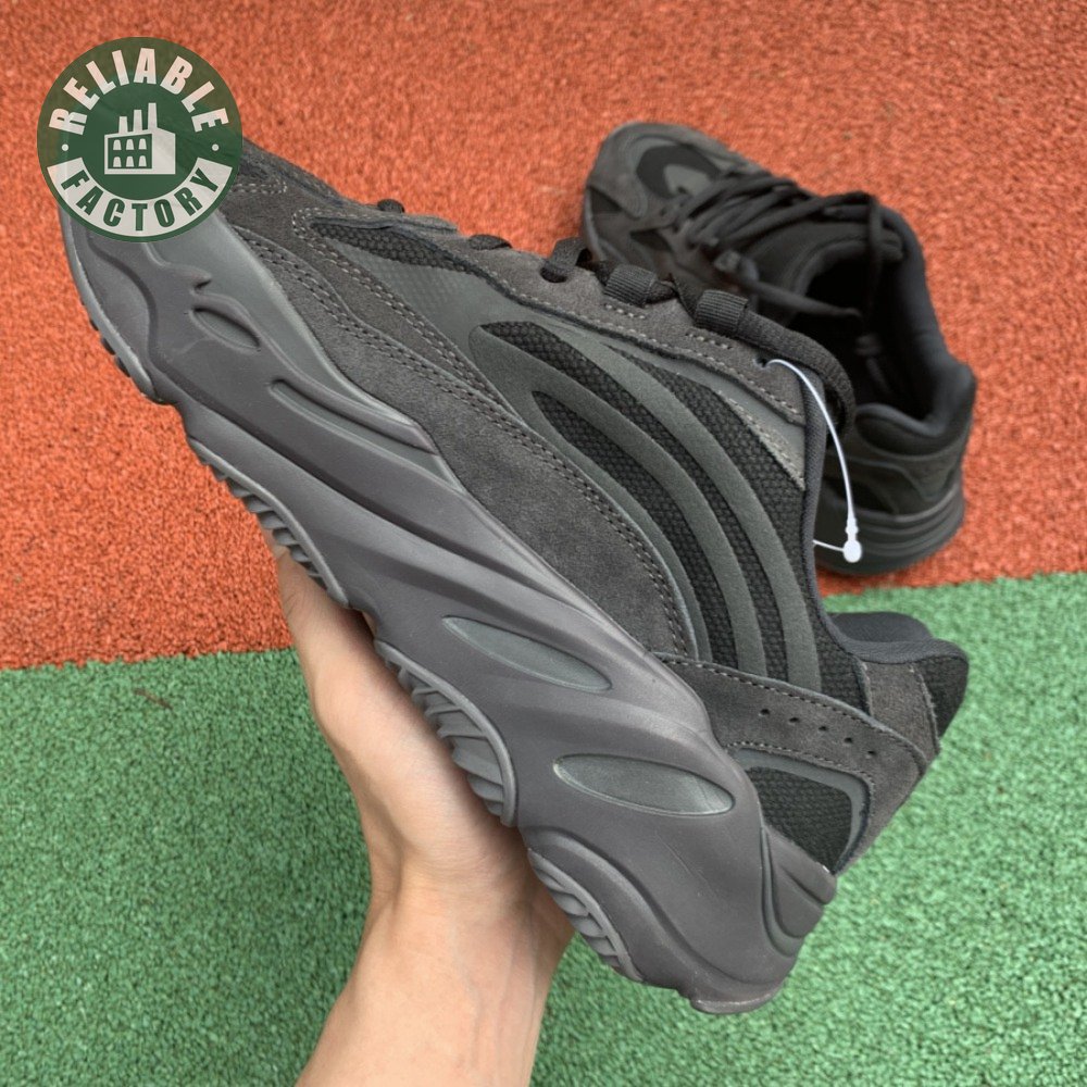 Seen as the successor to the first Yeezy 700 that debuted at Kanye West"s 2017 Yeezy Season 5 show, the Yeezy Boost 700 V2 sneaker maintains elements of the original while updating it with a sleeker profile. Released in June 2019, the 'Vanta' edition brings an all-over black hue to its multi-layered mesh upper with suede overlays. Below, full-length adidas Boost technology cushions the foot, encapsulated within the 700's distinct chunky sole.