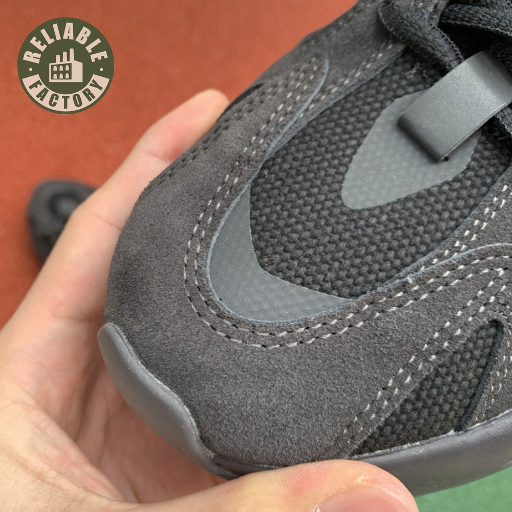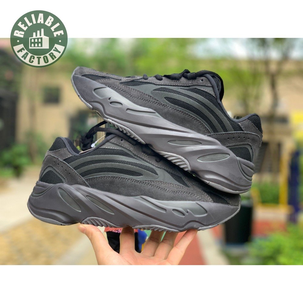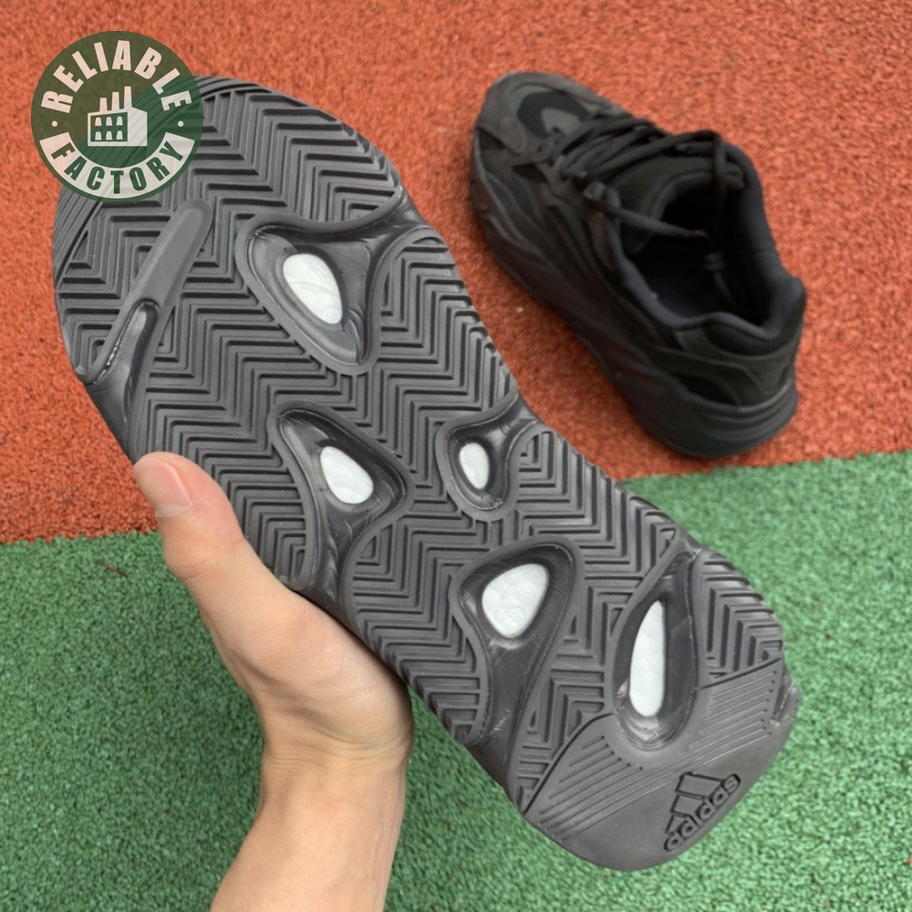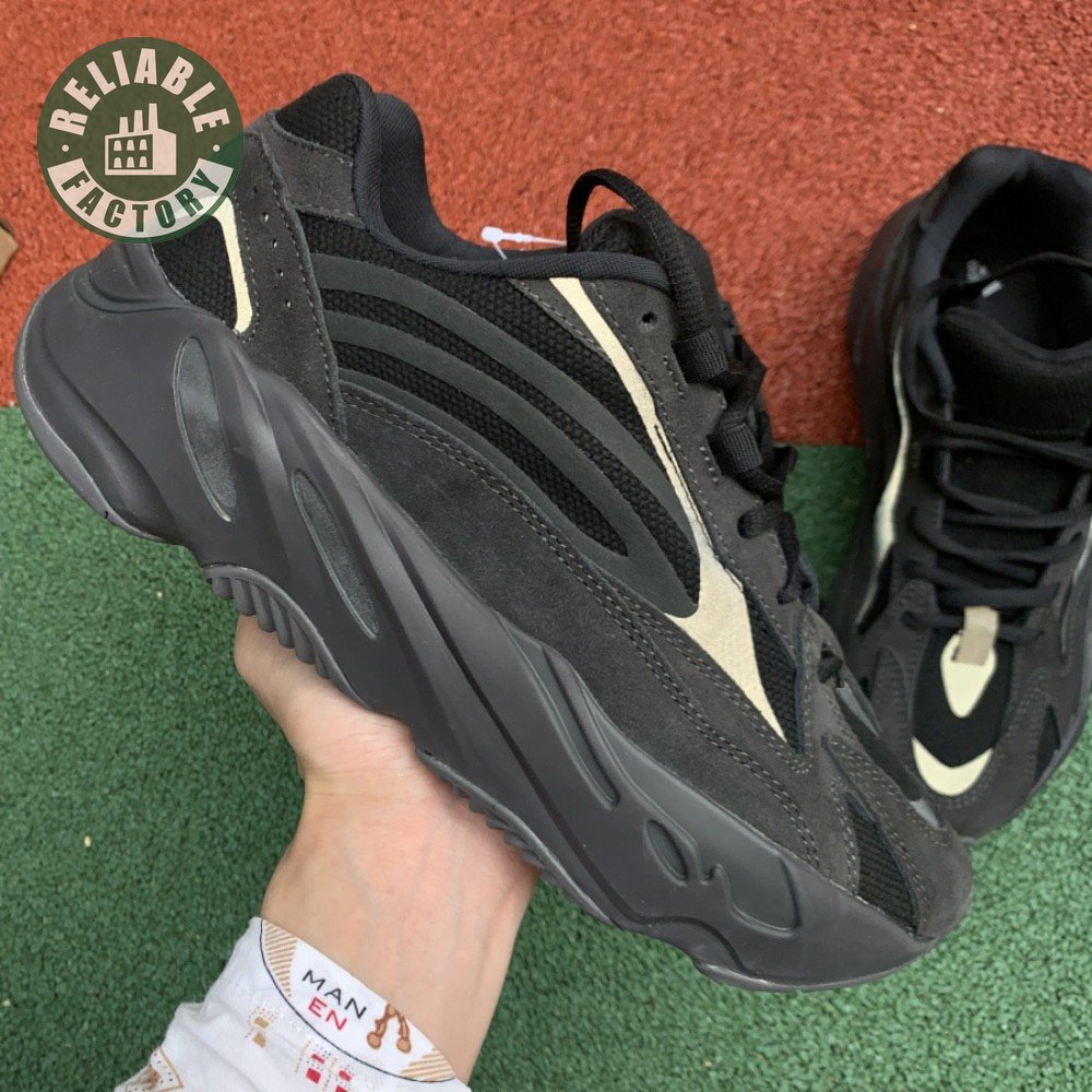 Seen as the successor to the first Yeezy 700 that debuted at Kanye West"s 2017 Yeezy Season 5 show, the Yeezy Boost 700 V2 sneaker maintains elements of the original while updating it with a sleeker profile. Released in June 2019, the 'Vanta' edition brings an all-over black hue to its multi-layered mesh upper with suede overlays. Below, full-length adidas Boost technology cushions the foot, encapsulated within the 700's distinct chunky sole.