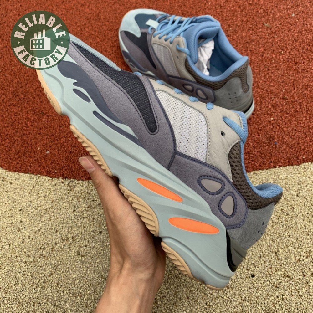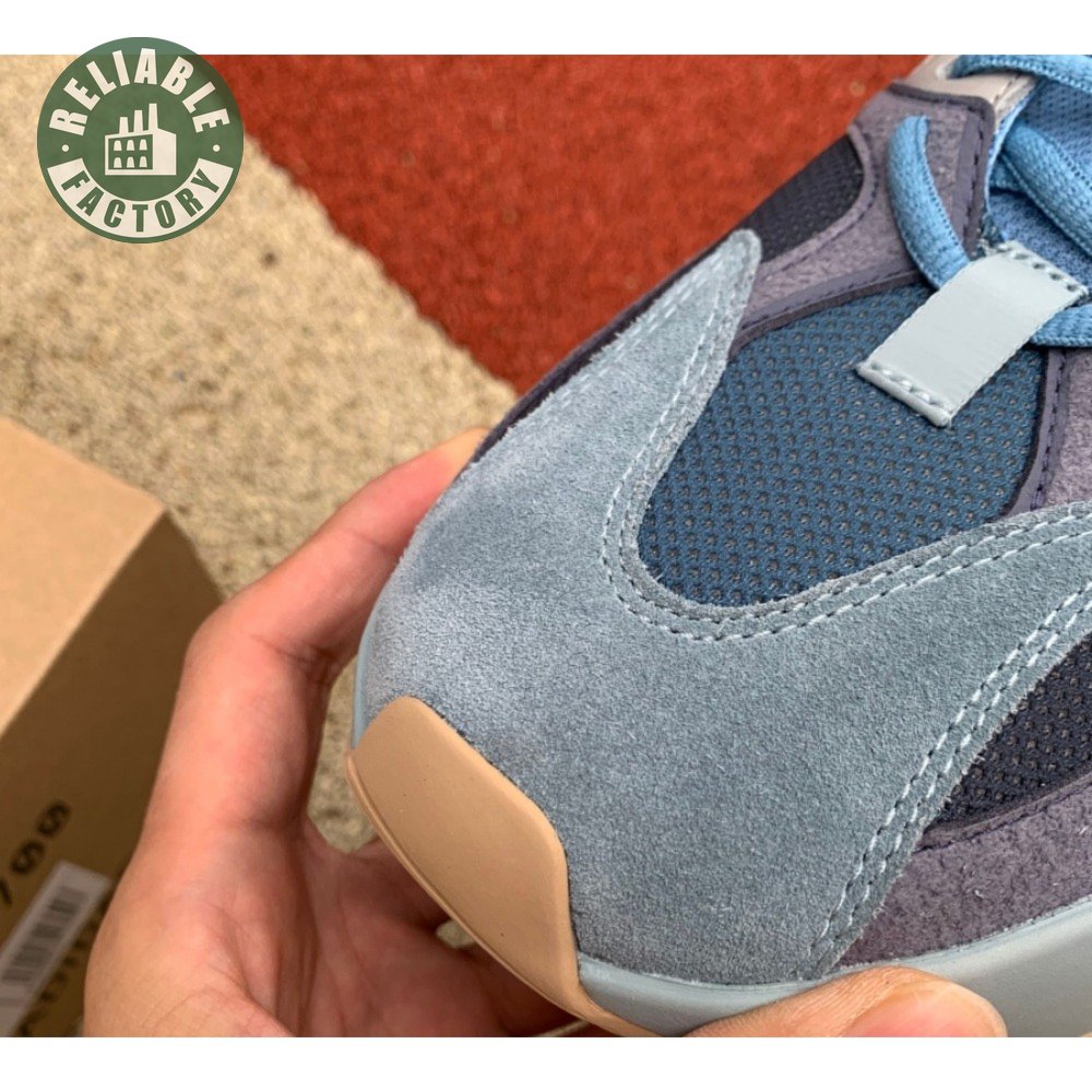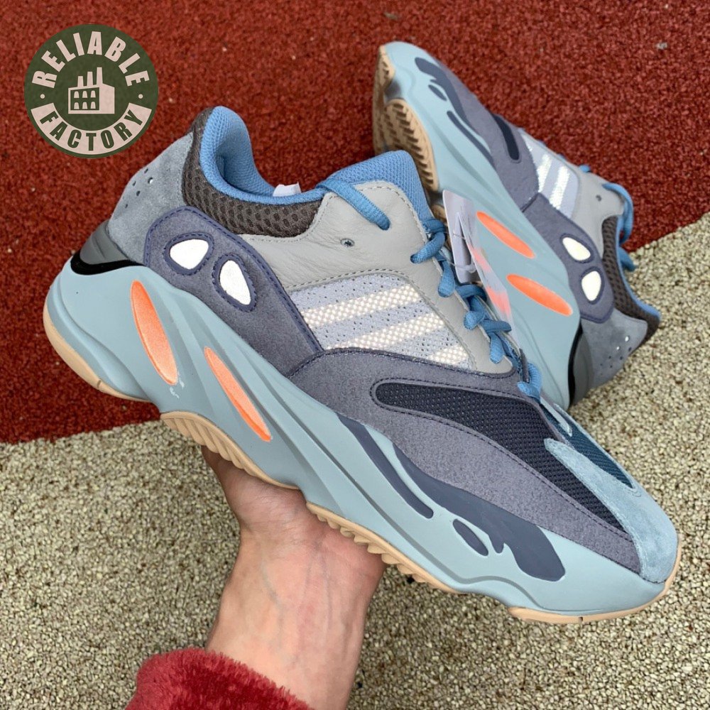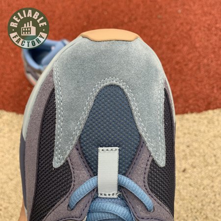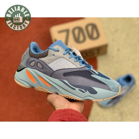 The adidas Yeezy Boost 700 'Carbon Blue' is a study of tonality inspired by previous 700 models. Debuted in December 2019, the sneaker is presented with a muted blue scheme across the upper's suede and nubuck panels with the tongue and laces in a bright tint. Grey tones for the mesh collar, perforated heel panel and leather eyestays anchor the palette. A sculpted midsole housing full-length Boost, with defined pops of color and dual-tone rubber outsole finish it off.