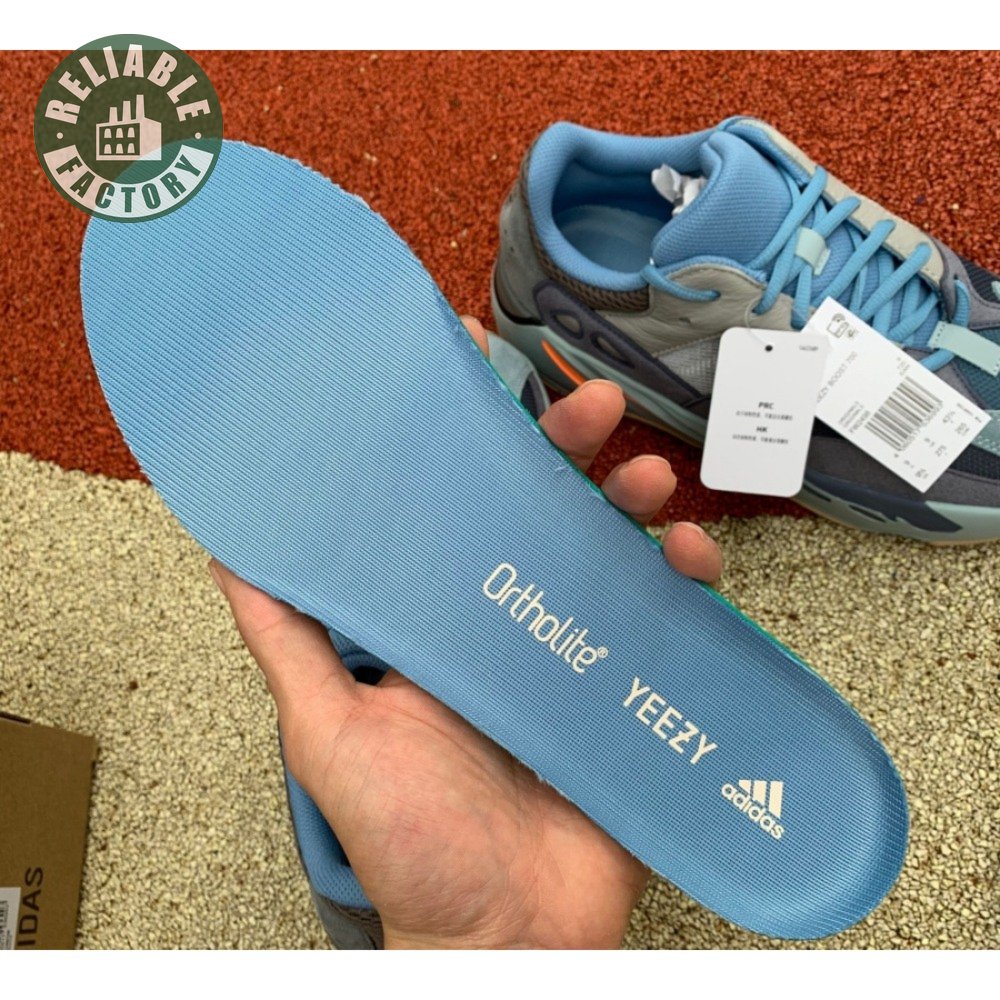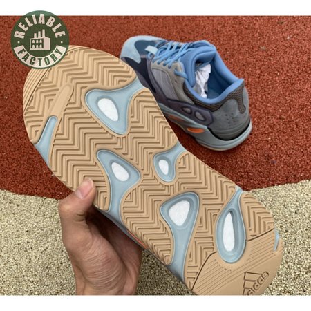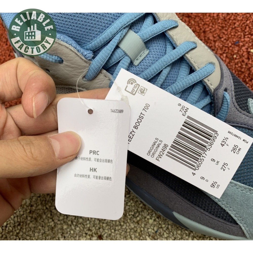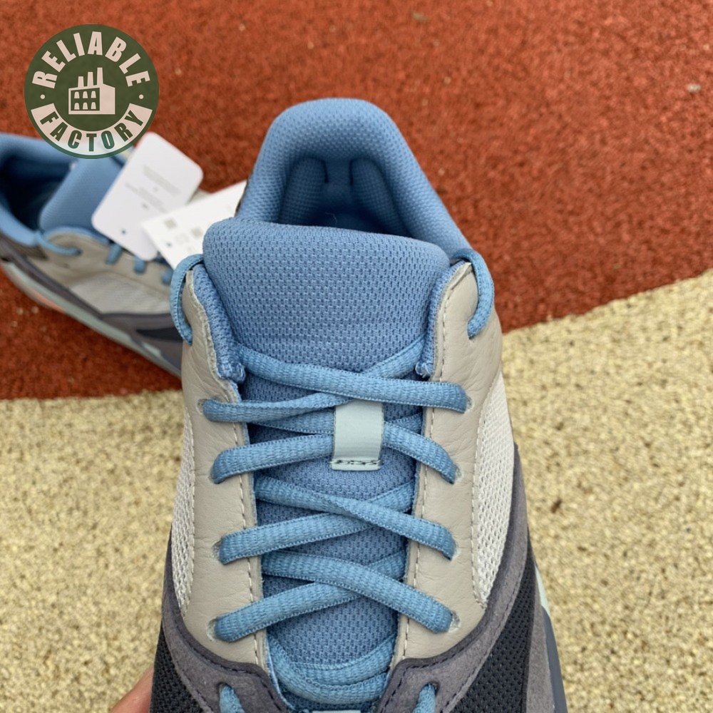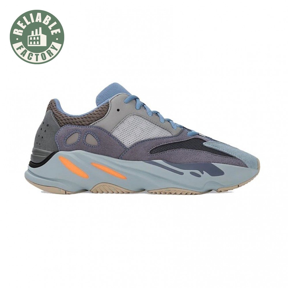 The adidas Yeezy Boost 700 'Carbon Blue' is a study of tonality inspired by previous 700 models. Debuted in December 2019, the sneaker is presented with a muted blue scheme across the upper's suede and nubuck panels with the tongue and laces in a bright tint. Grey tones for the mesh collar, perforated heel panel and leather eyestays anchor the palette. A sculpted midsole housing full-length Boost, with defined pops of color and dual-tone rubber outsole finish it off.