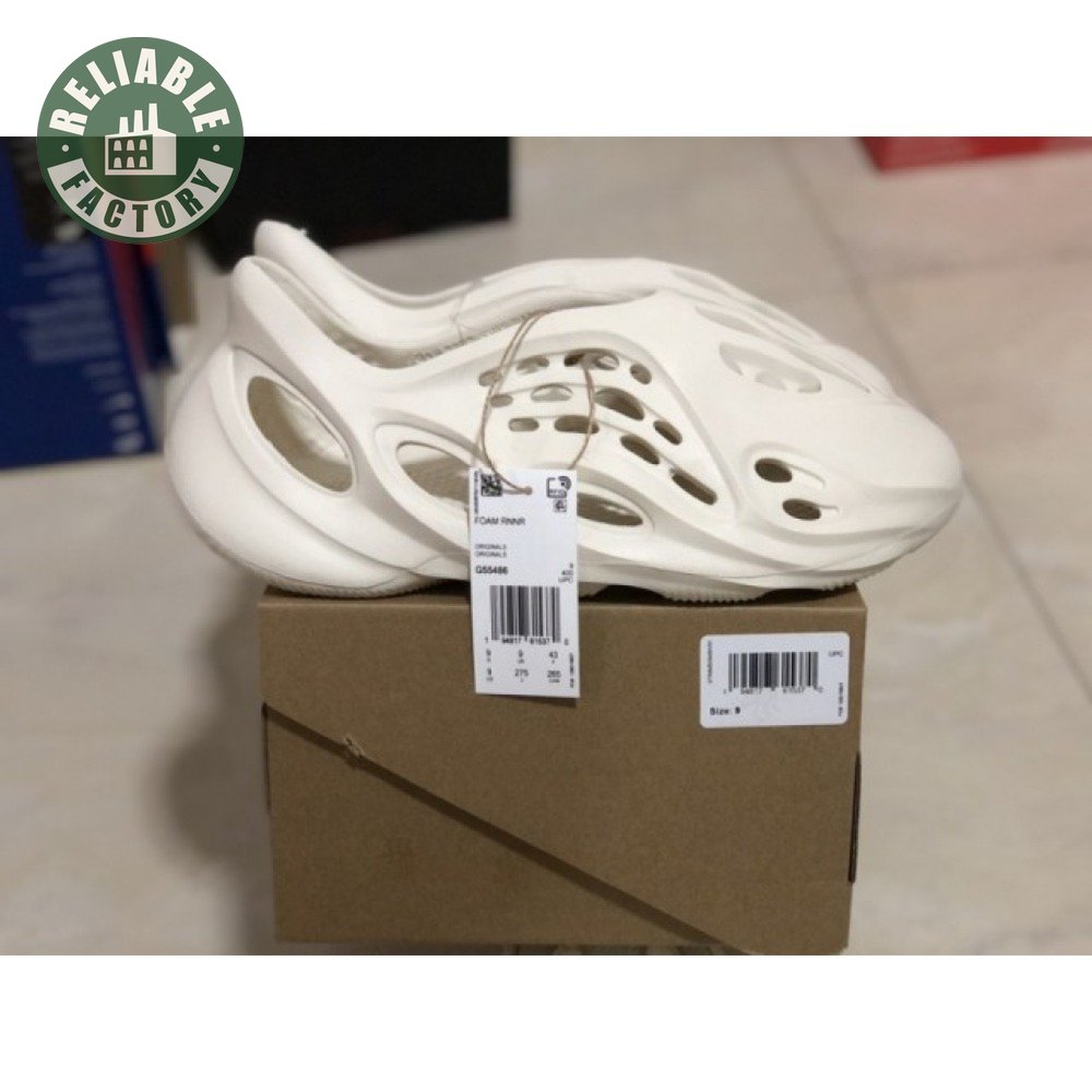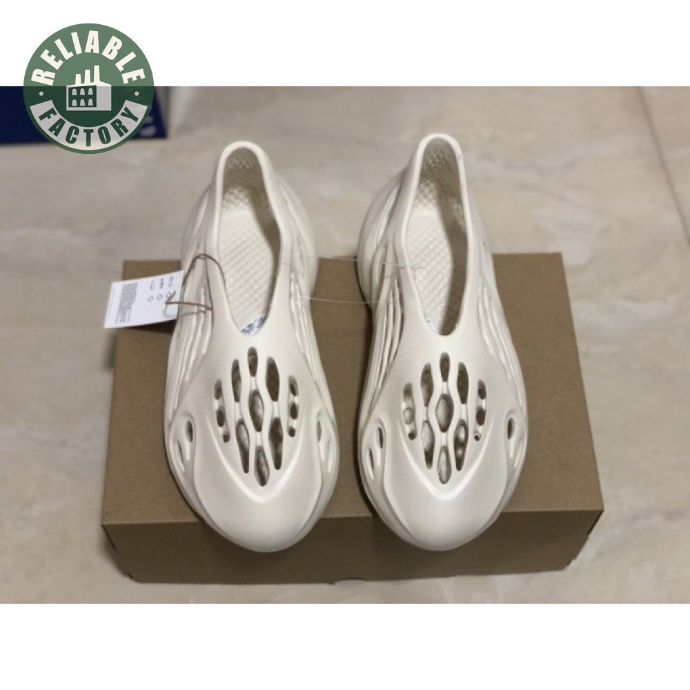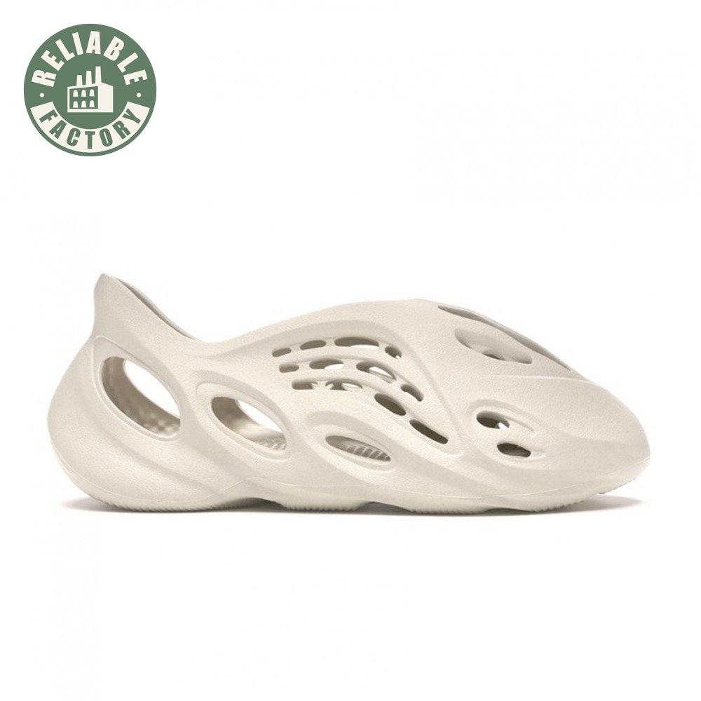 Debuting at London Fashion Week in February 2020, the Yeezy Foam Runner "Ararat" launched without warning the following June through Kanye West"s Yeezy Supply website. The molded slip-on is constructed from a unique foam compound that blends lightweight EVA with harvested algae. Sculpted lines and a neutral monochromatic finish promote a streamlined, futuristic aesthetic, while a series of oval cut-outs enable airflow for ventilated comfort.