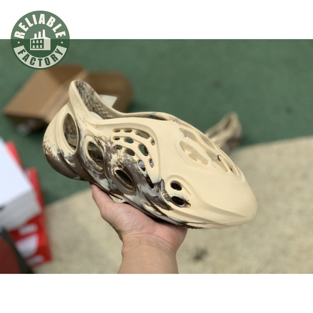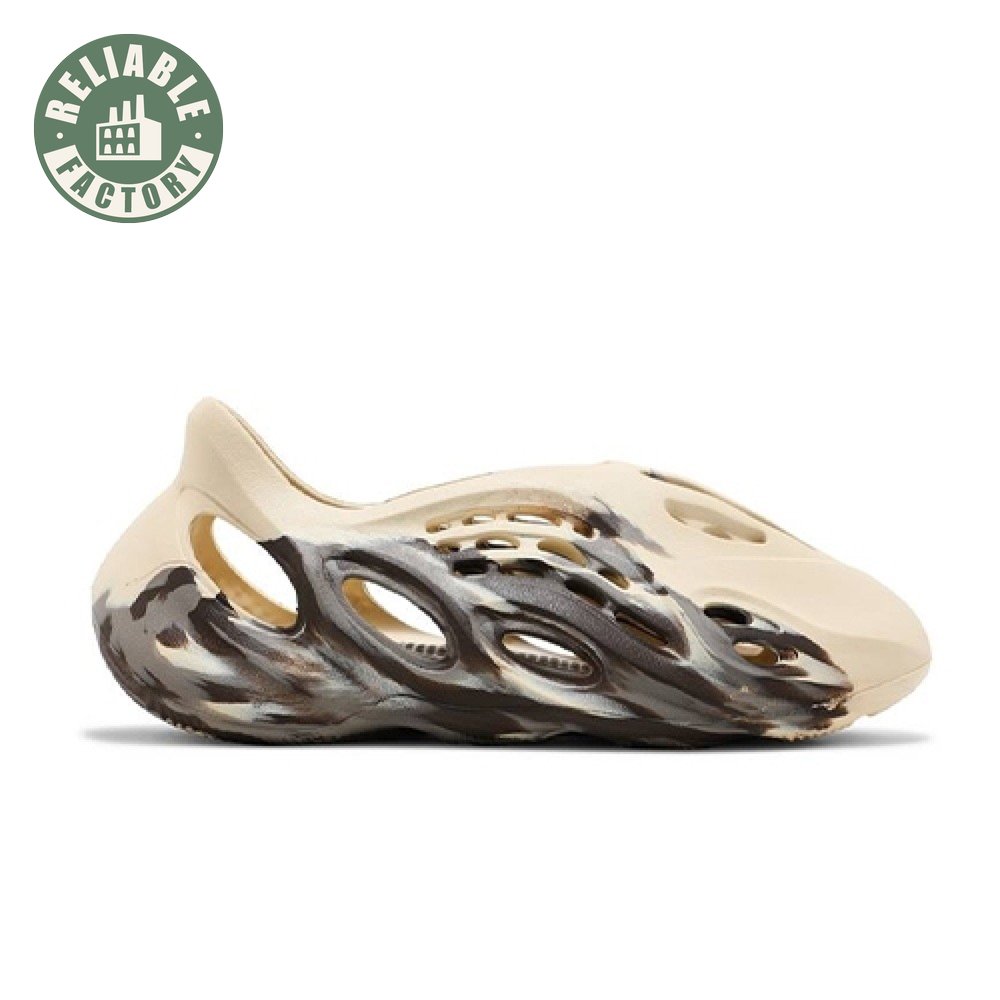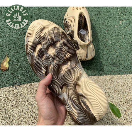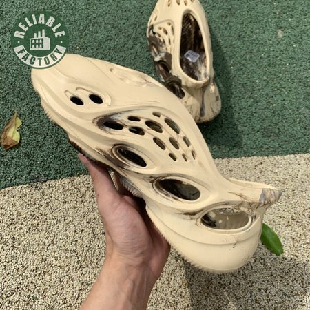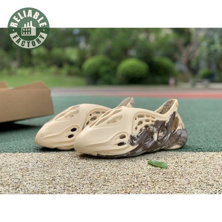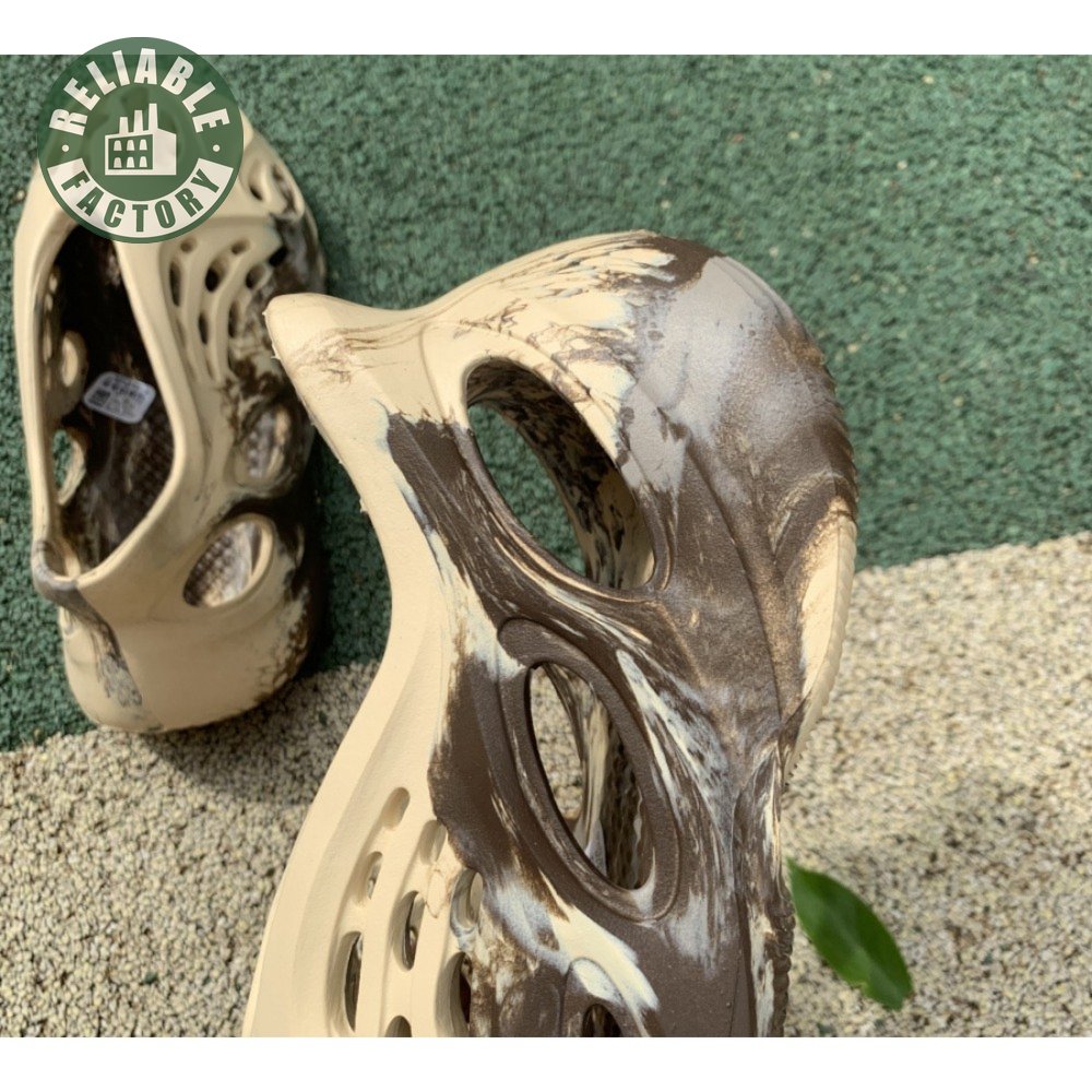 The adidas Yeezy Foam Runner "MX Cream Clay" enlivens Kanye West"s amphibious slip-on with a swirling blend of brown and grey. The neutral hues appear to have been painted on the surface of the cream-colored one-piece upper, crafted from a combination of lightweight EVA and hydroponically produced algae. Ventilation ports of varying sizes ensure breathable comfort, while the sculpted design keeps the foot locked in place.