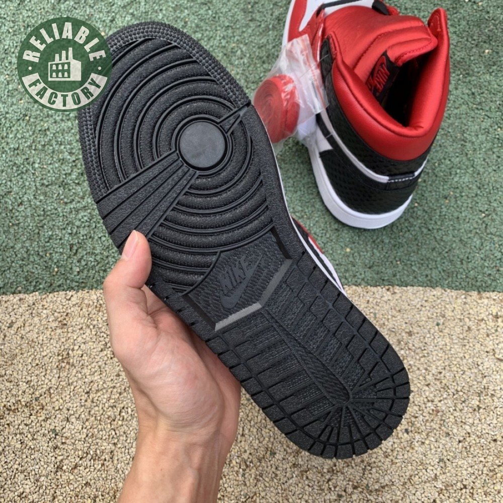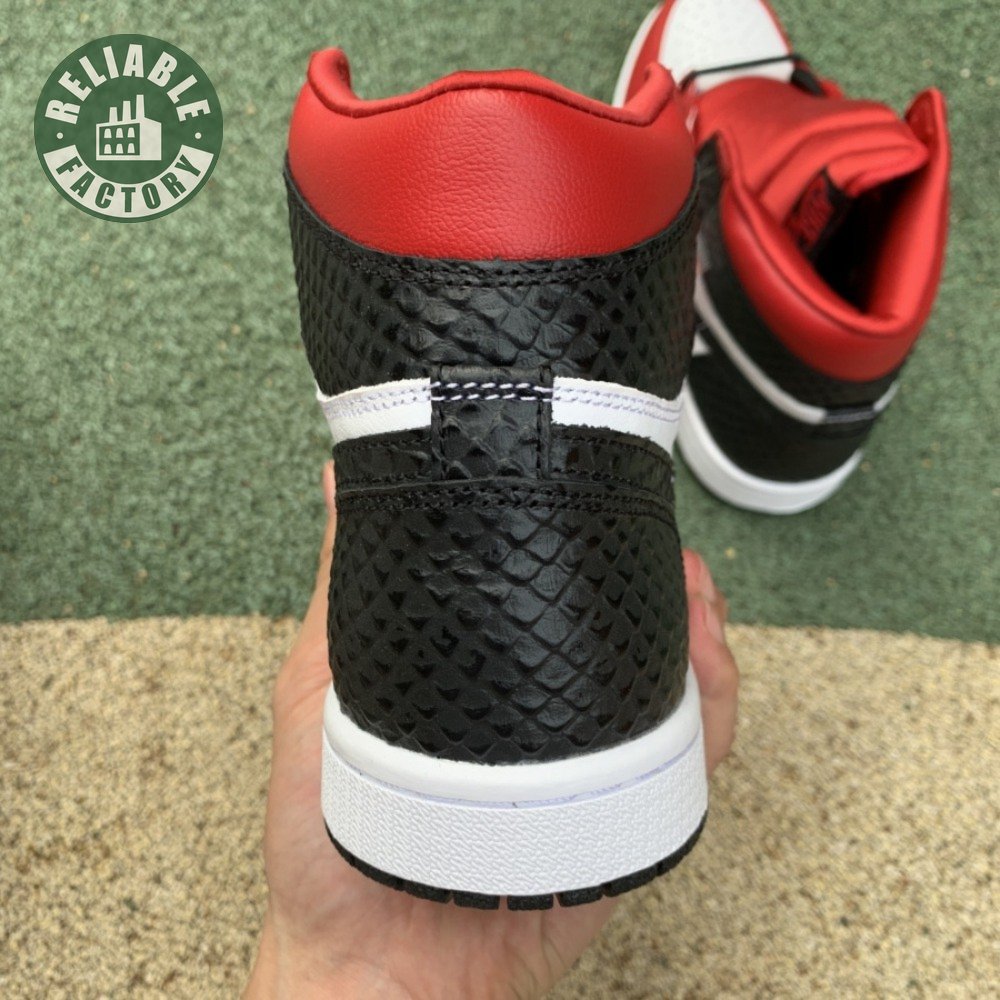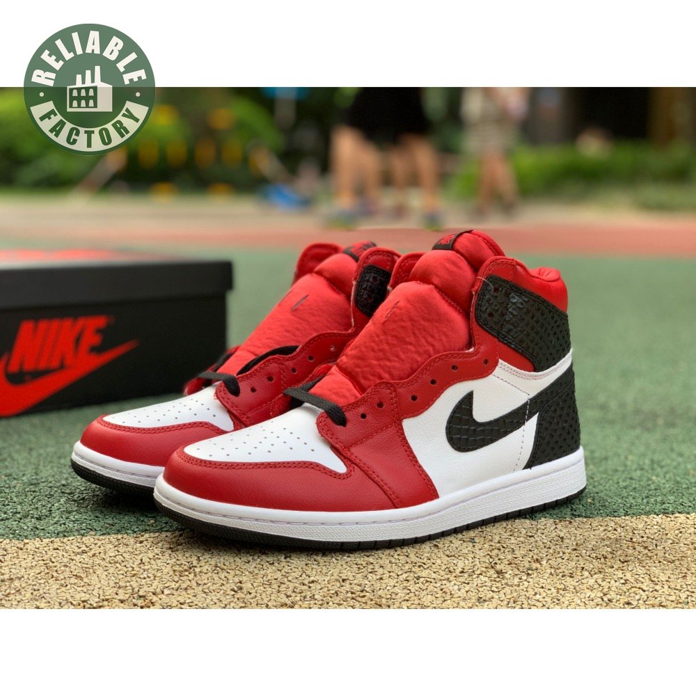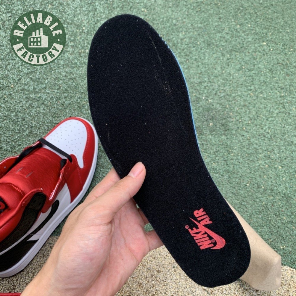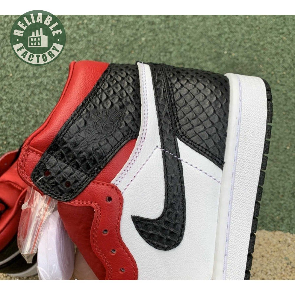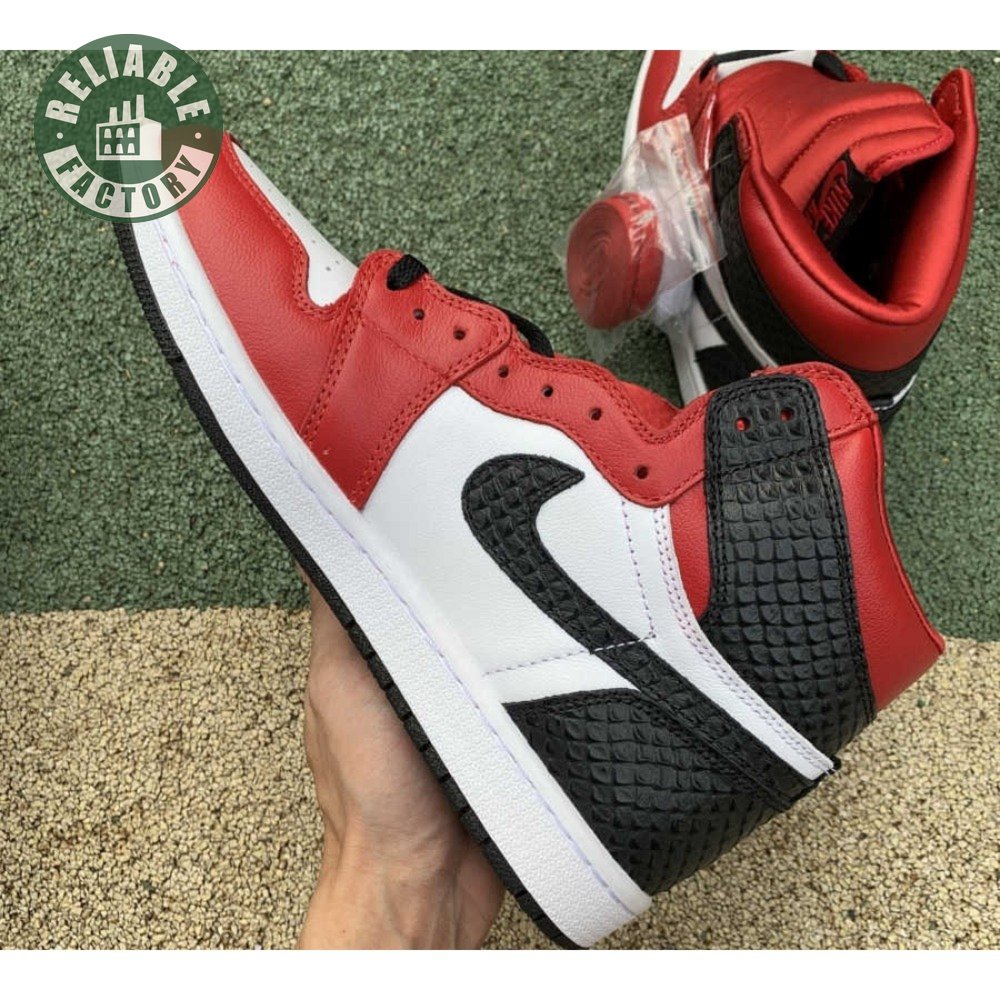 The women"s Air Jordan 1 Retro High OG "Satin Red" is the sequel to the women"s "Satin Black Toe" release from 2019. This pair features the same Chicago-based palette as its predecessor but the color blocking is flipped, so that the forefoot is finished in red and the heel and collar overlays are rendered in basic black. The latter two components " along with the Swoosh " are embellished with a snakeskin texture, while satin is utilized on the tongue and interior lining.