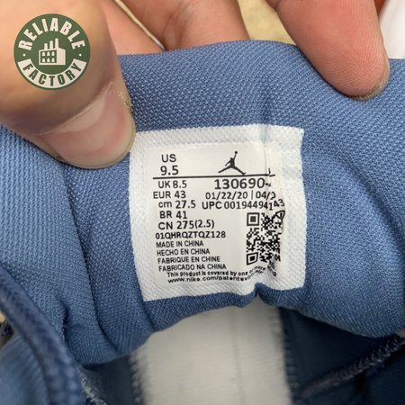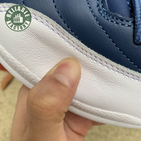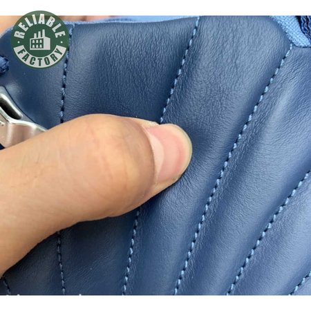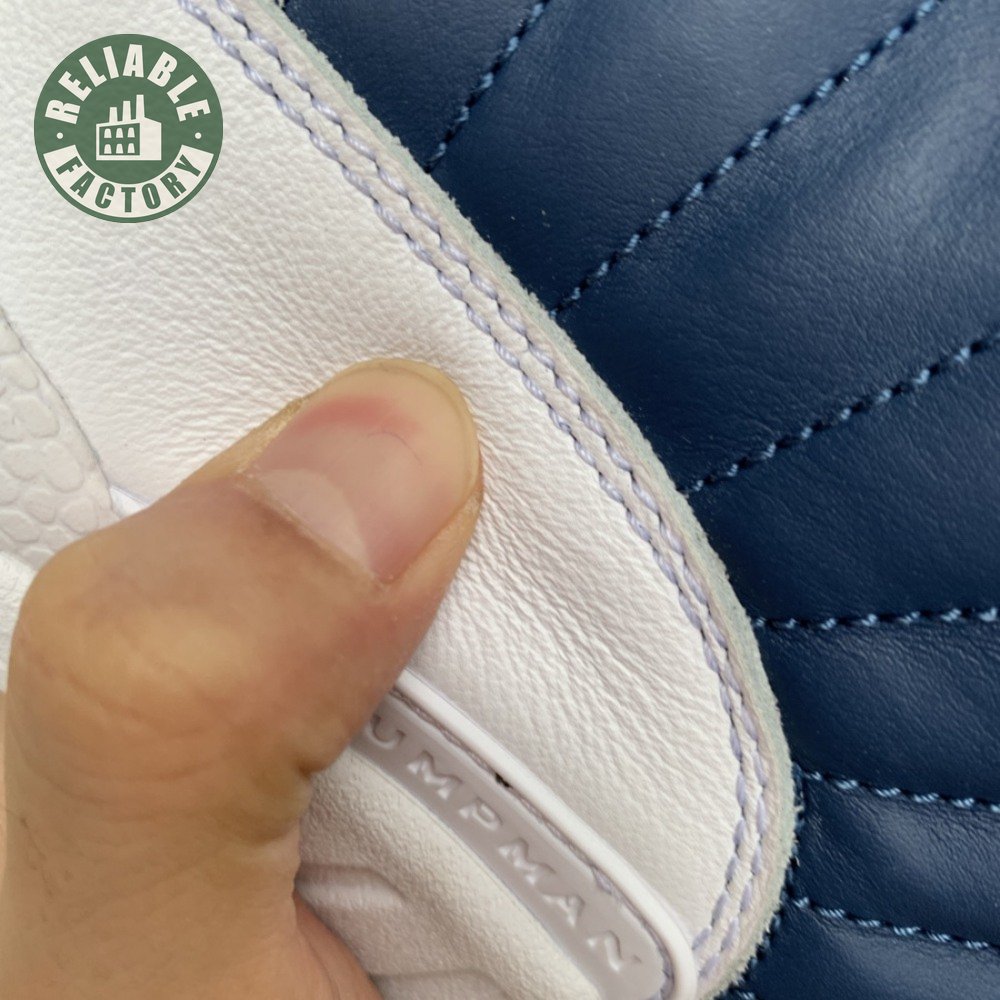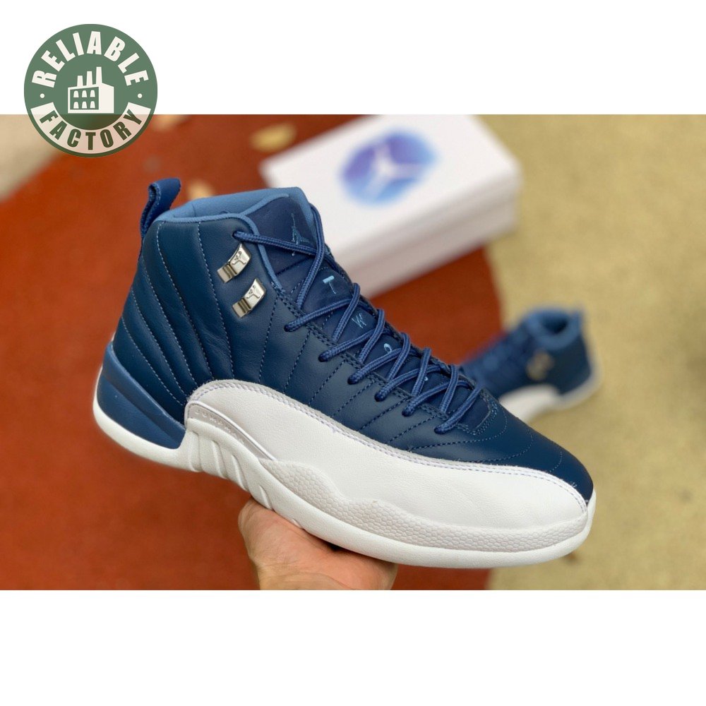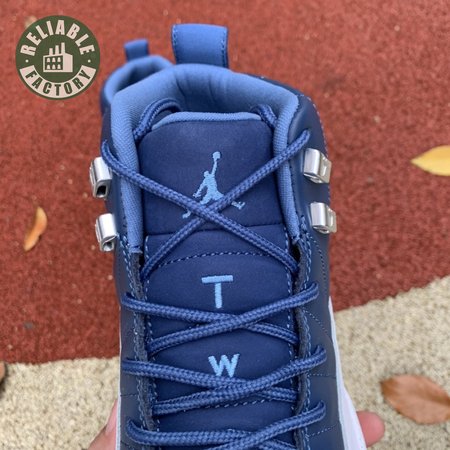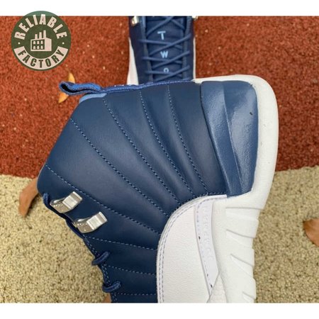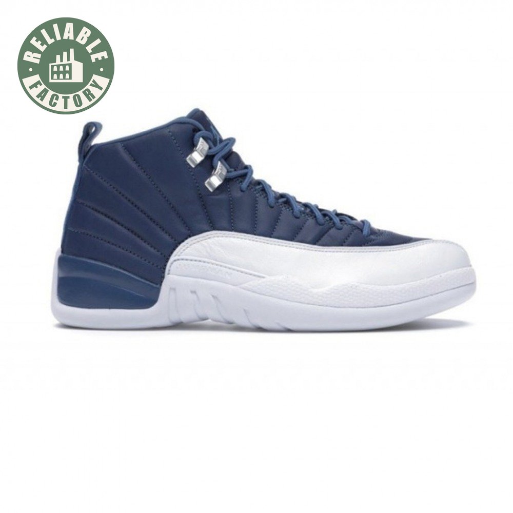 The Air Jordan 12 Retro "Indigo" delivers a simple two-tone colorway of the classic silhouette. The upper makes use of stitched leather in a straightforward indigo hue, accented with a smooth leather mudguard in white. A lighter shade of Legend Blue appears on the heel tab and embroidered Jumpman atop the tongue. The silhouette"s subtle lizard texture is limited to the midsole, reinforced by a herringbone rubber outsole and a carbon fiber shank.