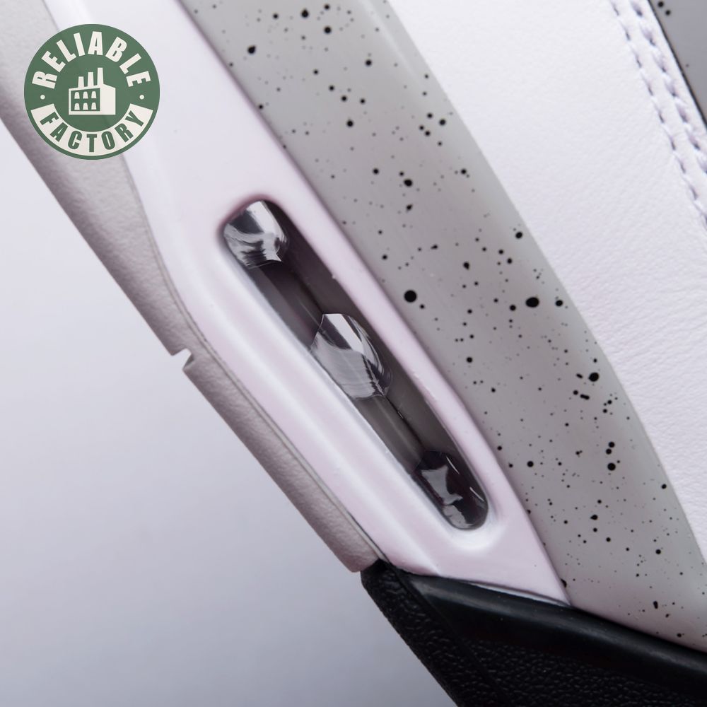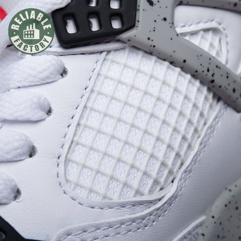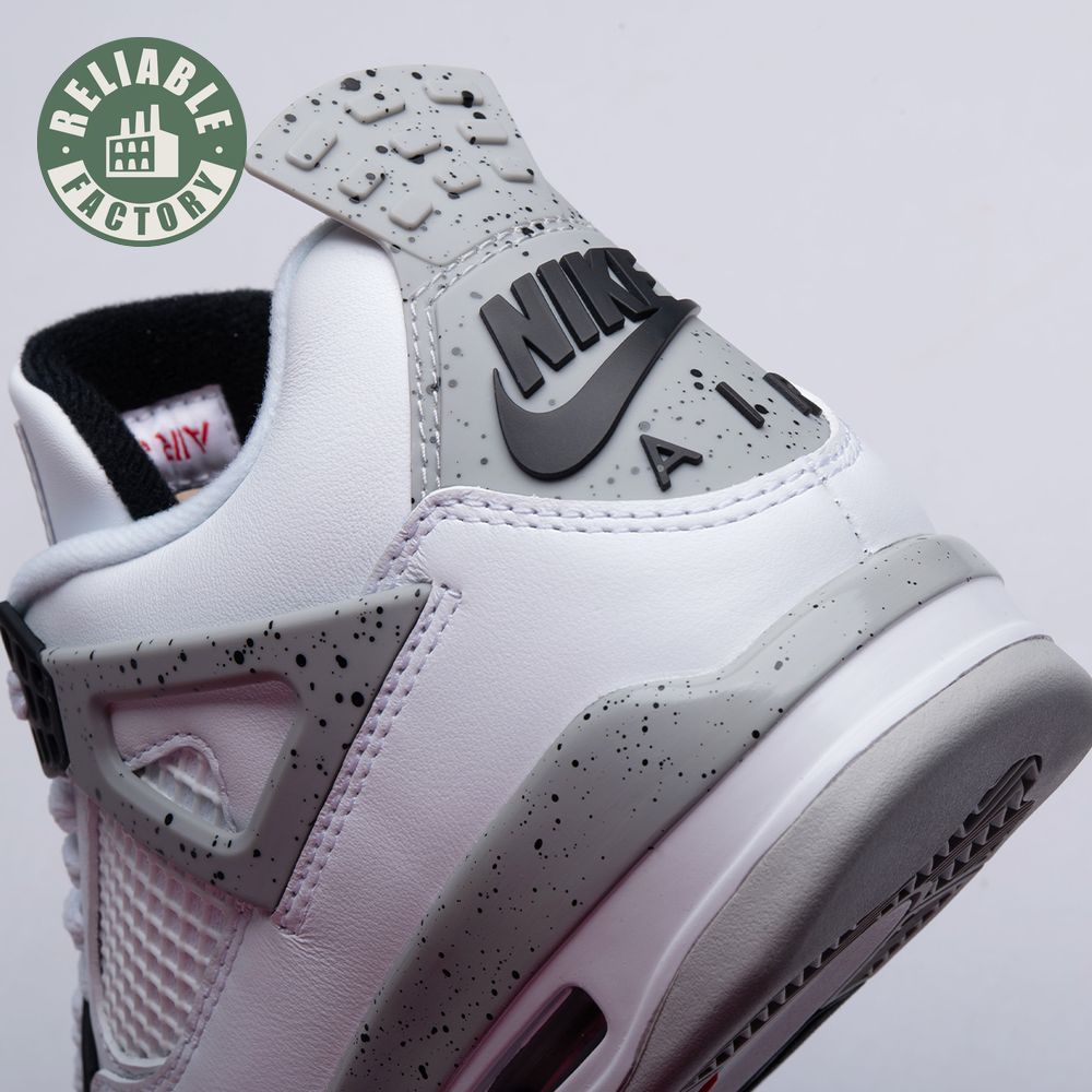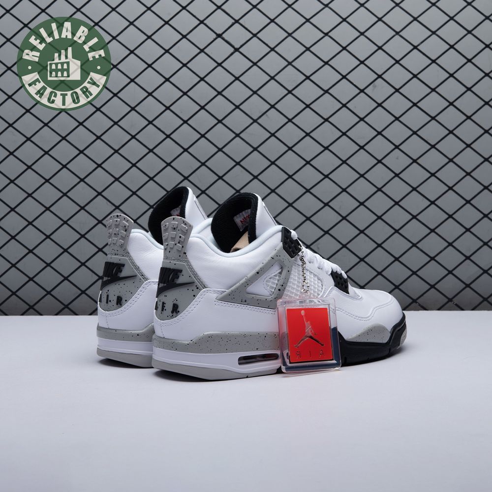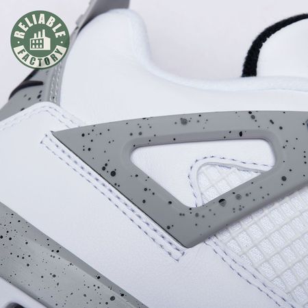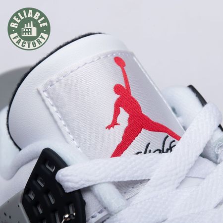 The Air Jordan 4 Retro 'Cement'combines a white leather upper with Fire Red, Black, and speckled Cement Grey accents. Released in 1989 as one of the four original colorways, the sneaker was retro"d in 1999 and 2016, but this 2012 Air Jordan 4 Retro 'Cement" is the only version that swaps the OG Nike Air branding for a Jumpman logo on the heel.