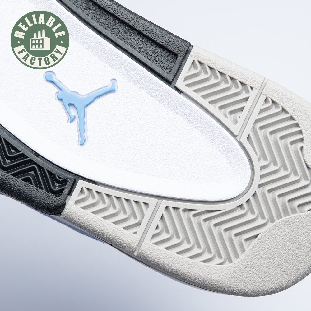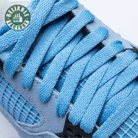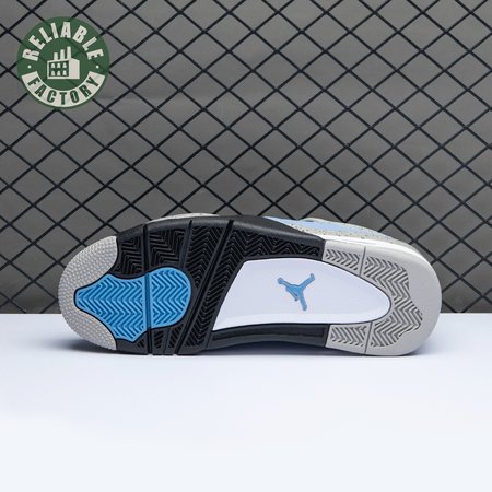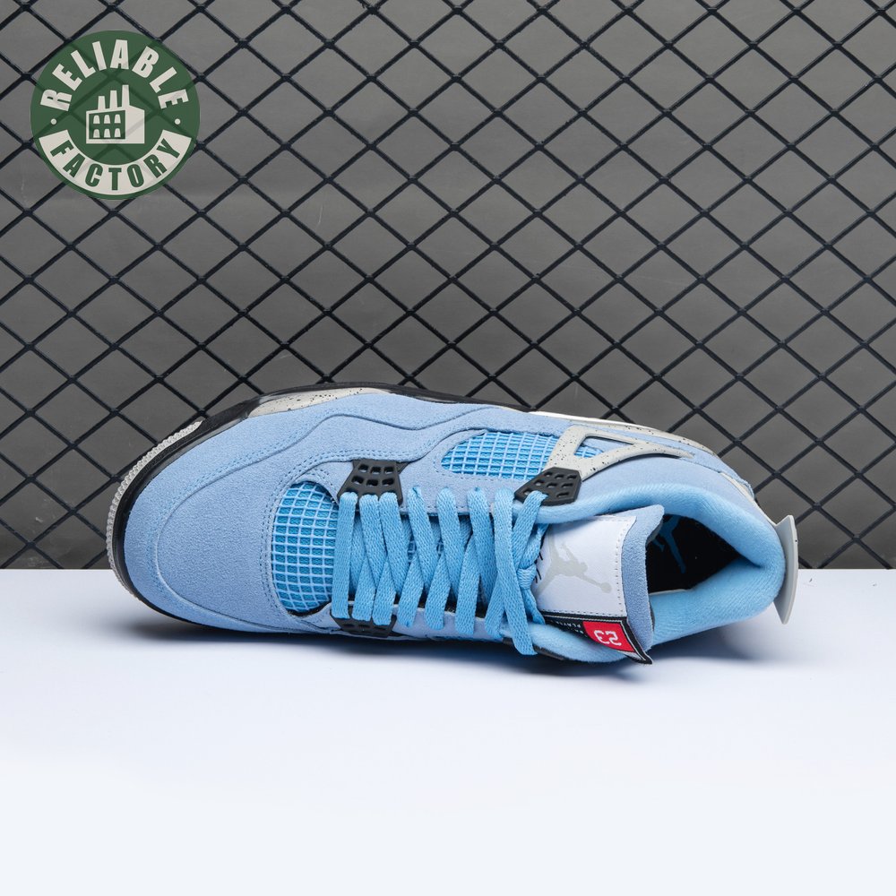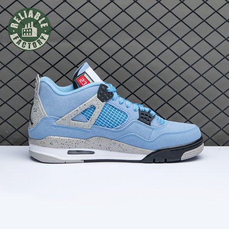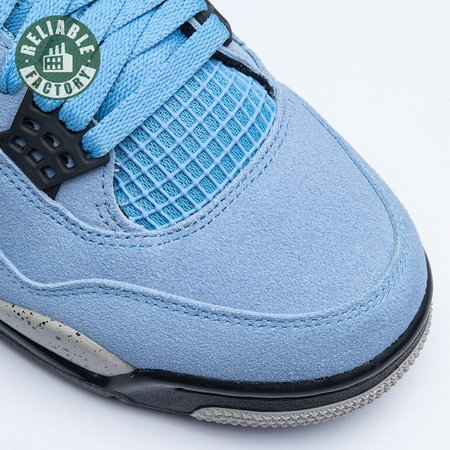 The Air Jordan 4 Retro "University Blue" updates the classic silhouette with a suede upper in a familiar hue inspired by Michael Jordan"s UNC alma mater. The bright blue palette is contrasted by a speckled grey finish on the sneaker"s supportive wings and back heel, featuring a raised Jumpman icon in black. Secondary Jumpman branding adorns the woven tongue tag, designed to mimic a jock tag that typically appears on the bottom hem of Jordan jerseys.