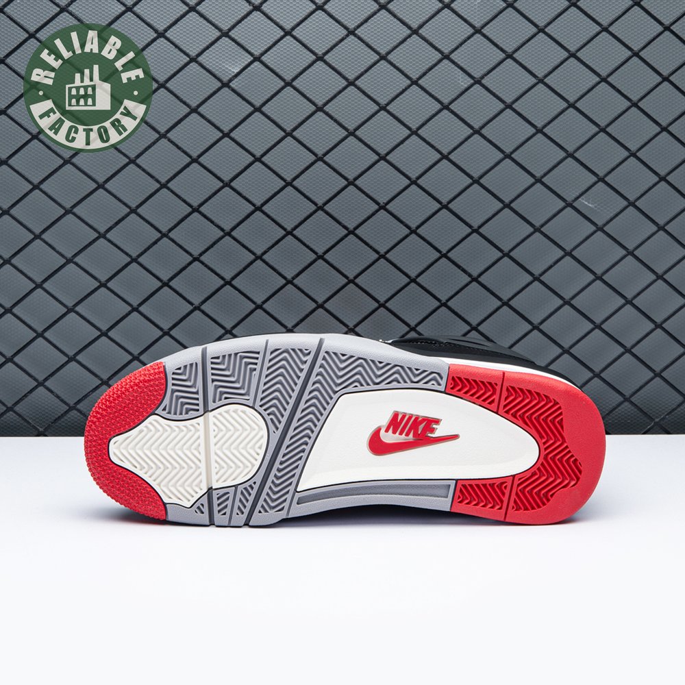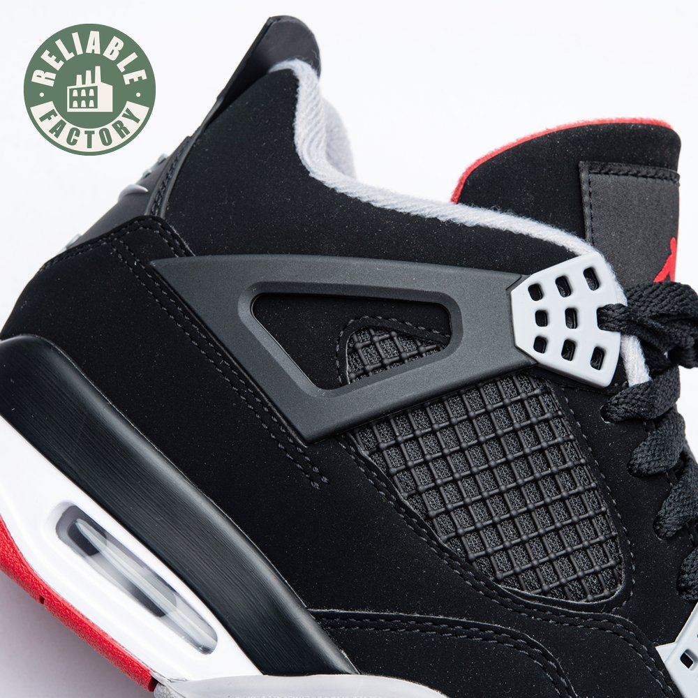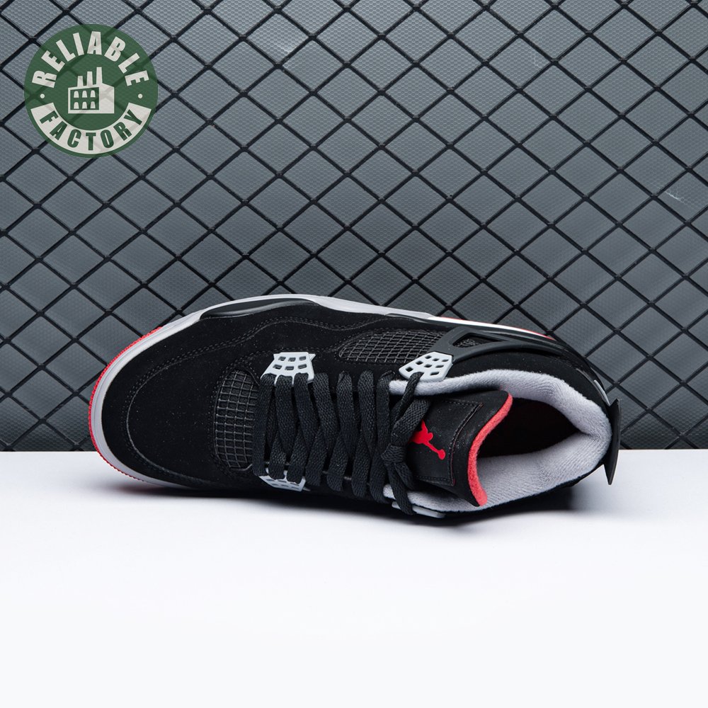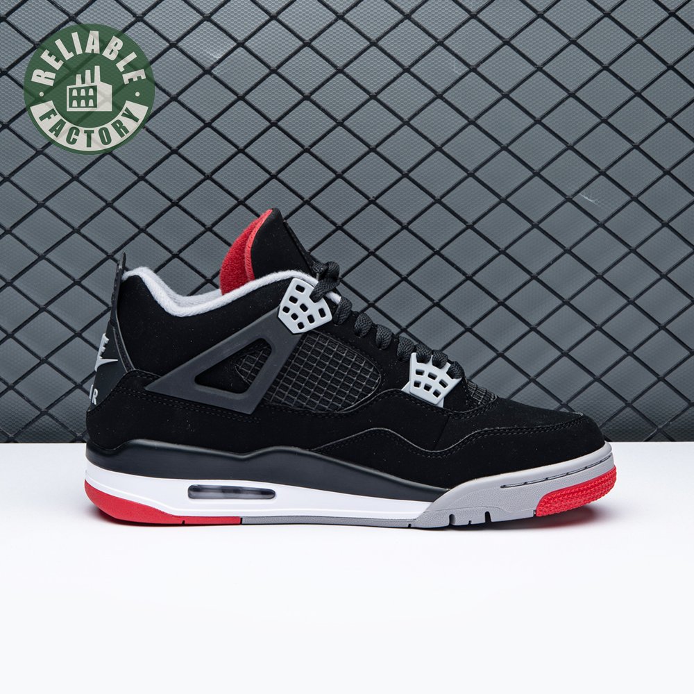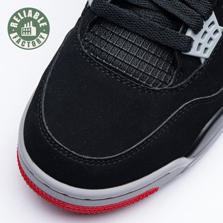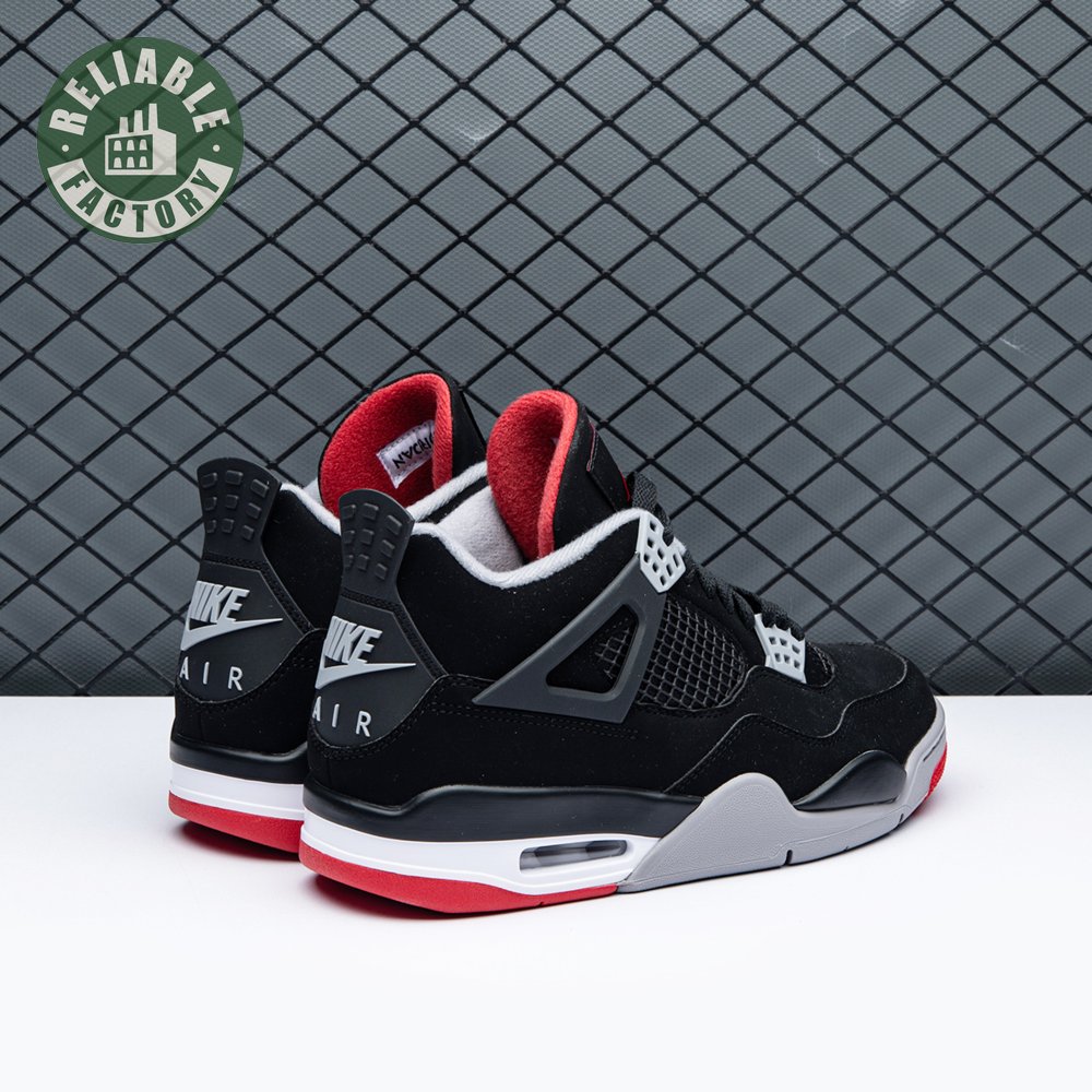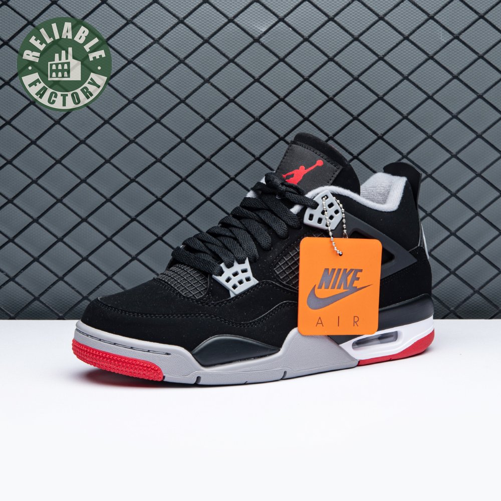 The 2019 edition of the Air Jordan 4 "Bred" celebrates the 30th anniversary of the classic silhouette, appearing in the same colorway that Michael Jordan wore when he sank "The Shot" during the first round of the 1989 NBA playoffs. It"s rendered in a build that"s faithful to the original, complete with a black nubuck upper, visible Air Sole cushioning underfoot and Nike Air branding on the heel.
