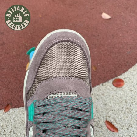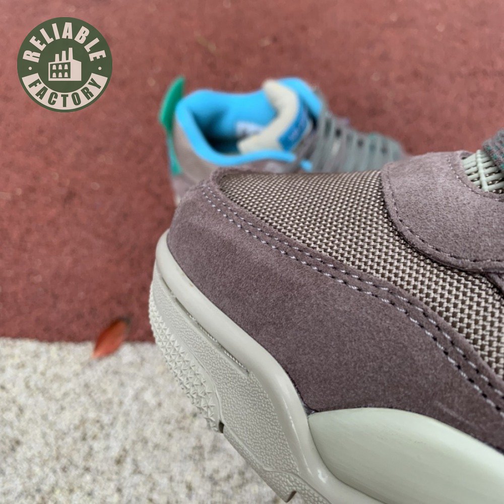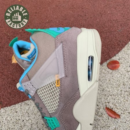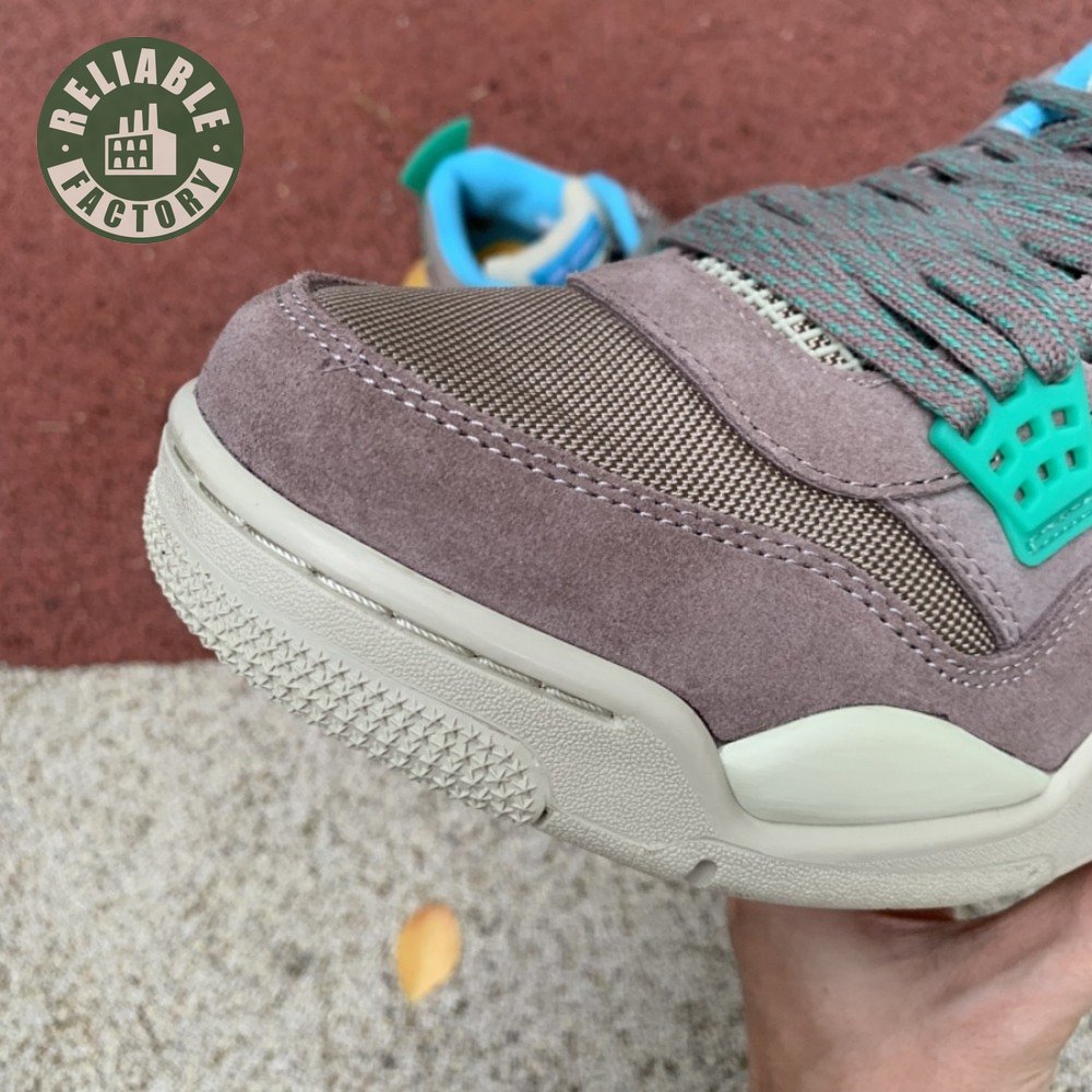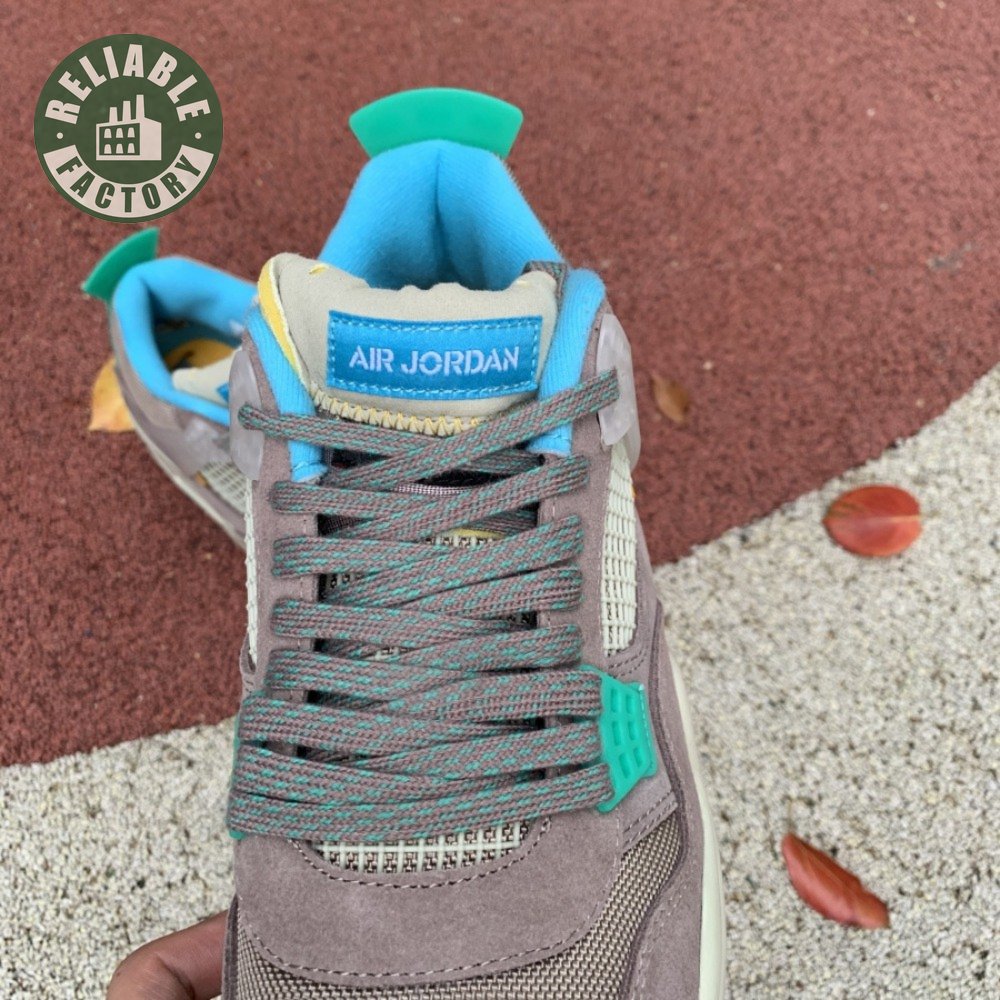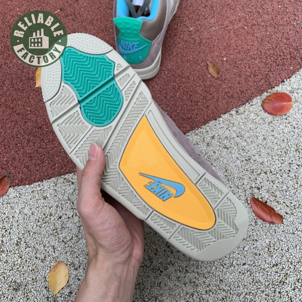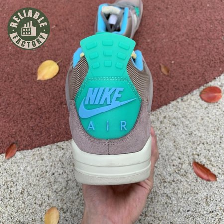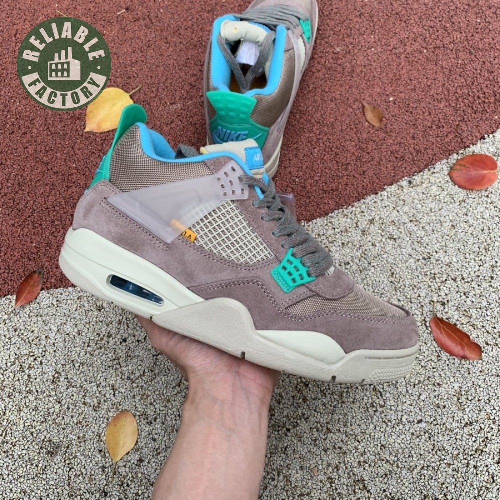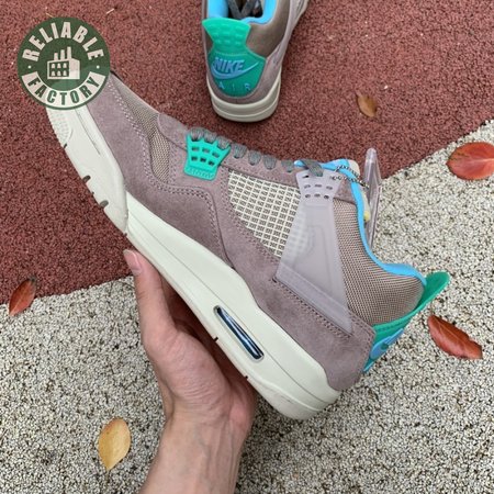 The Union LA x Air Jordan 4 Retro "Taupe Haze" reunites Jordan Brand with the influential retailer as part of the latter"s 30th anniversary celebration. Featuring the same reimagined build the creative partners unveiled in 2020, the mid-top is exclusive to Union and drawn from a capsule " titled "Tent and Trail" " inspired by outdoor gear from the"80s and "90s. A neutral taupe hue is applied to the upper, crafted from a blend of breathable mesh and soft suede. Bright hits of Roma Green distinguish the lower molded eyelets and heel tab, embellished with a raised Nike Air logo in Blue Fury. The vibrant hue is repeated on the collar lining and stitched fold-down tongue, a holdover detail, along with translucent TPU wings and a yellow "UN/LA" tag, from the 2020 collaboration. Lightweight cushioning is provided by an off-white polyurethane midsole with an aqua-tinged Air-sole unit under the heel.