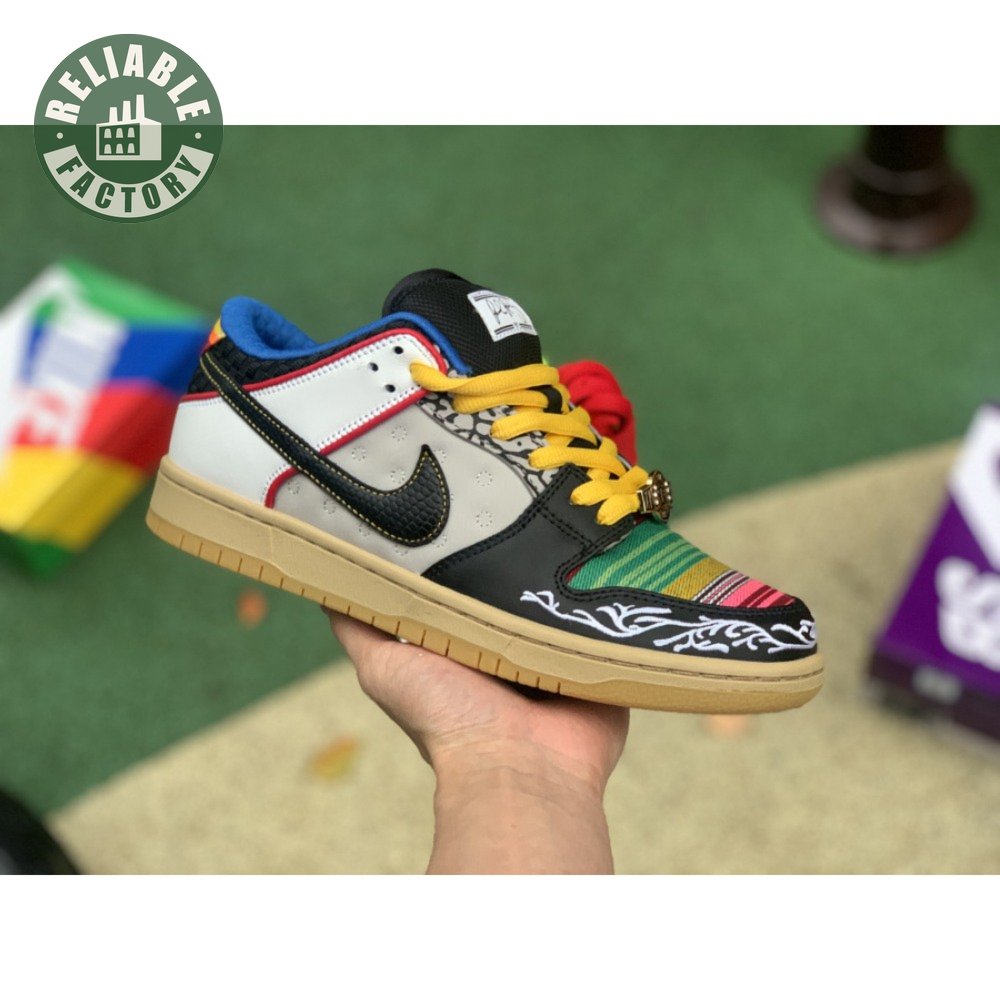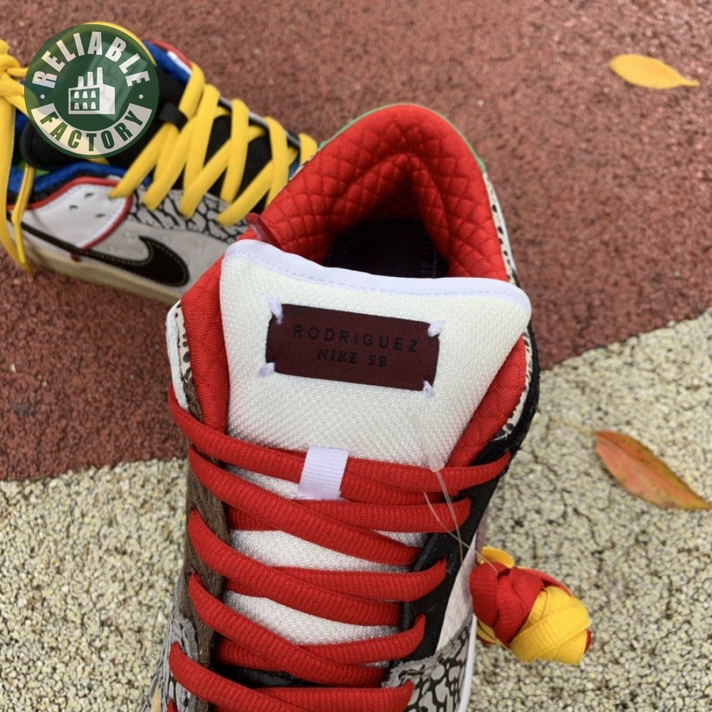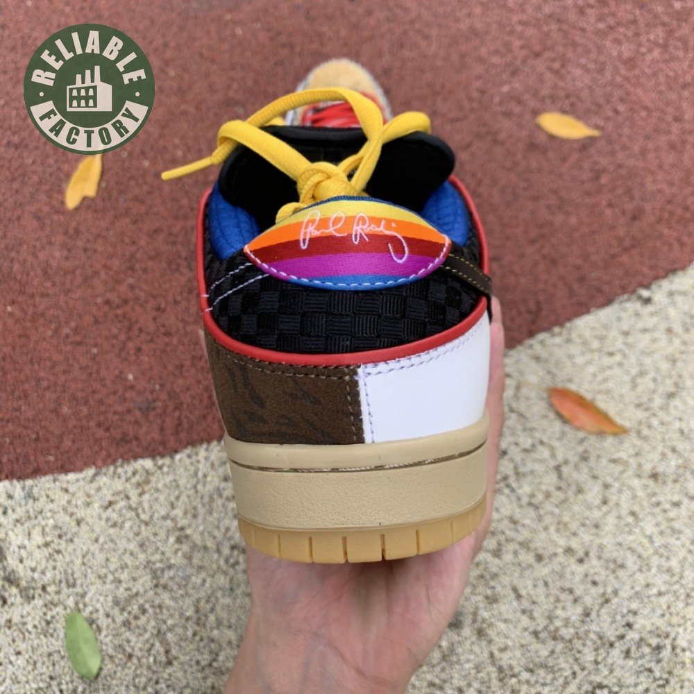 The Nike Dunk Low SB "What The Paul" celebrates the Swoosh"s longstanding partnership with Paul Rodriguez Jr., the first skateboarder to land his own signature Nike shoe. Each of the mismatched shoes is a greatest-hits medley featuring distinctive colors, textures and materials culled from P-Rod"s signature line. Multiple details are drawn from various colorways of the P-Rod 1, including the J-Rod"s elephant print overlays and toe boxes that reference the "Mexican Blanket" and "Stash" editions. Additional highlights include the P-Rod 2"s quilted lining and a metallic lace jewel taken from the athlete"s Mexico-themed SB Dunk High from 2020.