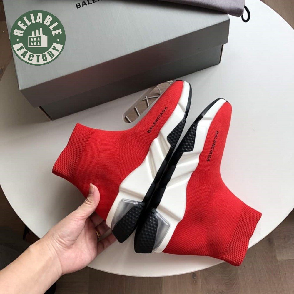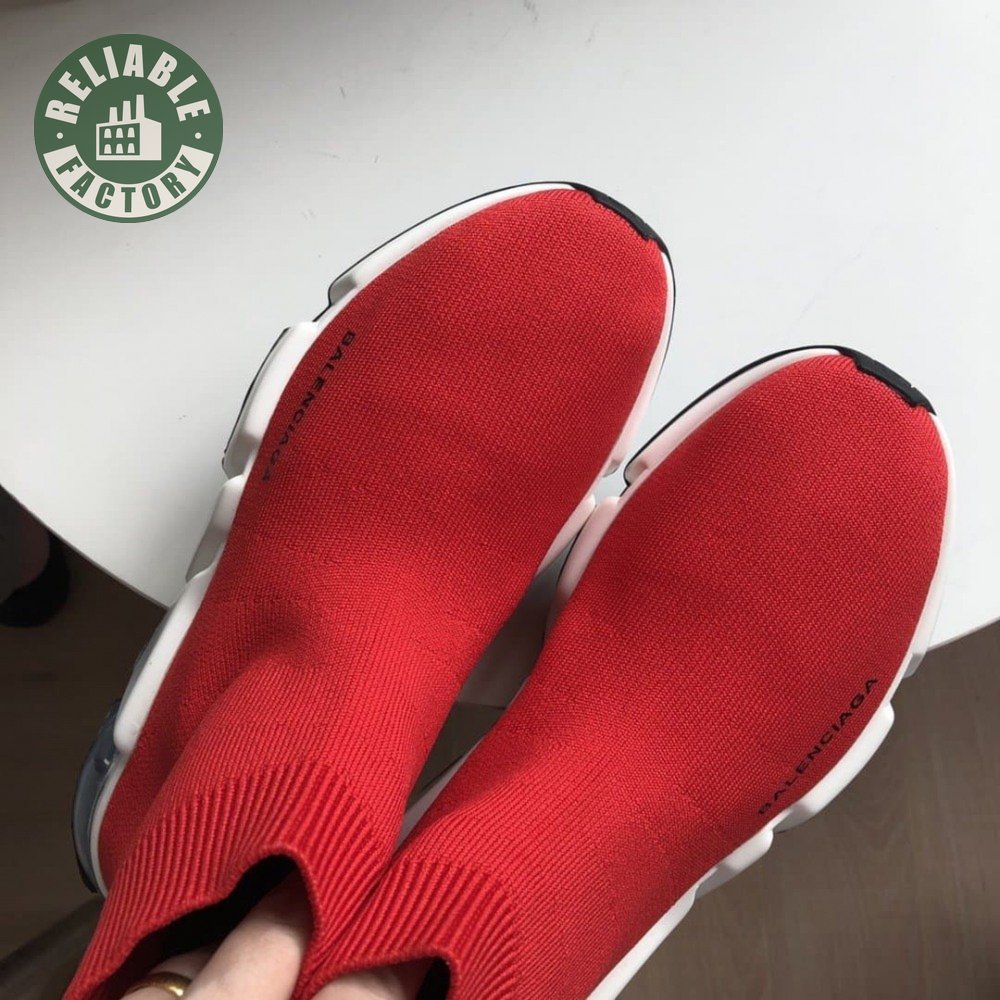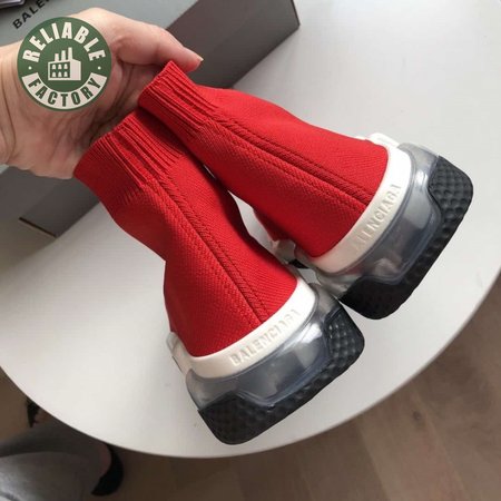 BALENCIAGA SPEED 2.0 SNEAKER IN BLACK, WHITE AND RED RECYCLED KNIT - BB144