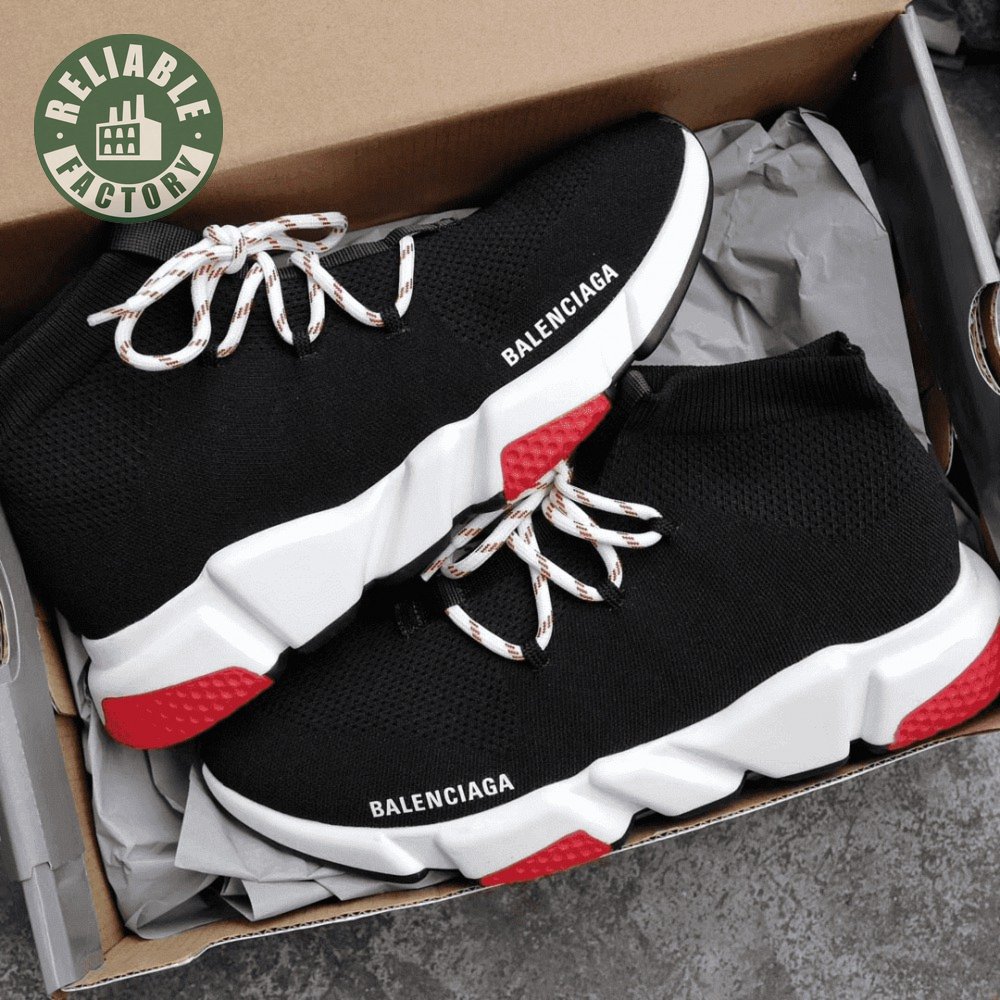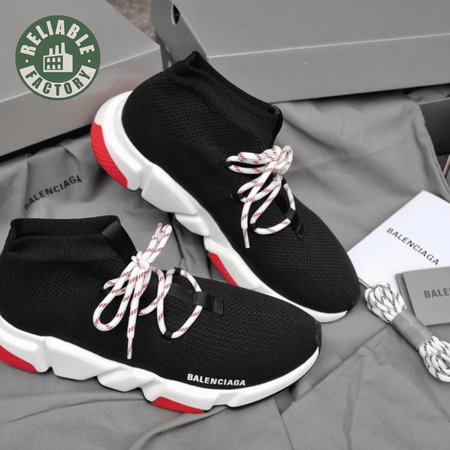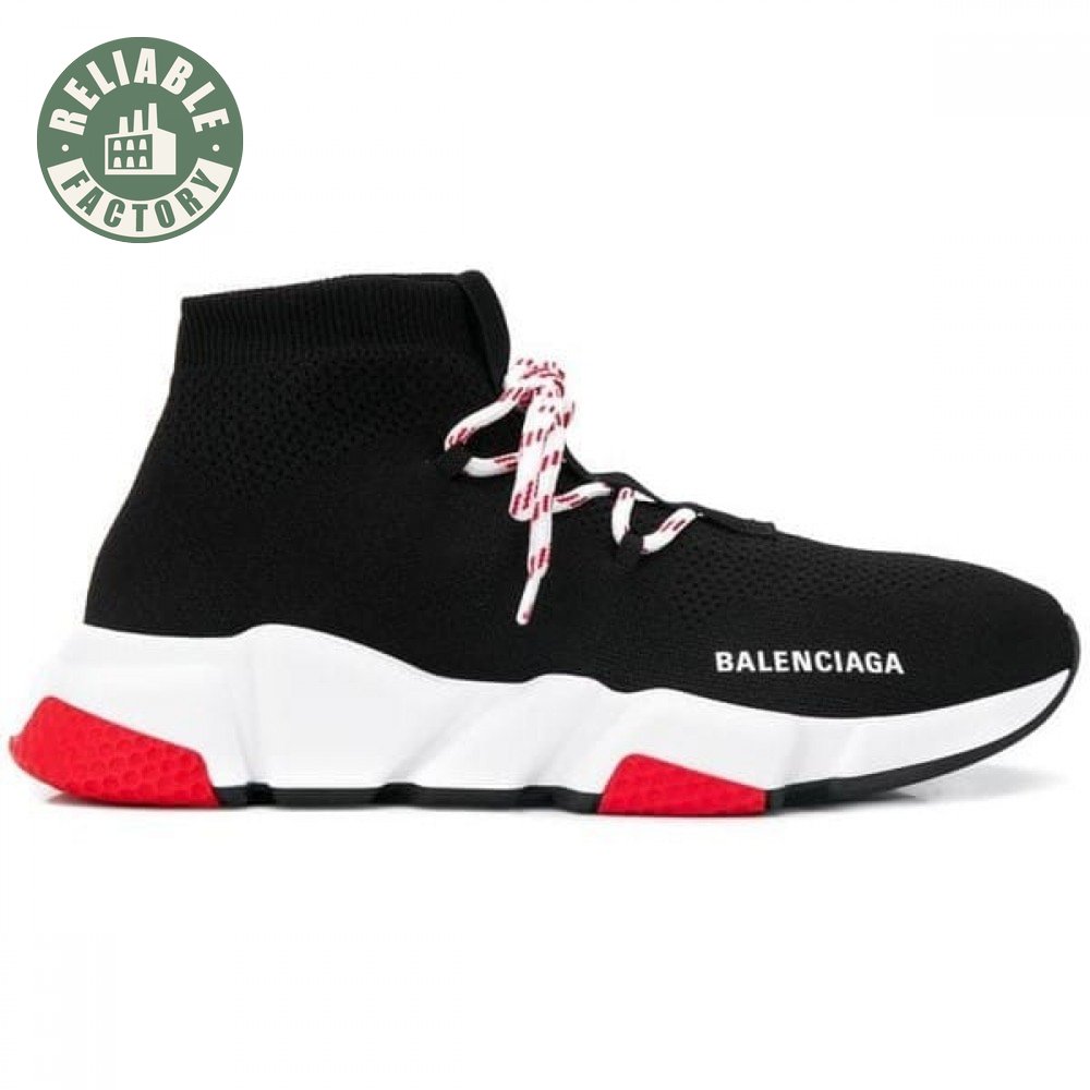 BALENCIAGA SPEED TRAINER LACE UP BLACK RED - BB15