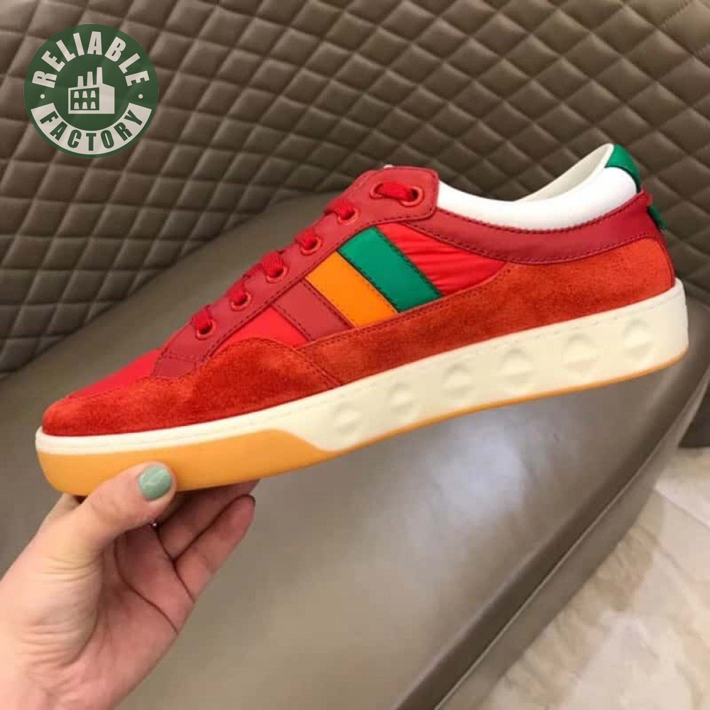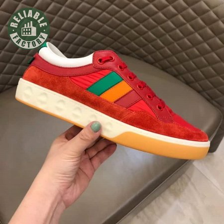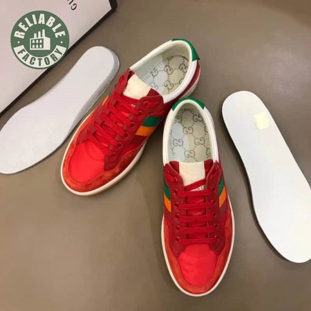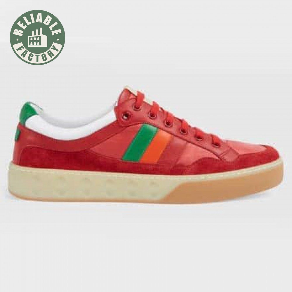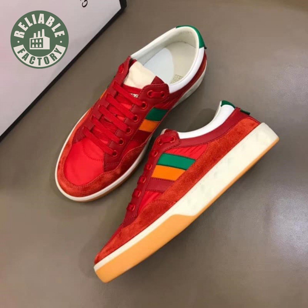 GUCCI MEN'S RED LEATHER AND NYLON SNEAKERS - GC62